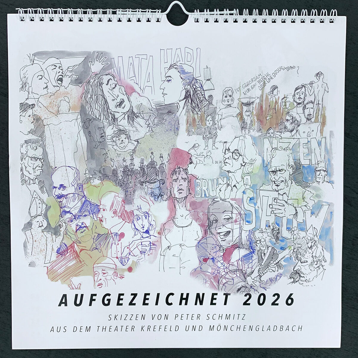 Entstanden ist „Aufgezeichnet“, ein einzigartiger Kalender für 2026, der nicht nur Theaterfans begeistern wird. Der vierfarbige und im Format 297 x 297 mm (Quadrat) gestaltete Kalender ist ab sofort zum Preis von 15 Euro an den Theaterkassen erhältlich. Die Auflage ist auf 150 Exemplare limitiert.