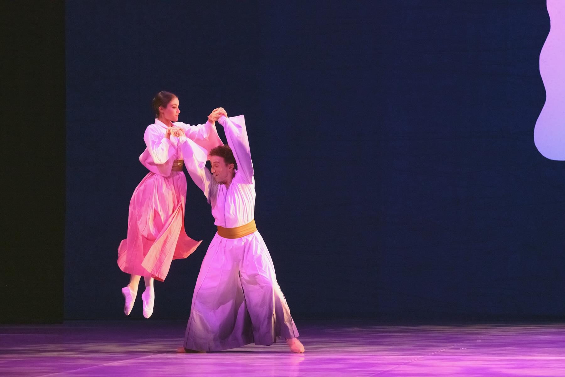Dynamik und Lebensfreude kommen wunderbar zum Ausdruck, eine Wohltat fürs Auge nach dem erzwungenen Stillstand der Pandemie. Dieser Teil setzt den Schlusspunkt des vierteiligen Abends. In den ersten drei Stücken hat North erneut einigen seiner Tänzer die Gelegenheit gegeben, eigene Choreografien zu entwickeln. (…) In „Freedom“ ließ sich Marco A. Carlucci von Volkstänzen seiner süditalienischen Heimat inspirieren, vor allem von der Tarantella. (…) Auch im Stück „Haru – Frühling“ ist die Choreografie eine Reminiszenz an die eigene Heimat. Zur Musik von Vivaldis „Frühling“ setzt Yoko Takahashi den Zauber des japanischen Frühlings in Tanz um. (…) Die barocke Musik und das asiatische Flair verschmelzen zu einer zauberhaften Miniatur, die Aufbruchsstimmung und Lebensfreude vermittelt. Einen ganz anderen Charakter hat das Stück „Respect Bro“ von Takashi Kondo. Die eindringliche Musik von Arvo Pärt (…) sowie der Fall des von der Polizei getöteten Afroamerikaners George Floyd sind der Ausgangspunkt für ein unglaublich packend gestaltetes Aufeinandertreffen zweier Männer (Francesco Rovea, Radoslaw Rusiecki). Der eine im weißen Anzug, der andere im dunklen Kapuzenshirt verkörpern sie optisch unterschiedliche Sphären. Doch in ihrem extrem auf körperliche Konfrontation gehenden Tanz verschwinden die äußeren Grenzen zusehends. Das Gefüge zwischen Respekt, Macht und Kontrolle über andere wird in viele Richtungen ausgelotet. (…) Erneut entstand ein facettenreicher Abend, der die choreografischen Talente auf Augenhöhe mit ihrem Meister zeigt. Zwischen den Stücken zwei und drei gab es noch ein musikalisches Intermezzo von André Parfenov, der in gewohnter Virtuosität eine Eigenkomposition am Flügel vortrug. Auch dieses Stück war neu, fügte sich so in das Gesamtkonzept des Abends ein.