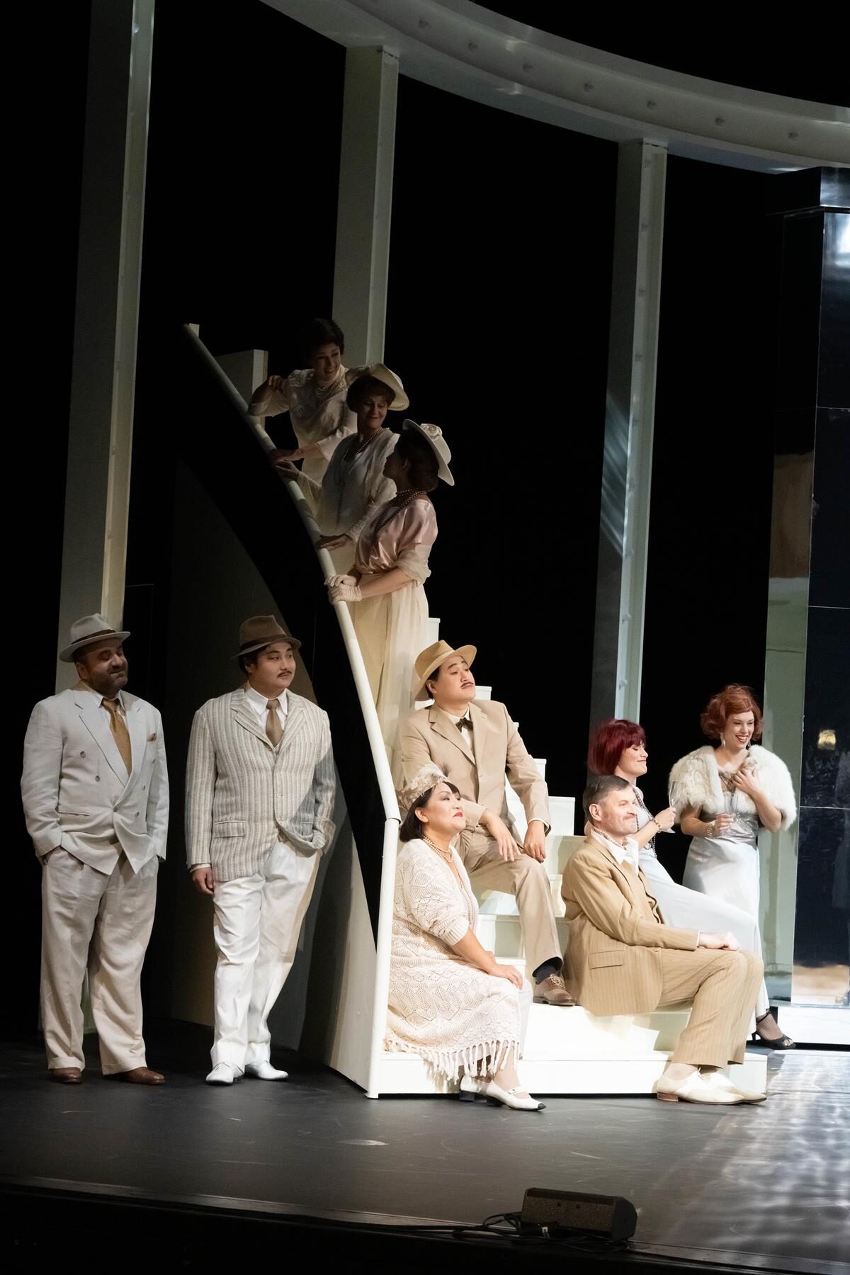 Da ist er, der Operettenhumus, auf dem Missverständnisse und Turbulenzen gedeihen. Der Foxtrott vom Känguru, „Toujours l’amour“, „La bella tangolita“ und „Es ist so schön, am Abend bummeln zu gehen“ werden feuerwerksgleich gezündet. Das Ensemble, der Chor, das Ballett, aufgestockt durch ein Extra-Tanzensemble und die Niederrheinischen Sinfoniker, die Sebastian Engel temperamentvoll leitet, schillern, flittern und glänzen.