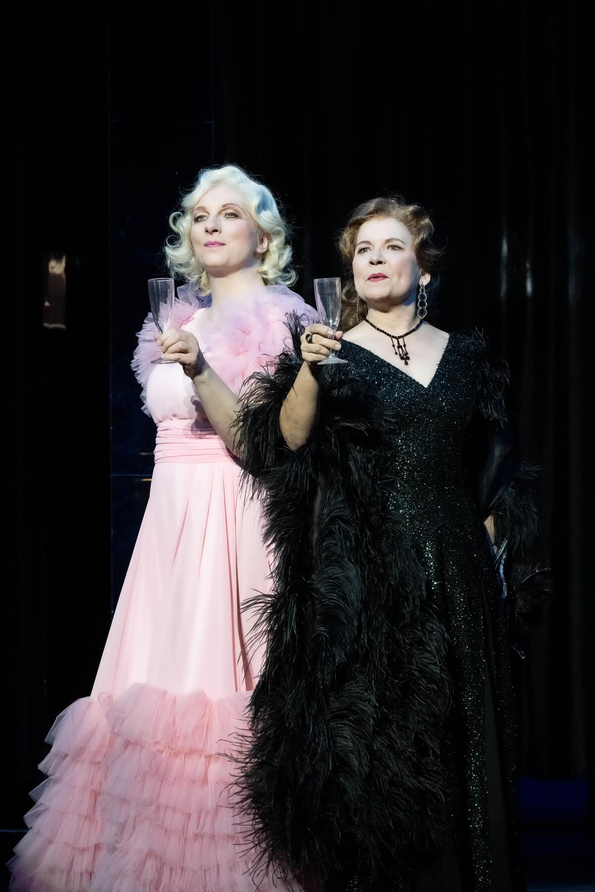 Frank Matthus hat keine Angst vor Klischees. Bei der „Rocky Horror Show“ – von Kritikern als die beste Inszenierung deutschlandweit gewürdigt – und zuletzt bei „Cabaret“ hat der Berliner seine leichte Hand für gute Unterhaltung bewiesen. Im „Ball im Savoy“ gelingt ihm das auch. Mit einem großen und glänzend aufgelegten Ensemble ist der Abend Amüsement pur. Matthus lässt die Geschichte in der Entstehungszeit, der Roaring Decade in Berlin, spielen. Heiko Mönnich hat dazu herrliche Revue-Kostüme geschaffen und eine Bühne mit raffinierten Spiegelsäulen, einer Showtreppe, die immer wieder zum Verhandlungsort für schicksalsentscheidende Momente wird, Separées wie überdimensionale High Heels und jeder Menge Anspielungen auf das lockere Leben zwischen den Kriegen.