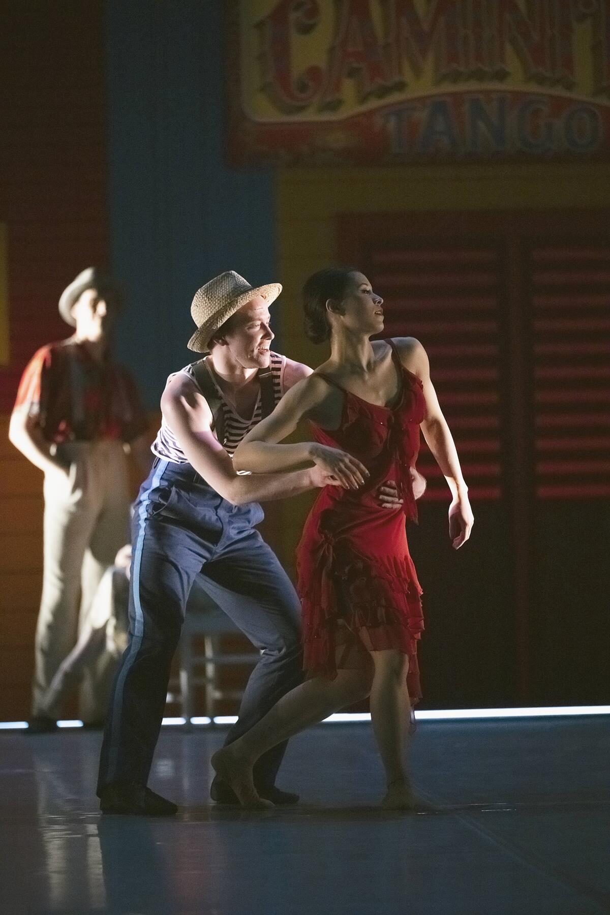 (…) Gemäß der selbstgewählten Aufgabenstellung ist der Tango nicht übermäßig vertreten, was North kaum hindert, dem Ensemble überdurchschnittlich viele Figuren, Hebungen und Sprünge aufzugeben, so dass die Leichtigkeit Triumphe feiert. Hier dürfen die Tänzer zeigen, was sie können, allen voran Marco A. Carlucci als Heinrich Band mit einigen schönen Soli, Teresa Levrini als seine Ehefrau und Andrii Gavryshkiv als Schiffsreisender. Besonders schöne Ensemble-Leistungen gibt es dann aber doch gerade beim Tango (…)