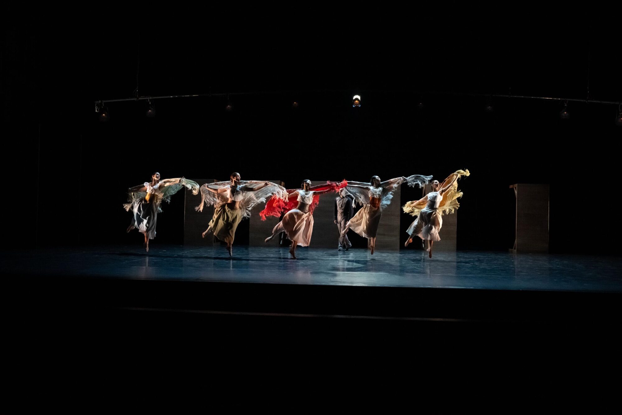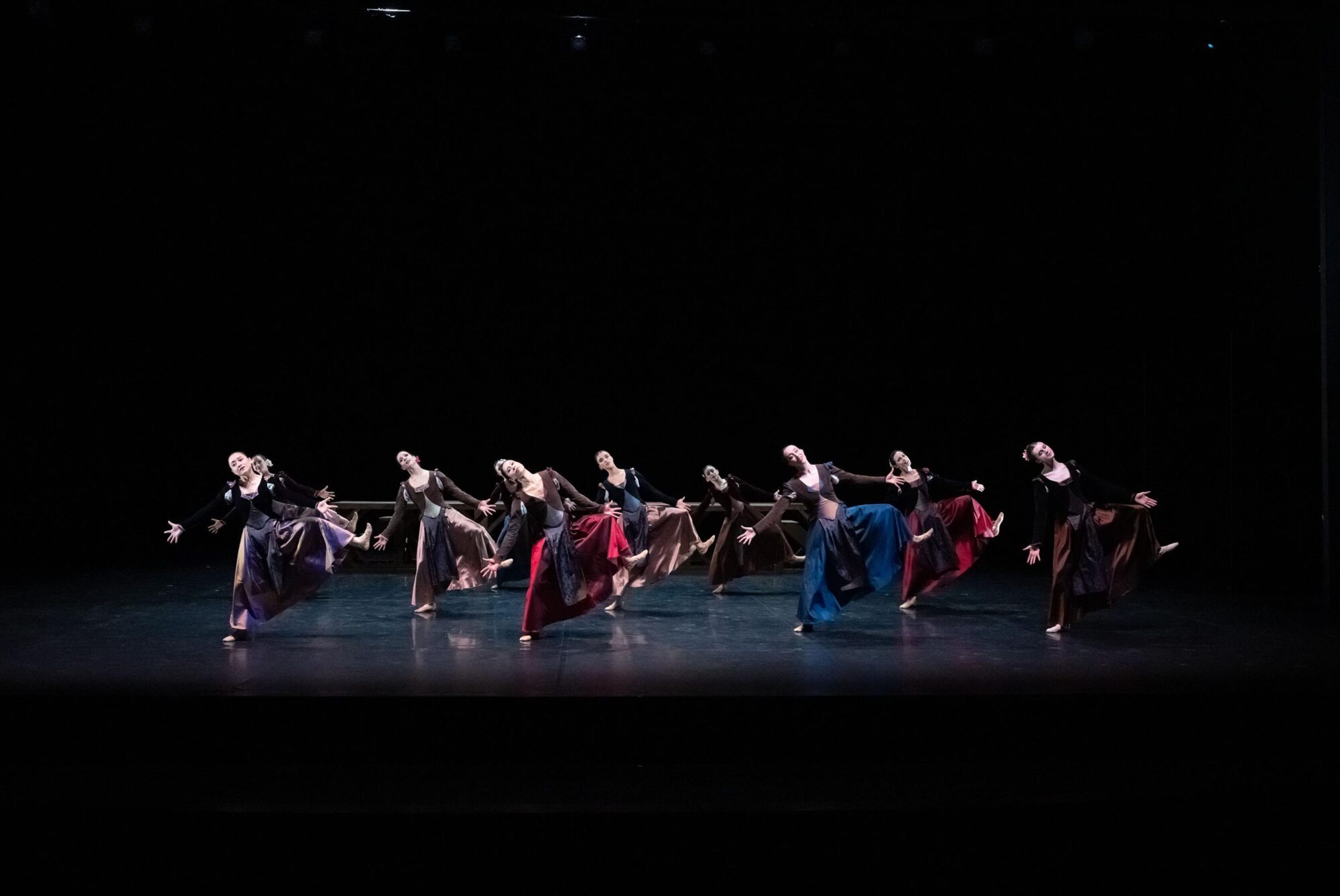 (…) Alle Tänzerinnen sind in wunderbar schwingende Gewänder gekleidet, matte, dunkle Farben, leicht glänzende Schärpen. (…) Die verschiedenen Aspekte des ländlichen und städtischen Lebens werden in einem bunten, sehr bewegten Bogen aneinandergereiht. (…)