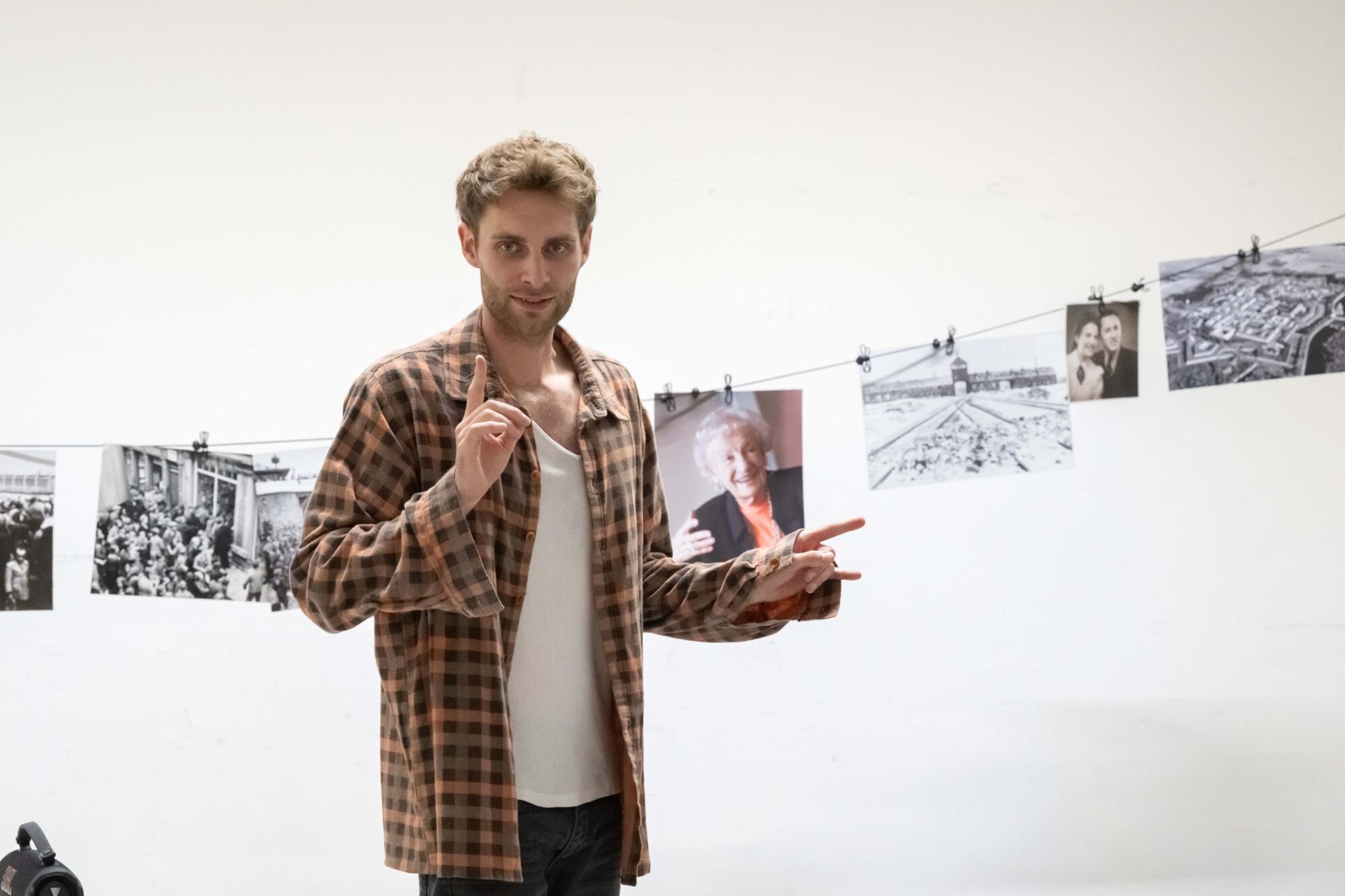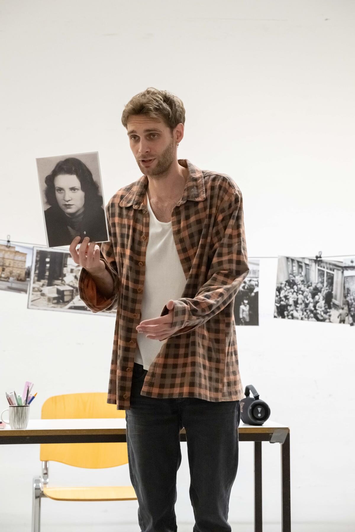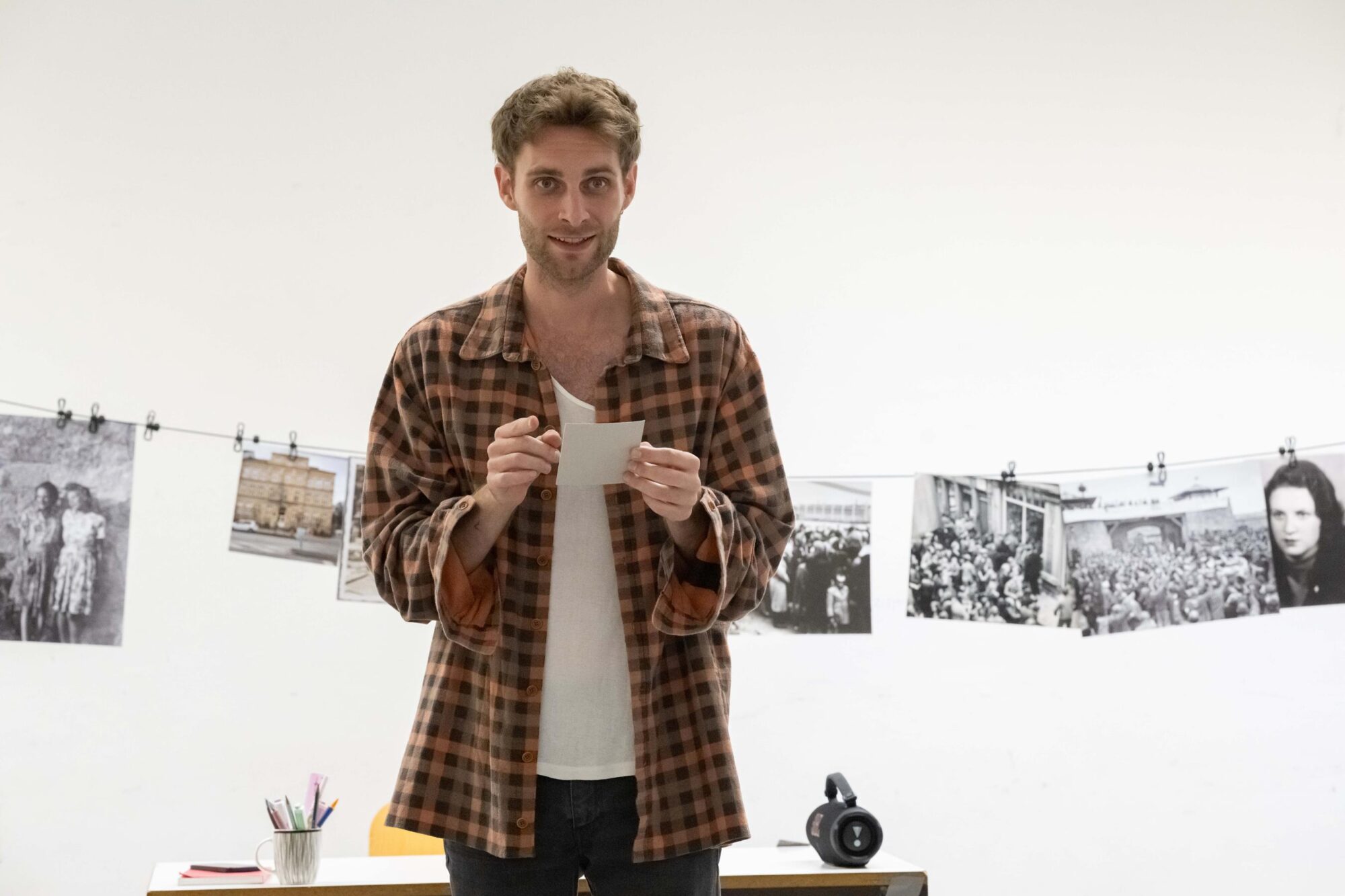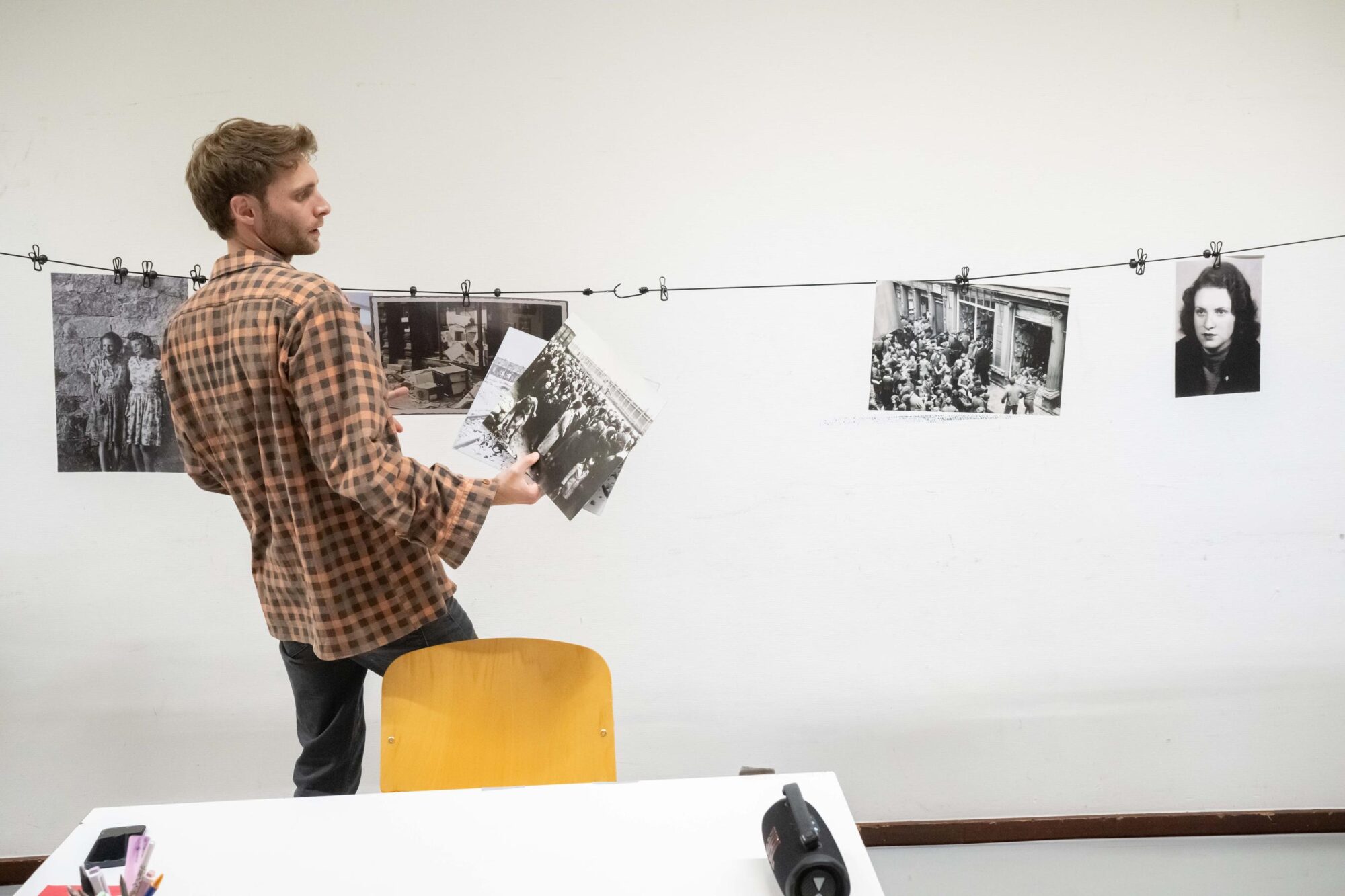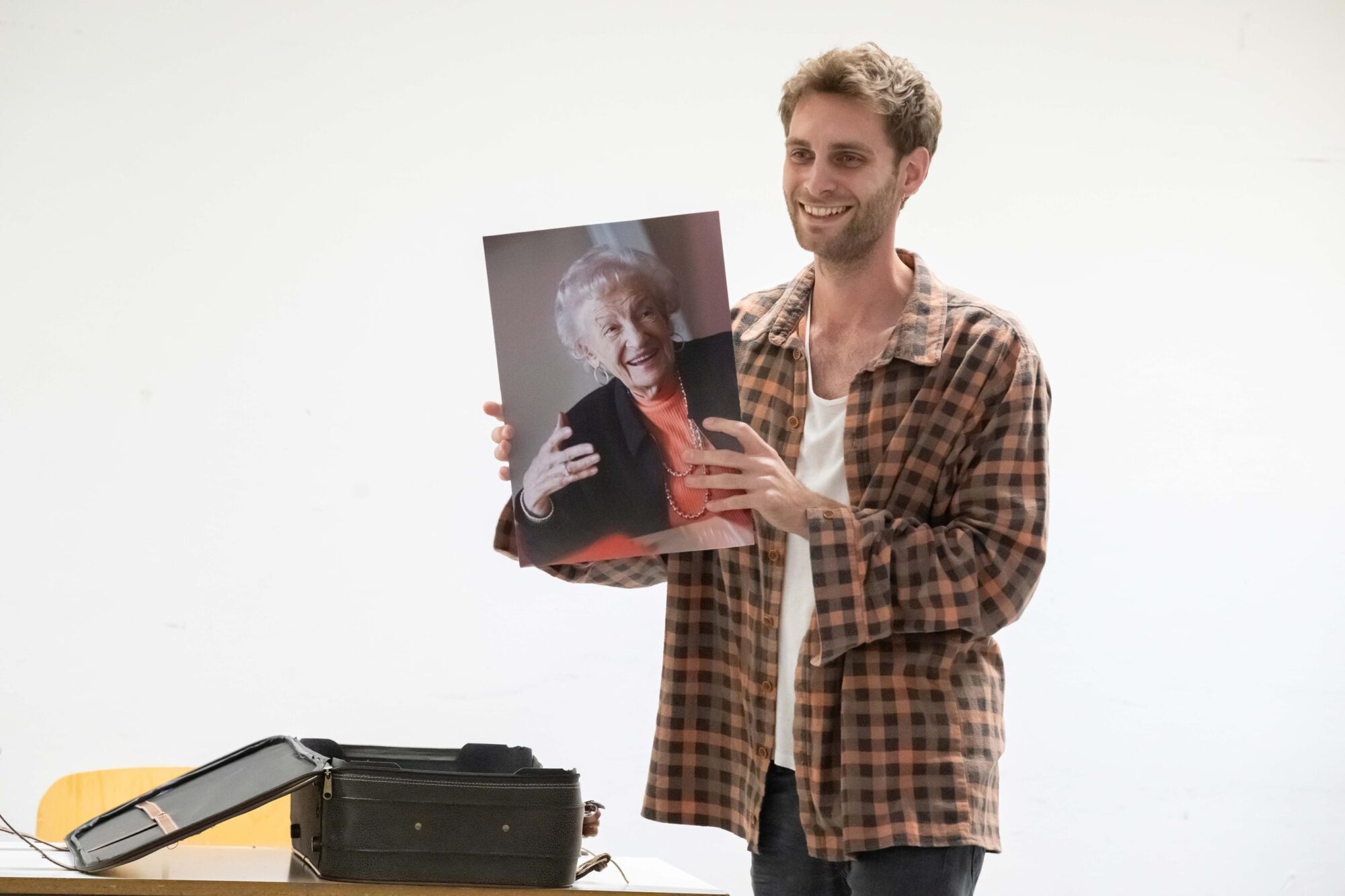 Die Klasse wartet gespannt auf Esther Bauer, eine Zeitzeugin des Holocaust. Doch sie taucht nicht auf. Stattdessen steht plötzlich ein junger, etwas nervöser Mann im Raum. Er stellt sich als Sam vor, Esthers Enkel.