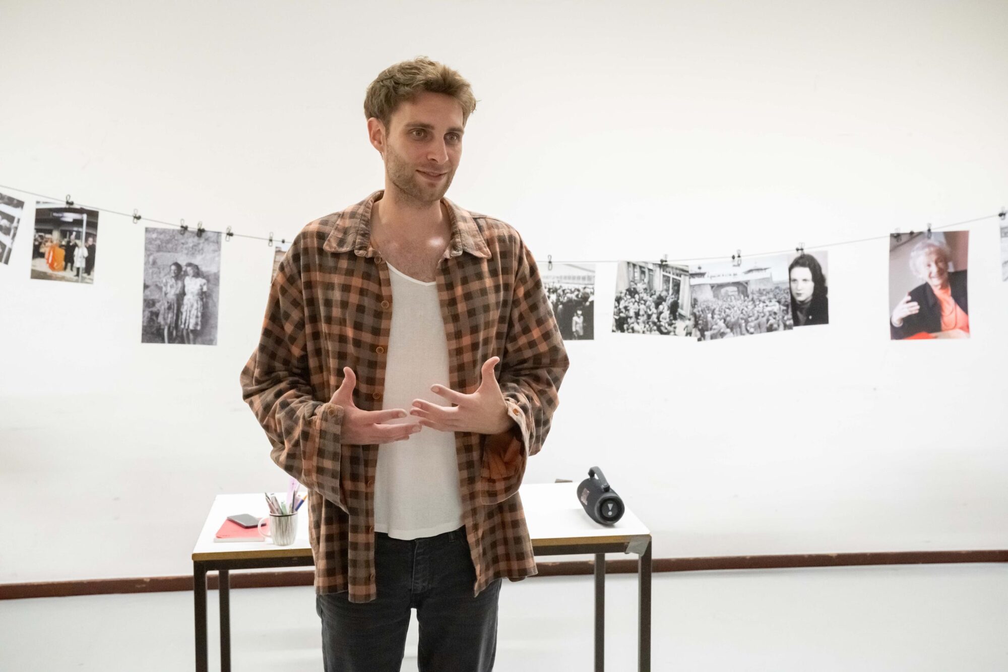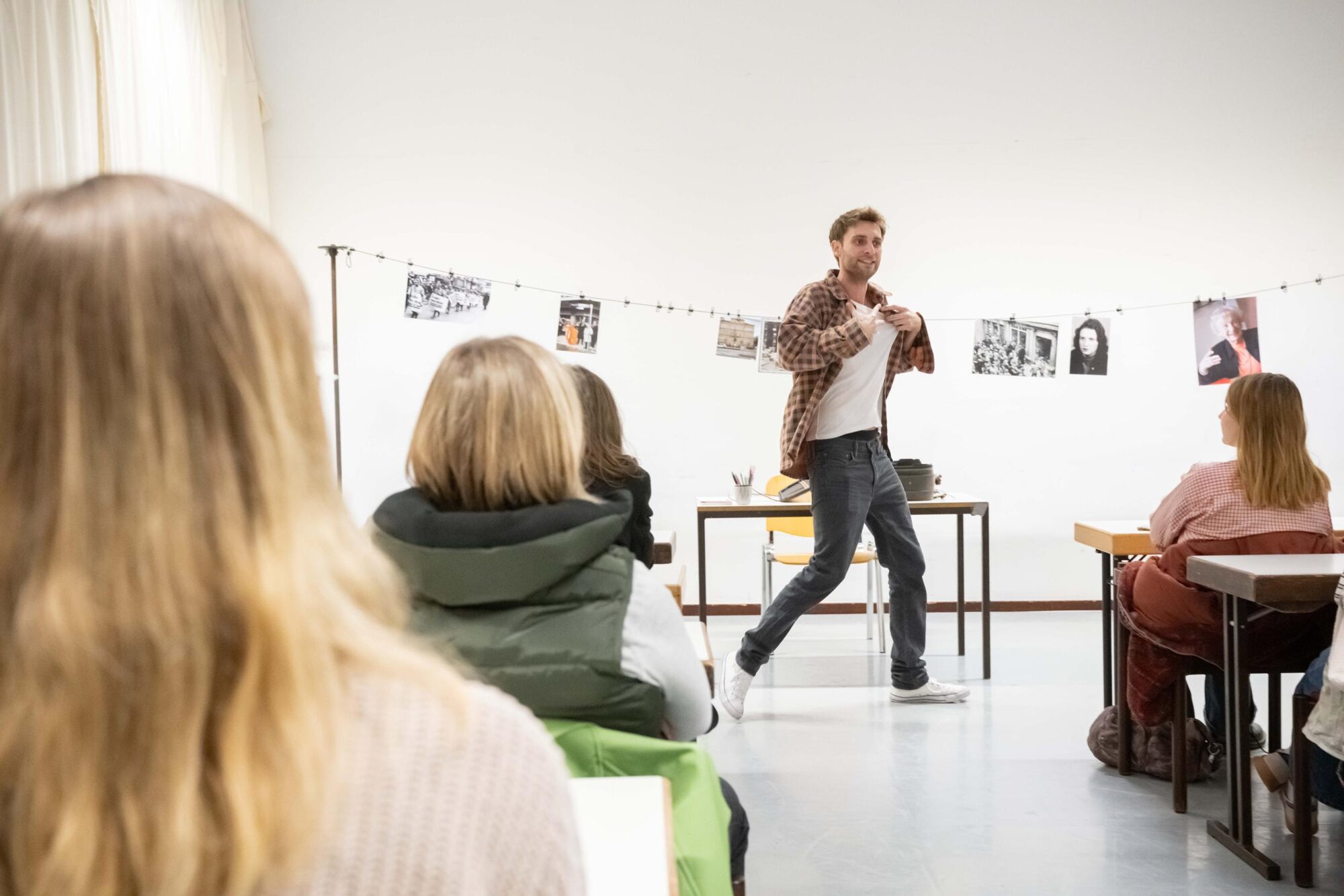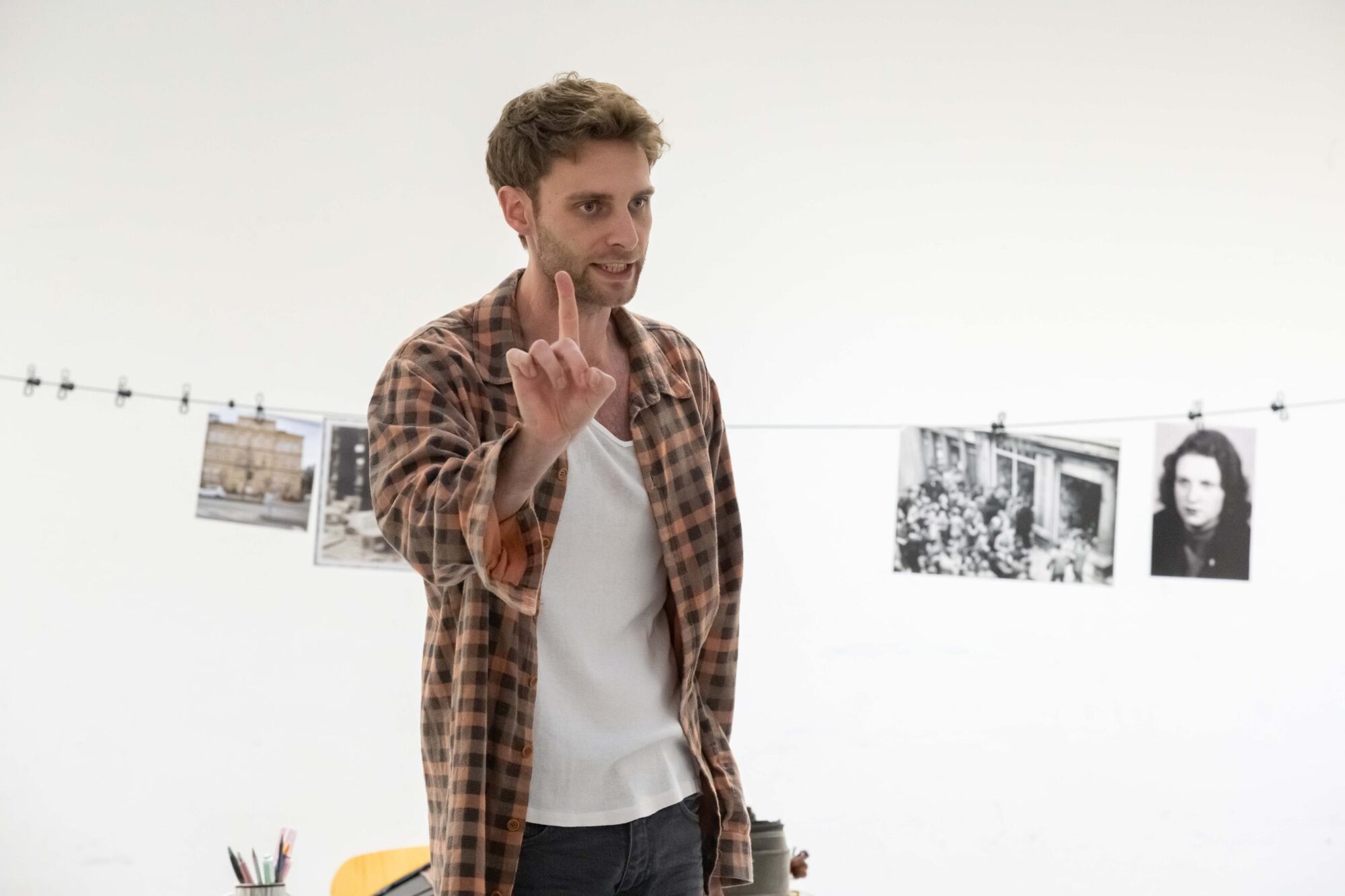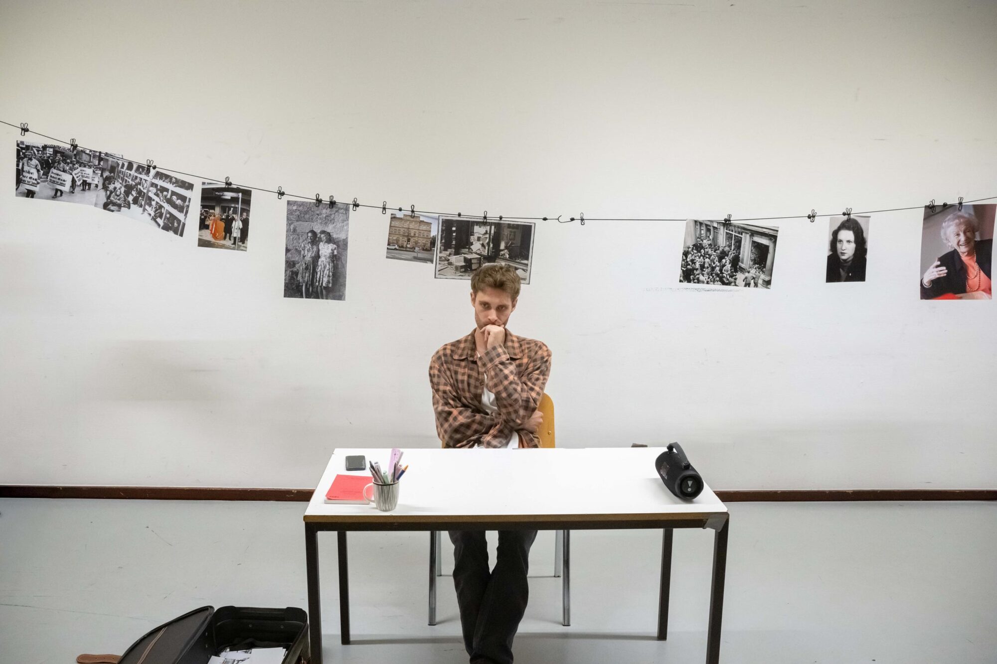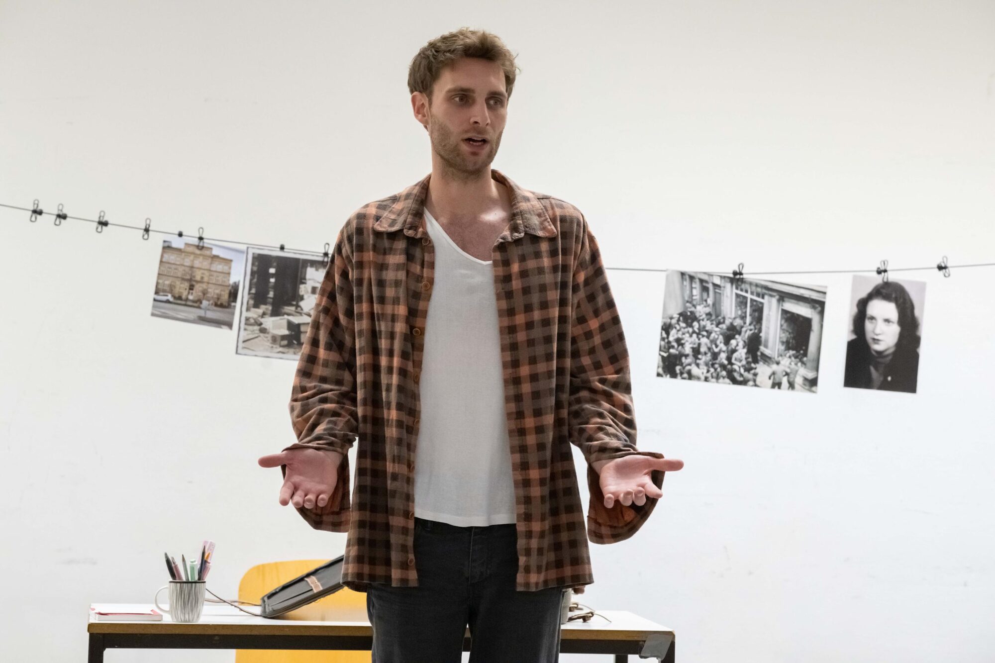Die Klasse wartet gespannt auf Esther Bauer, eine Zeitzeugin des Holocaust. Doch sie taucht nicht auf. Stattdessen steht plötzlich ein junger, etwas nervöser Mann im Raum. Er stellt sich als Sam vor, Esthers Enkel.