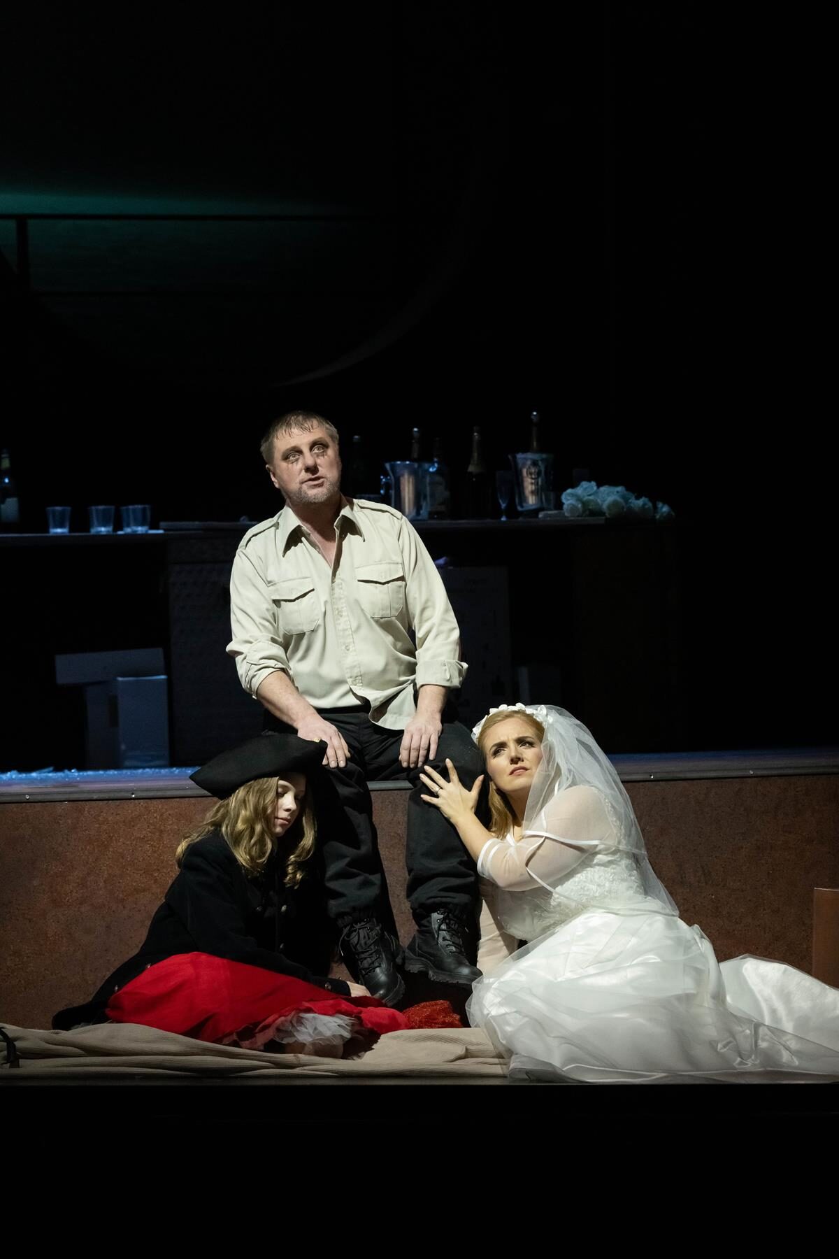 Ziemlich bemüht sind die Szenen, in denen die junge Senta auftritt und oft von der erwachsenen Senta an die Hand genommen wird, manchmal umarmen sie sich auch. Dann sind es doch eher Schwestern als dieselbe Person zu verschiedenen Zeiten. Und Sentas Piratentracht sieht leider viel zu sehr nach rheinischem Straßenkarneval aus, als dass man den sich darin manifestierenden Freiheitsgedanken ernst nehmen könnte. Wenn die Spinnstube des zweiten Akts zum Shop für Hochzeitskleider umgedeutet wird, zeigt das zwar einigermaßen schlüssig, dass diese jungen Mädchen sich alle wahnsinnig aufs Heiraten freuen, aber es trägt ebenfalls zum etwas provinziellen Charakter der Inszenierung bei, die sich krampfhaft um eine Neudeutung bemüht. Ein selbstbestimmtes Frauenbild soll her, sicher, aber das dürfte doch ein wenig raffinierter entwickelt werden.