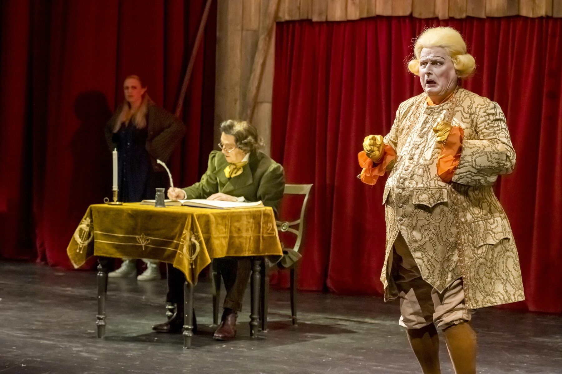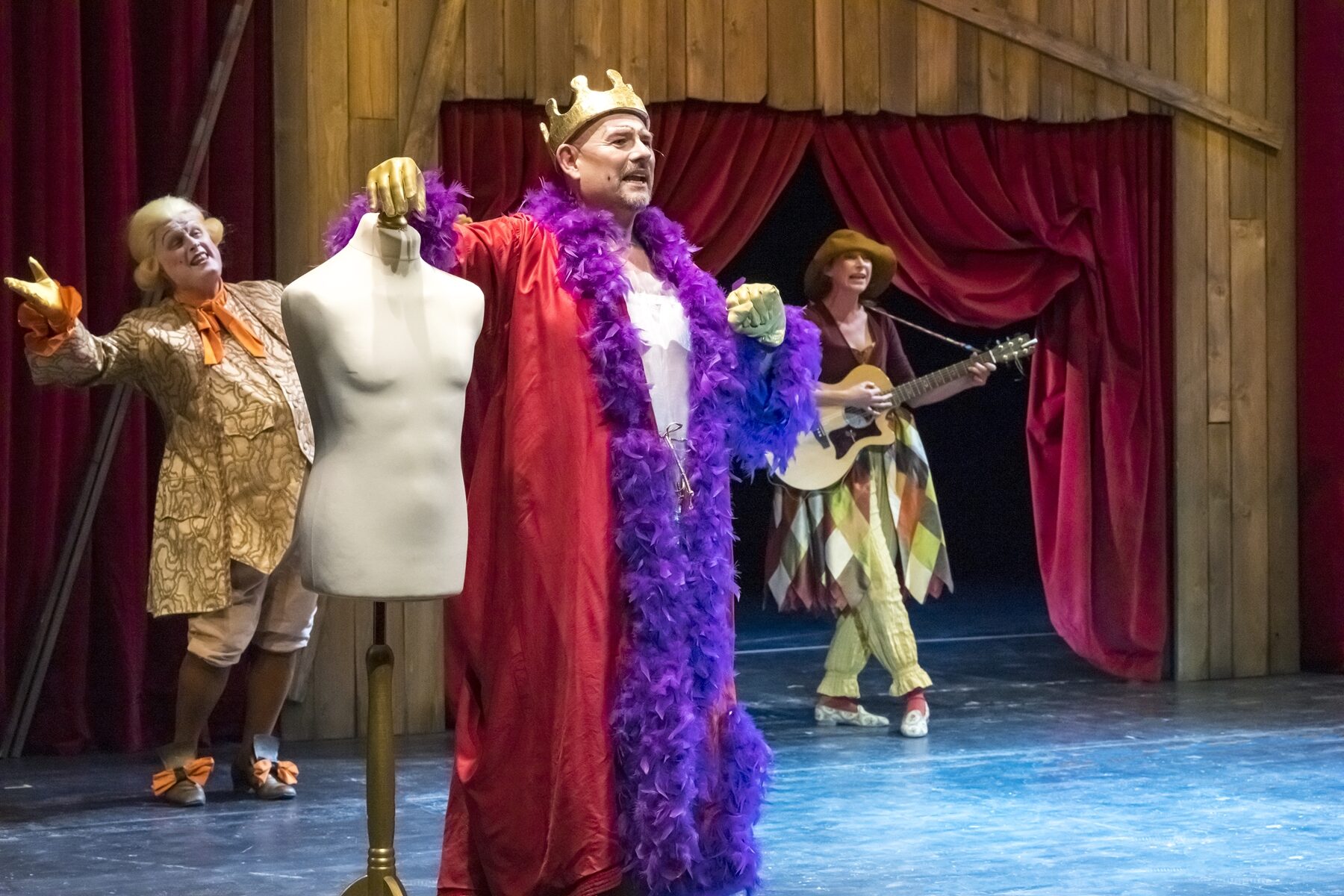 Als der Tag der Wahrheit anbricht, warten alle gespannt auf den Anblick der sagenhaften neuen Kleider. Endlich tritt der Herrscher vor seine Untertanen. In deren Gesichtern macht sich schnell ungläubiges Staunen breit.