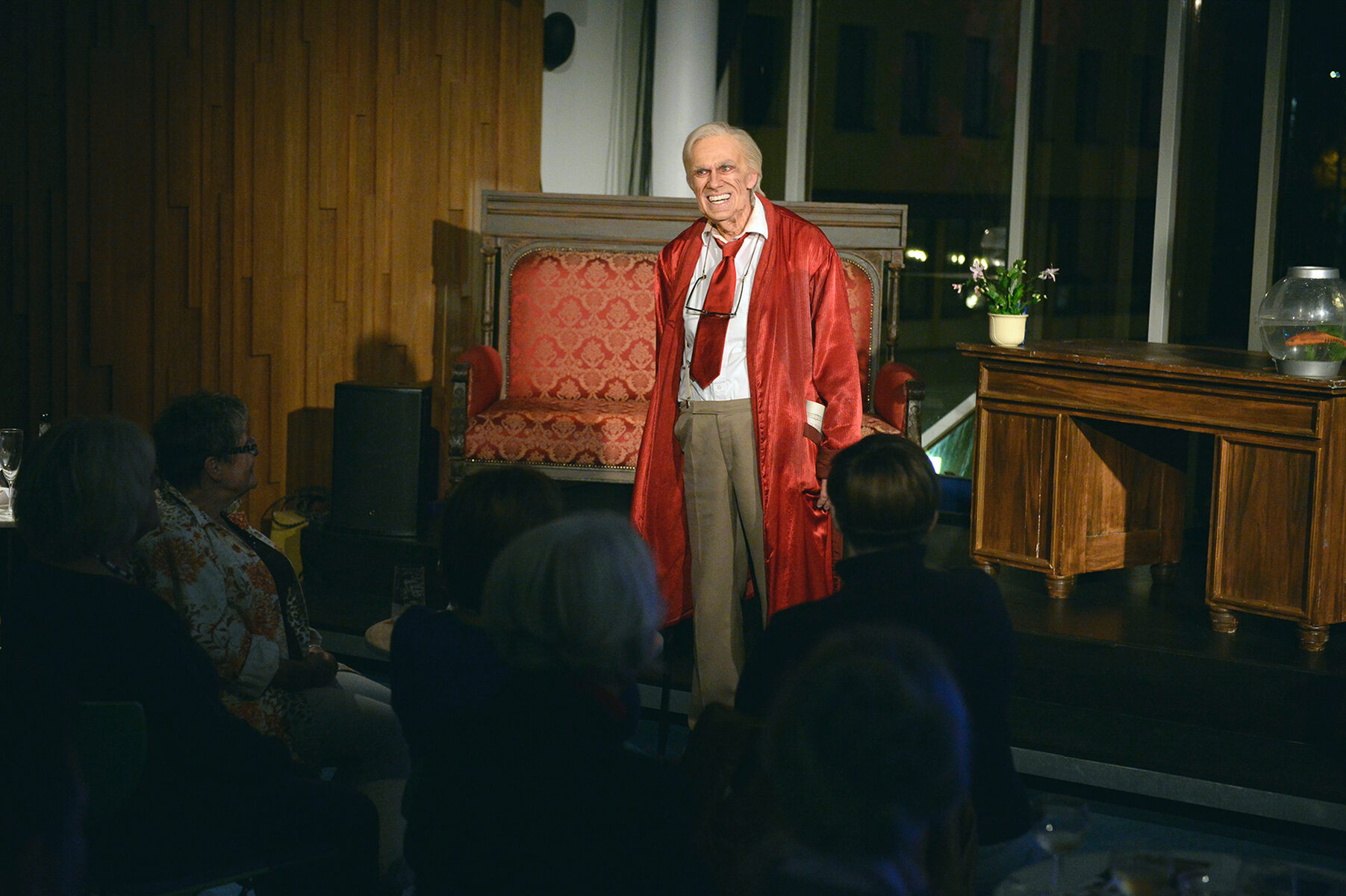 Herr Winzen – Sie erinnern sich: der ewig jung bleibende Charmeur mit dem Goldfischglas – weiß, wie man einen 75. Geburtstag feiert. Den seinen hat er schließlich schon mindestens ein dutzend Mal begangen.