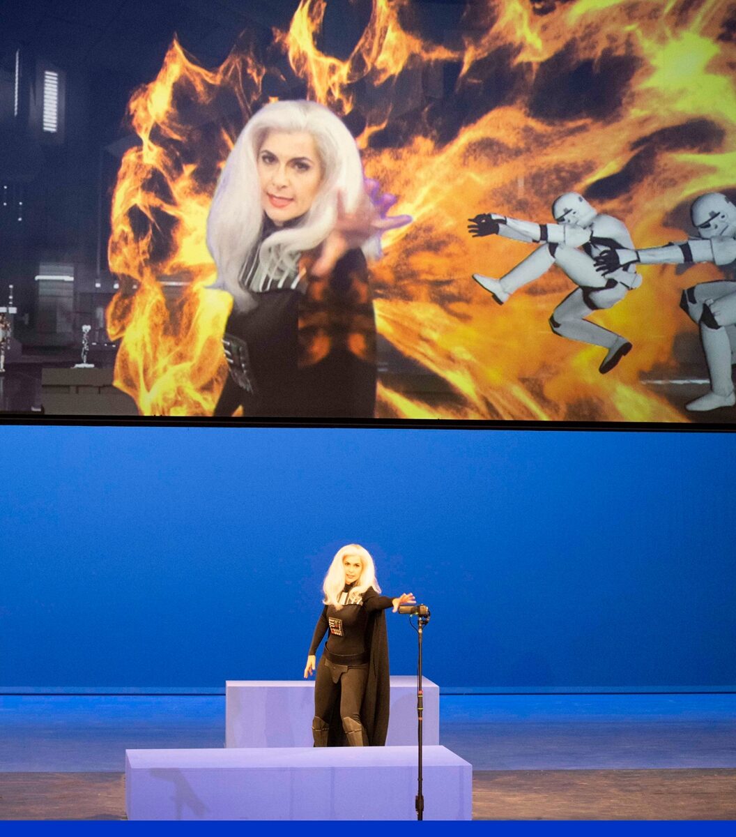 […] Vor der Kulisse des ausverkauften Hauses ist das gemischte Publikum gelöst und voller Vorfreude. Viele der Besucher haben die Inszenierung wohl schon gesehen. Durch die Flure des Foyers sieht man Starship-Trooper patrouillieren. Einige Besucher tragen spacige Kostüme oder Ohren des Vulkaniers Spock.