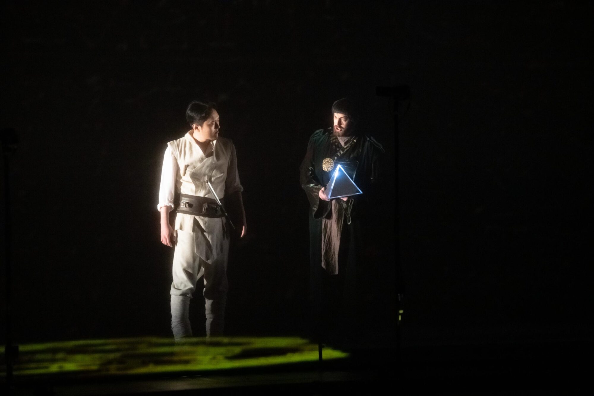 Es gibt kaum eine zweite Oper, die mit ihrer Brückenfunktion so viele heranwachsende Menschen in die Theater geholt und mit der ganz besonderen Kunstform Oper vertraut gemacht hat. Seit der Wiener Uraufführung im Jahre 1791 wurde die Zauberflöte so oft gespielt wie kaum eine andere Oper. Über die zweihundertfünfzigjährige Rezeptionsgeschichte hindurch hat es verschiedenste Bebilderungen und Regieansätze gegeben. Statuarischer Übervater ist in dem Zusammenhang das Schinkelsche Bühnenbild für den Auftritt der Königin der Nacht. Das mit Mythen und Rätseln überfrachtete Libretto der Zauberflöte hat vielerlei Blüten getrieben, die mal mehr, mal weniger überzeugend waren. Es ist schon verwunderlich, dass bislang niemand auf die enge inhaltliche Verwandtschaft der Zauberflöte gerade mit der Star-Wars-Trilogie gekommen ist. Kobie van Rensburg sei Dank für die außerordentlich gelungene Adaption des operngeschichtlichen Heiligtums.