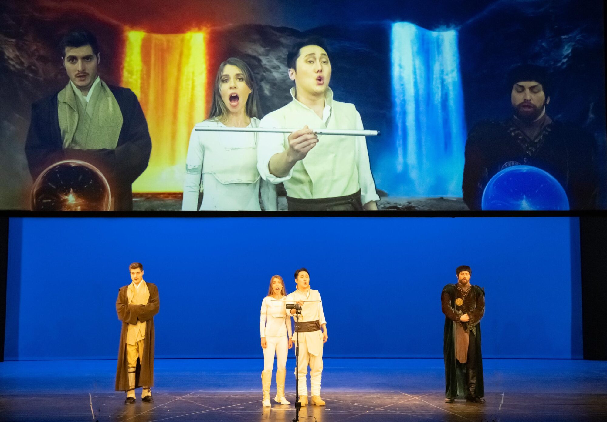 […] Matthias Wippich als Sarastro verfügt über hinreißenden baritonalen Schmelz, der seine sonore Stimme über weite Strecken ausmacht. Den wirklich tiefen Passagen seiner Rolle kann er in Teilen nicht ganz entsprechen. Der lyrische Tenor Woongyi Lee gestaltet die Rolle des Tamino mit viel Hingabe und darstellerischem Einsatz. In der Höhe ein wenig metallisch entspricht er den stimmlichen Anforderungen an die Partie. […] Sophie Witte als Pamina, sowohl schauspielerisch als auch stimmlich zuweilen überragend. Ihr lyrischer Sopran vermag das gesamte Spektrum ihrer Partie zu umfassen. Von den zarten, lyrischen Momenten bis zum Aufblühen in der Höhe. Rollenkonform besonders spielfreudig, aber auch stimmlich bestens disponiert, präsentiert sich Rafael Bruck als Papageno, der insbesondere in den kamerabedingten Nahaufnahmen für eine beeindruckende Intensität sorgt. Stimmlich gut aufgelegt und technisch souverän schmeichelt seine Stimme in bester Buffo-Manier. Die Königin der Nacht wird von Sophia Theodorides sängerisch und darstellerisch angemessen auf die Bühne gebracht. Sie gestaltet die Arie der Königin der Nacht mit einem reinen und in den Höhen klaren Sopran. Die anspruchsvollen Koloraturen der Partie werden technisch versiert umgesetzt, der emotionale Ausdruck bietet noch Raum nach oben.