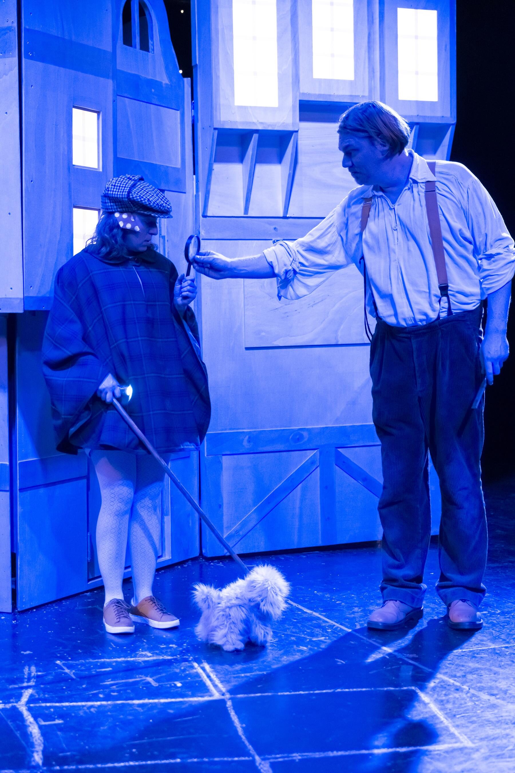 (…) Die Protagonistin der spannenden und humorvollen Detektivgeschichte „Ein Fall für Grete“ von Sabine Sanz erinnert an den Urtypen des Detektivs, Sherlock Holmes: karierter Umhang, Pfeife und Dr. Watson – in diesem Fall ein Hund. (…) Zugleich steht die Figur, gespielt von Laura Schümann, für eine junge Spürnase, die Kindern aus heutigen Detektivgeschichten vertraut ist. Michael Halbey van Treeck verkörpert mit seiner Figur des mysteriösen Puppenspielers kindgerecht den „Bösewicht“. Aus der Intention heraus, etwas Gutes tun zu wollen, trifft er eine fatale Entscheidung und stellt damit das Dorf vor echte Probleme: eine dauerhafte Sonnenfinsternis. (…) Immer wieder beziehen die Schauspieler die Kinder mit ein, die das gerne annehmen. Geschickt verbinden Schümann und van Treeck auch den Einsatz der Puppen. (…) Das raffiniert gestaltete Bühnenbild aus Holz lässt sich zur Werkstatt aufklappen, bildet aber zusammengefügt die Dorfkulisse ab und erlaubt so einen einfachen Szenenwechsel. (…)