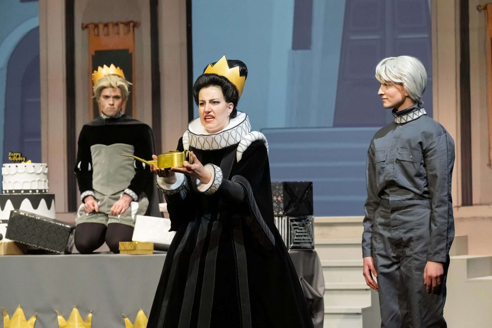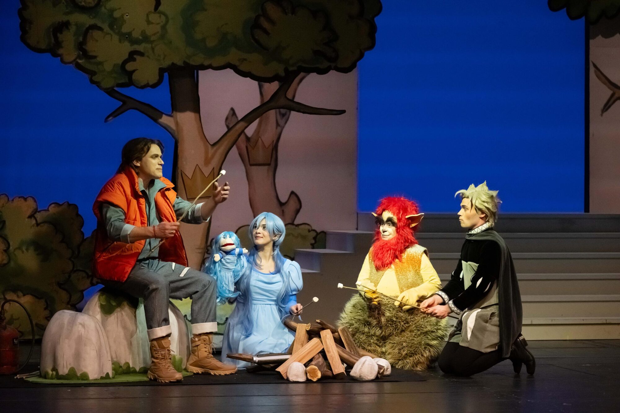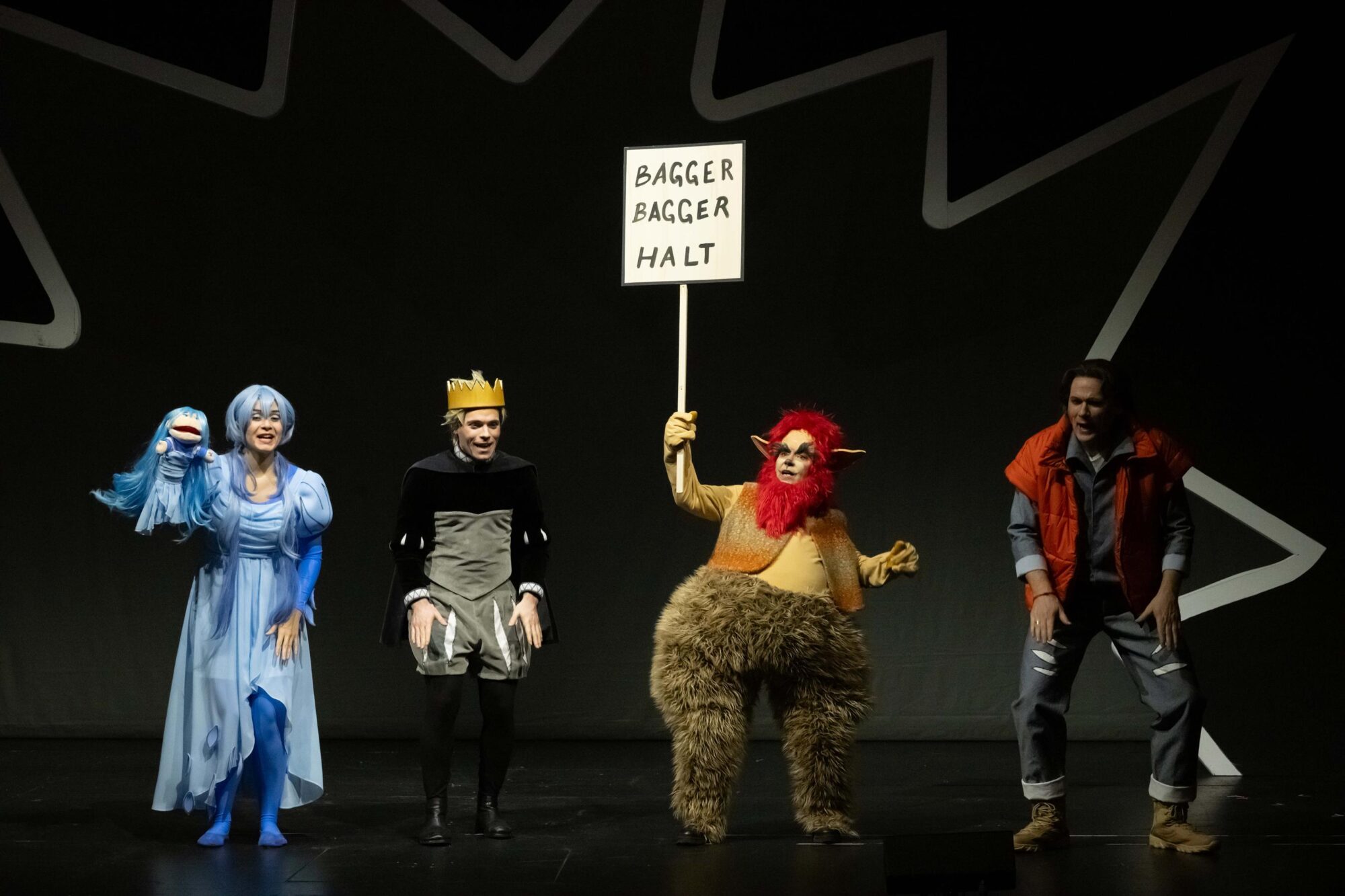Mit Tobias Wessler als Knut, Jeanne Jansen als Halima, Gabriela Kuhn als Trollpatsch, Antonia Busse als Königin und Markus Heinrich in der Doppelrolle des Königs und der Fee stehen auf der Bühne ganz wunderbare Darsteller des Musiktheaterensembles, die sowohl gesanglich als auch schauspielerisch überzeugen.