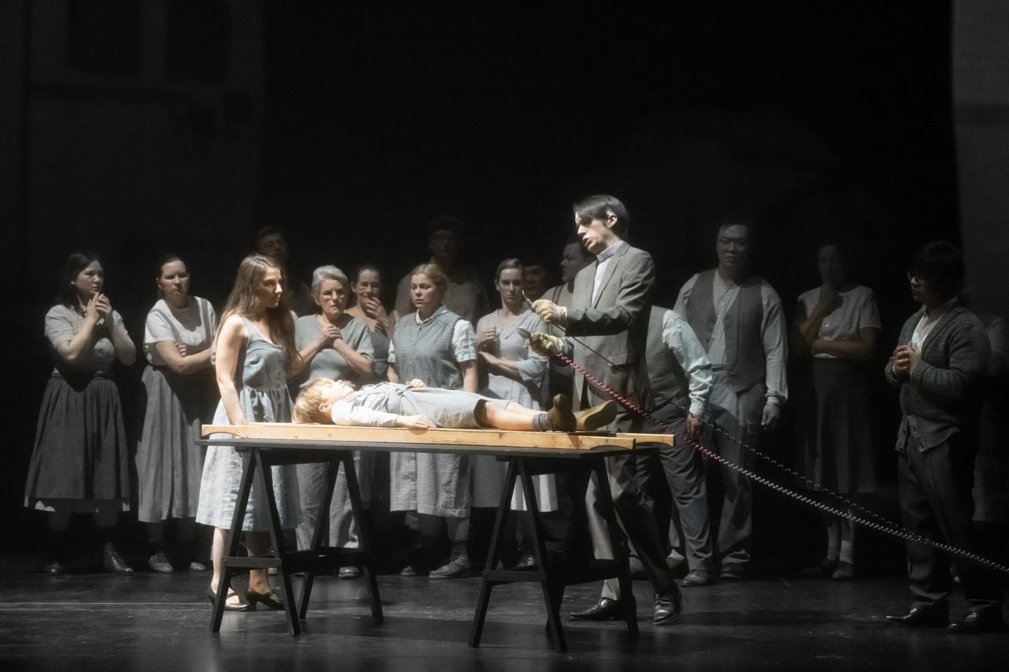 Kapellmeister Giovanni Conti und die Niederrheinischen Sinfoniker zeigten, welche Qualität das Orchester an diesem Haus hat. Conti steuerte mit der Präzision eines Neurochirurgen bei der Gehirn-OP jede Feinheit der Komposition an. Dynamische Wechsel, Rasanz und Pausen, pointierte Effekte und große Klangbögen hielten das Publikum in stetiger Spannung.
