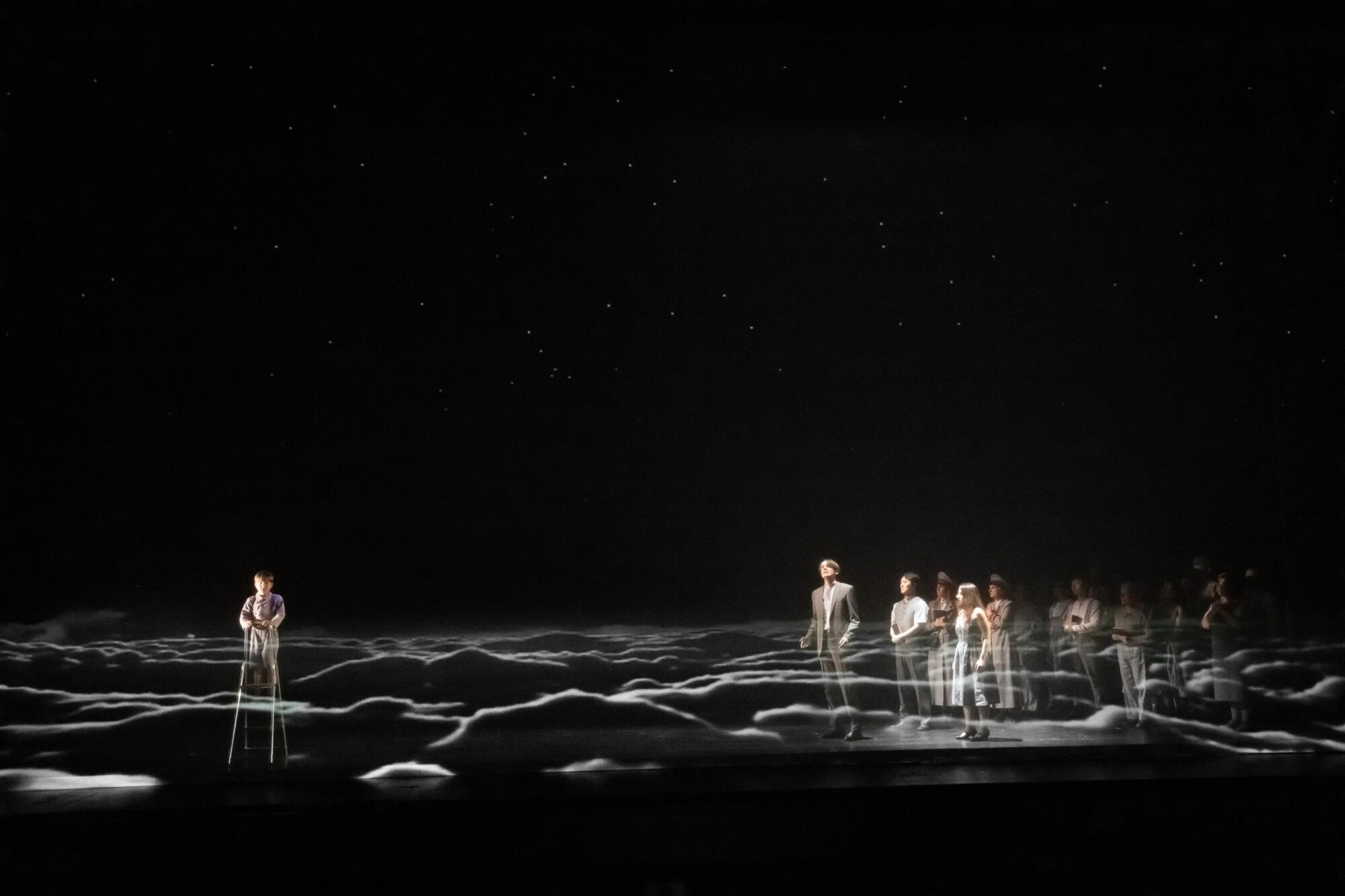 Zudem bietet diese Aufführung auch optisch starke Eindrücke. Kobie van Rensburg hat sich in Krefeld durch den Einsatz der Video-Technik einen Namen geschaffen. Und somit verzaubert er auch diesmal das Publikum mit großem Kino im Cinemascope-Format. Da toben Meereswellen und Engel fliegen durch die Luft.
