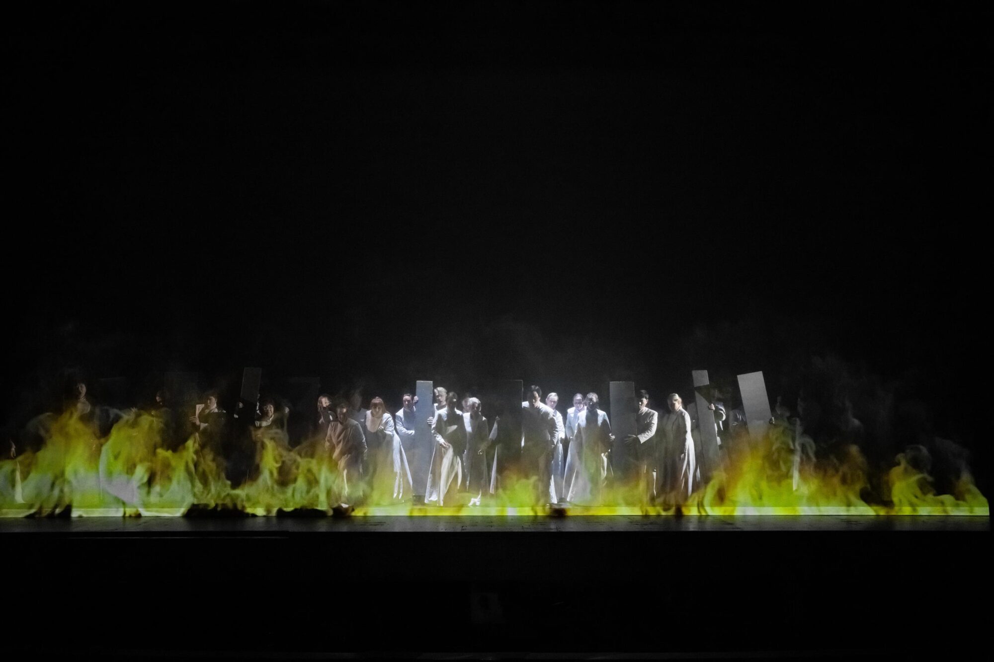 Rensburg legt Mendelssohns dramatisch-ehernem Spätwerk einen modernen Mantel um, nicht respektlos, sondern mit Liebe. Wichtig für das Gelingen dieser Produktion ist natürlich, dass er sich gut auf das Führen der Chormassen versteht. Neben den Profis (Opernchor und Extrachor des Theaters) hat das Theater bewusst zwei Gastchöre eingebunden (Niederrheinischer Konzertchor, Crescendo Chor Krefeld). Im Zusammenspiel mit den KI-Bildern formen die etwa 140 Sängerinnen und Sänger eindrucksvolle Massenbilder, sind teils auch im Parkett platziert, so dass eine große Nähe zum Publikum entsteht. […]