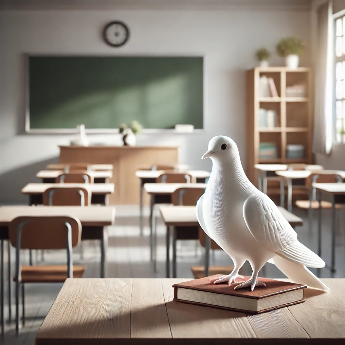Friedenstaube Happy ist eine professionelle Friedenstaube mit Zertifikat und wartet auf Luna, ein Mädchen, das sie auf ihrem ersten Einsatz kennengelernt und das gerade an der Schule angemeldet wurde.