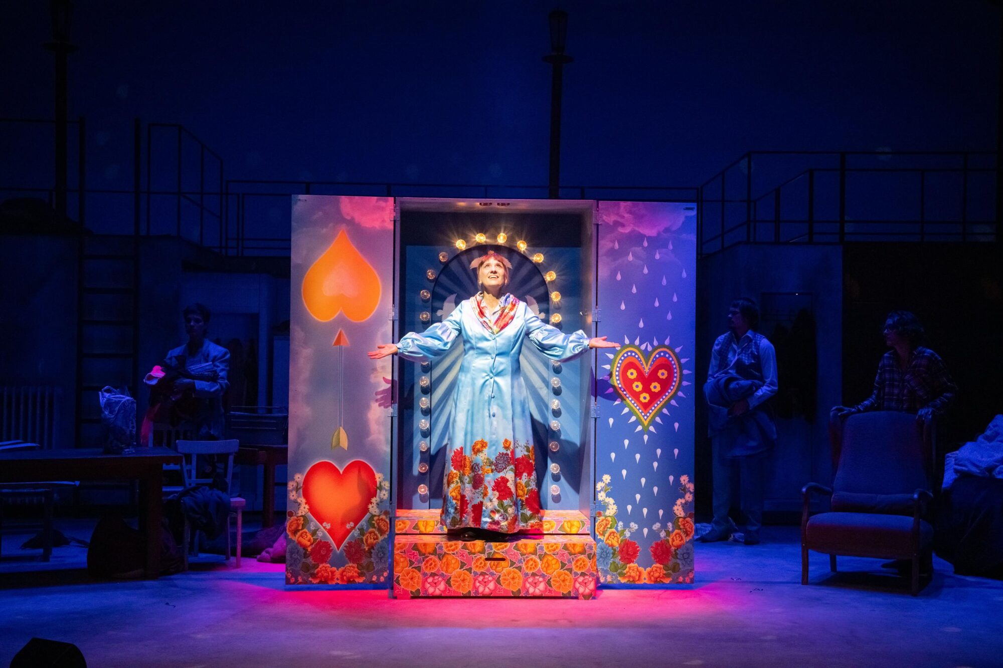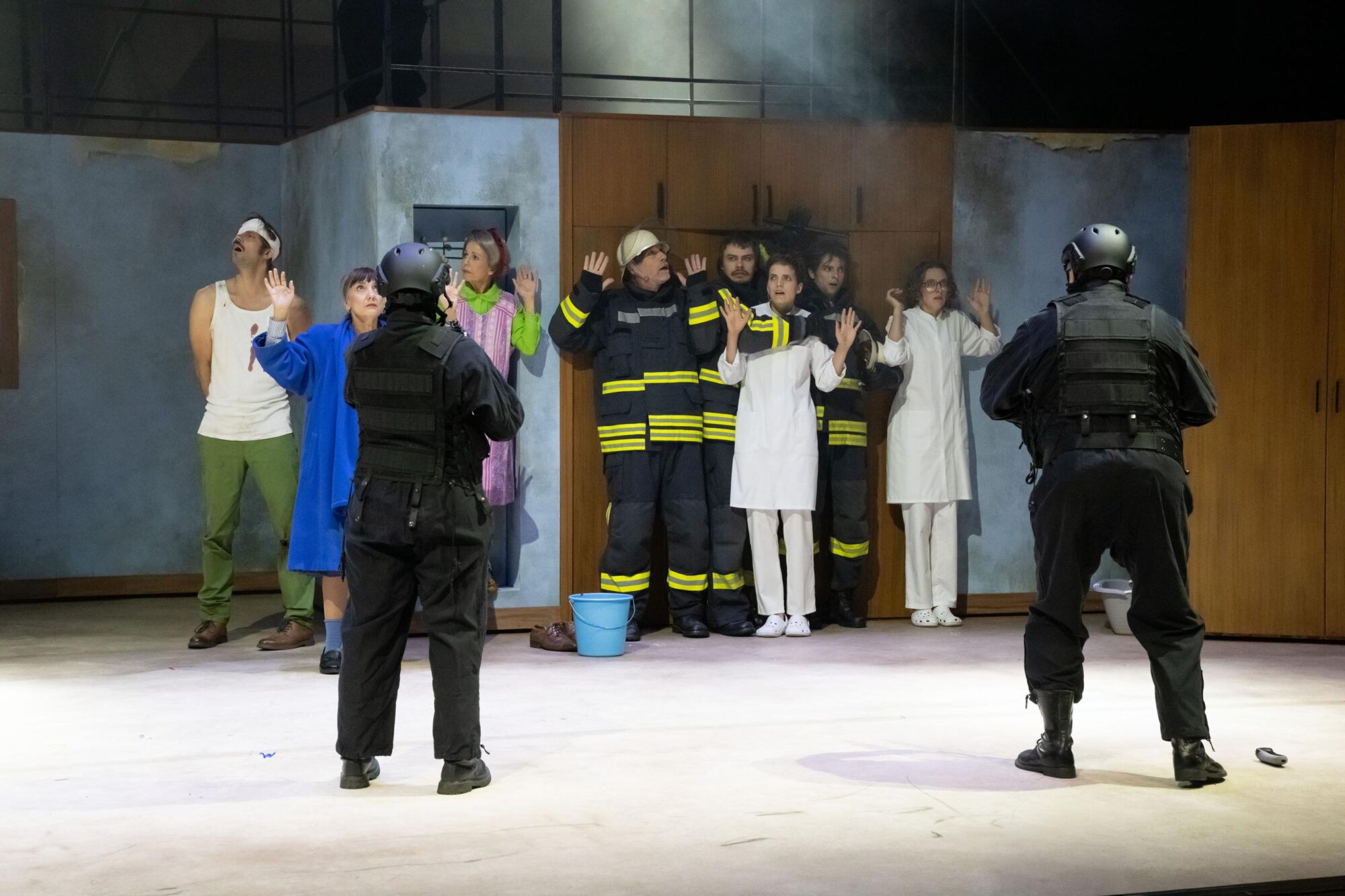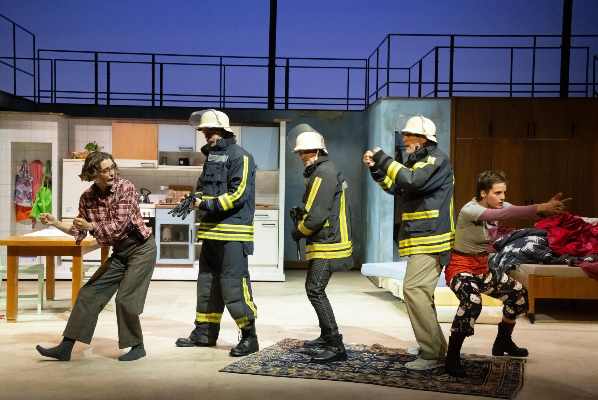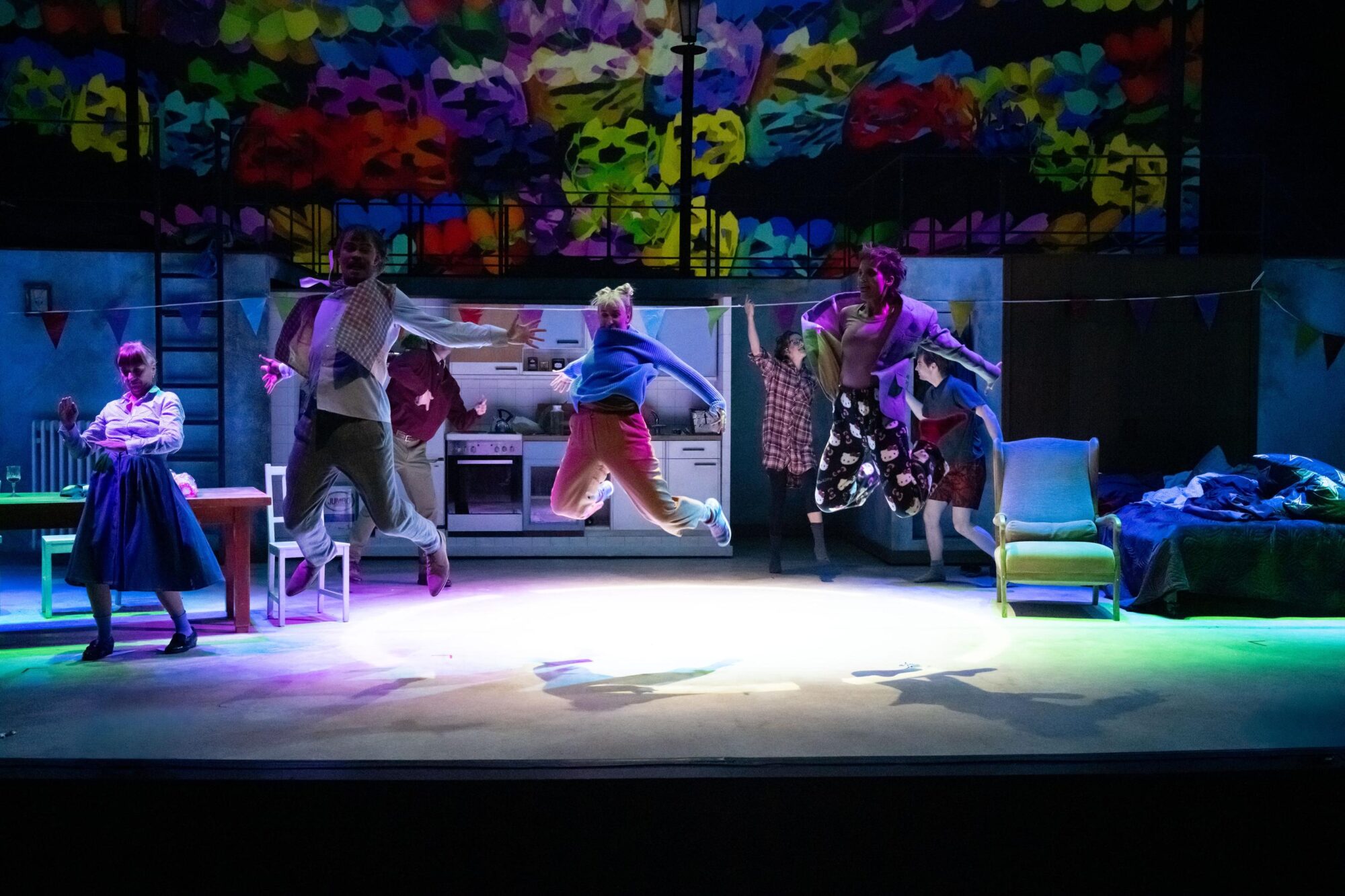 “Es ist eine Realität, in der alle versuchen, zurechtzukommen. Die großartige Mutter dieser Familie hält alles zusammen, am liebsten mit Essen und auch mal einem Getränk. Alle, das sind zunächst Mama und Papa. Vornamen gibt’s nicht – hier sind die klassischen Rollen als Ernährer und versorgende Mutter geschrieben. […] Und überhaupt ist viel Schwung in dieser Geschichte: Die anderen Kinder der Familie Hase tauchen eines nach dem anderen auf und nisten sich wieder im trauten Heim ein. Da ist Jeannot (Nicolas Schwarzbürger), verwickelt in dubiose Geschäfte, auf der Flucht vor der Ordnungsmacht. Wenn’s wieder mal klingelt, versteckt er sich in der Badewanne und bekommt eine Ladung Wäsche über den Körper. Da ist Marie (Julia Staufer) mit ihren Koffern: „Ich lass mich scheiden“, und da ist Lucie (Marie Eick-Kerssenbrock), die vom Altar weggelaufen ist. […] Anne Spaeter regiert dieses vielköpfige Ensemble mit Witz und Tempo und lässt auch Raum für tragische Anteile. Kostüme und das detailreiche Bühnenbild aus der Hand von Sibylle Meyer sind ein gelungener Spiegel der einfachen, aber sehr herzlichen Verhältnisse bei den Hases. Die Komödie mit Tiefgang beschert den Zuschauern einen amüsanten Abend, bei dem man über so einiges nachdenken kann und vor allem herrlich lachen.”