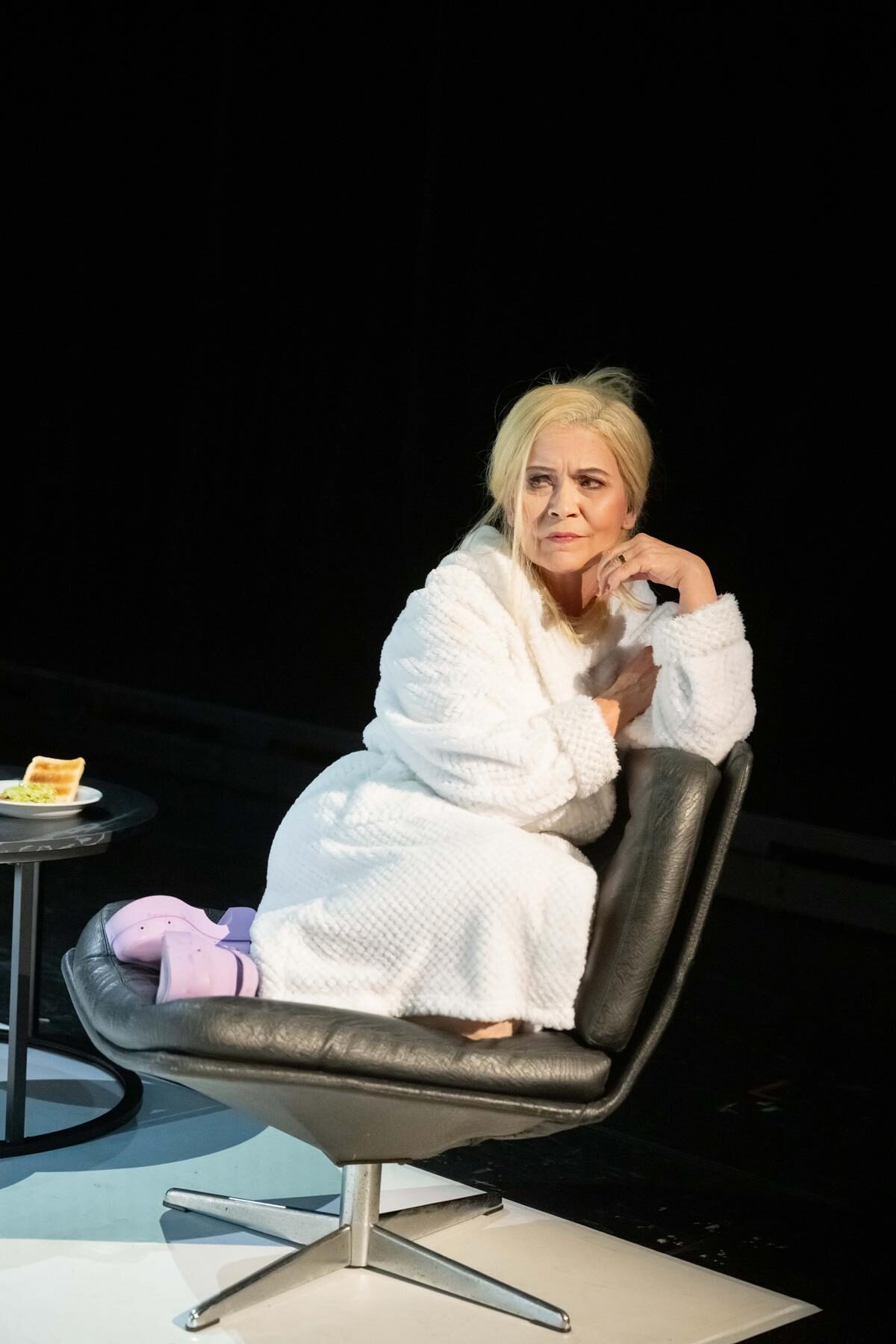 Das On-Stage-Format sorgt einerseits für einen kompakteren Bühnenraum, mehr Nähe zum Publikum – für das folglich auch geringere Platzkapazitäten vorhanden sind – und ermöglicht eine mehr „kammerspielartige“ Situation. Das funktionierte für beide Produktionen hervorragend. Die Betrachter konnten sich sehr nah am Geschehen fühlen. Bisweilen so, als hätte eine Kamera an die Szenerie herangezoomt. Ohnehin hatte der Grundansatz der gewählten Ästhetik etwas Filmisches. Ein wenig wie eine Netflix-Miniserie.