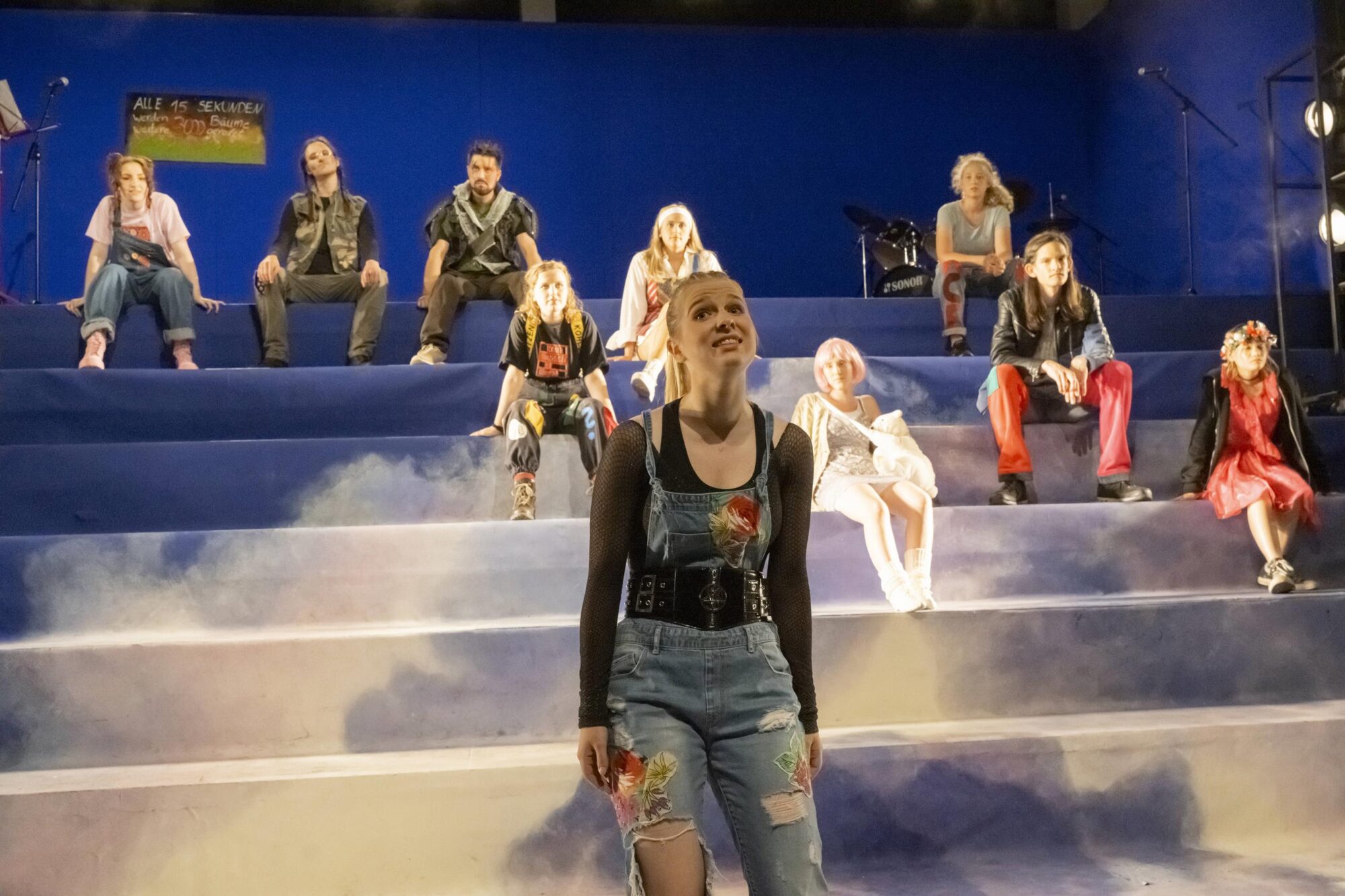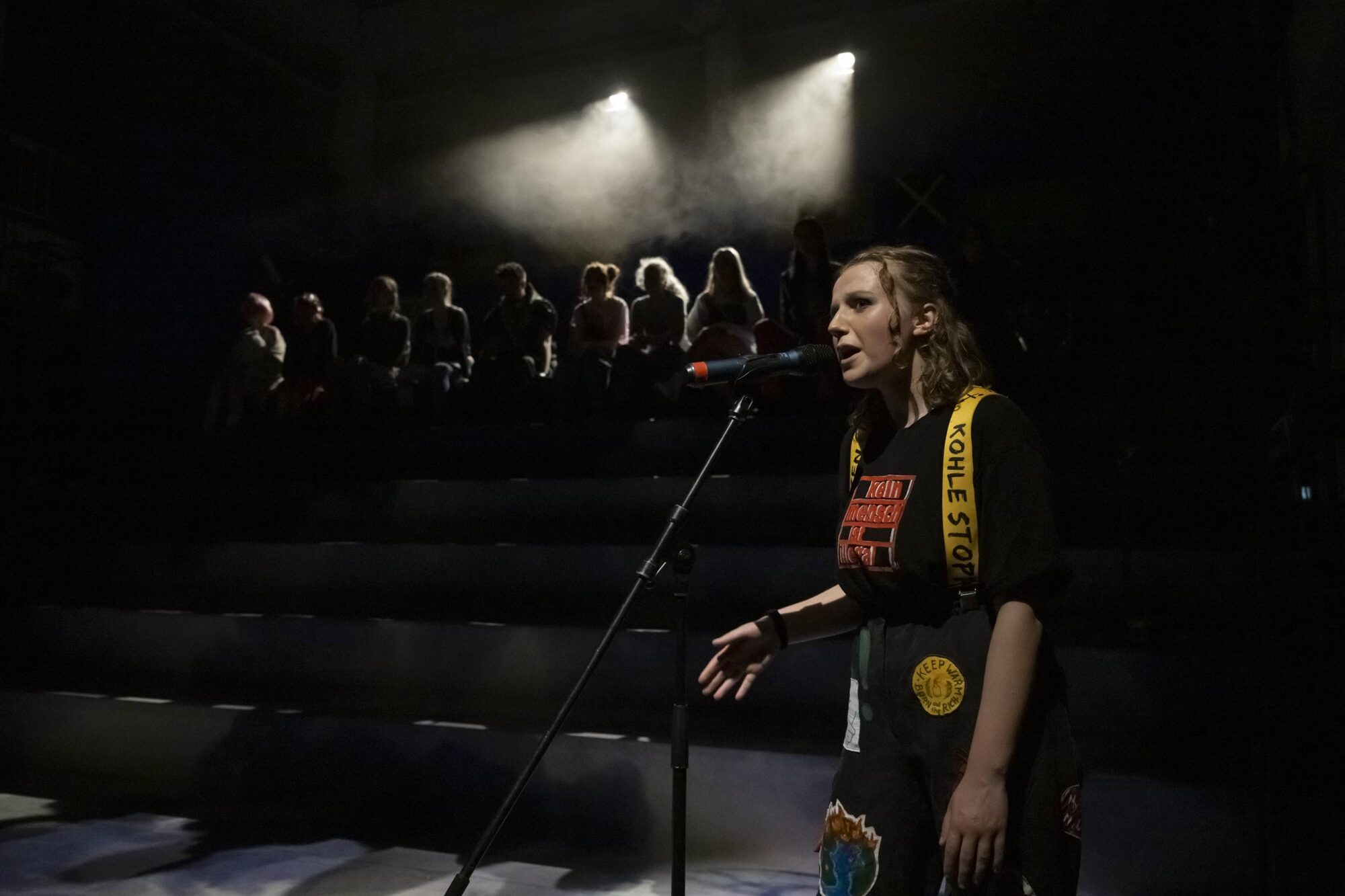 Radikal und voller Energie wollen sich die Spieler*innen Gehör verschaffen und benennen die fundamentalen Probleme ihrer Generation. Einer Generation, deren Erbe die Untätigkeit der Älteren ist. Eine Generation, die in einer Welt leben muss, die seit 150 Jahren systematisch zerstört wurde. In der das Wachstum von Kapital wichtiger ist, als das erhalten von Natur und Umwelt.