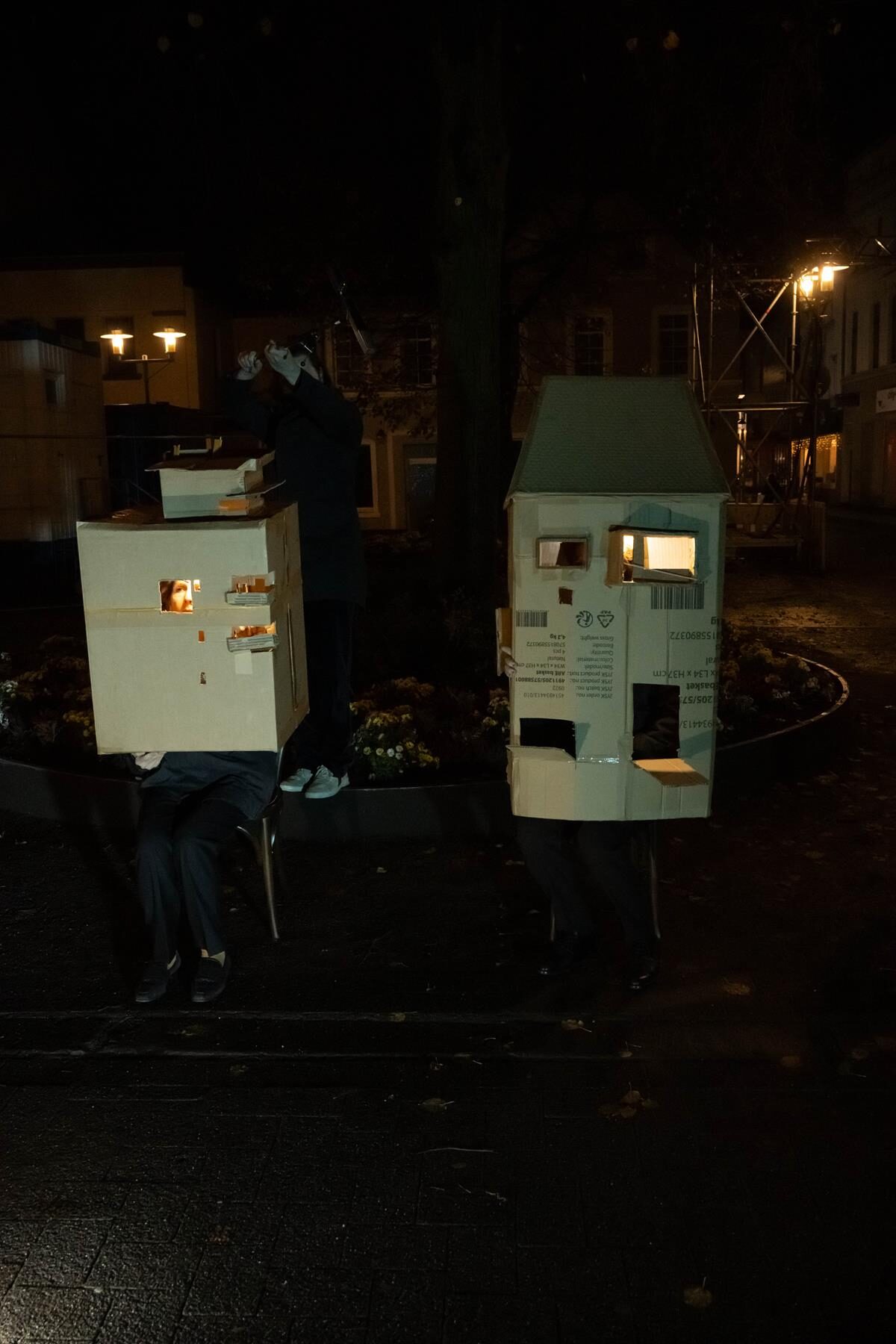 Zur 650-Jahr-Feier Krefelds entwickelt das Theaterkollektiv subbotnik – das sind Oleg Zhukov und Kornelius Heidebrecht – zusammen mit dem Gemeinschaftstheater ein dreiteiliges Theaterprojekt, das auf spielerische Weise Traum und Wirklichkeit des Zuhauseseins in der Stadt erkundet. In Teil 1 In der Stadt tauchten subbotnik im Sommer 2023 hier und dort in verschiedenen Stadtteilen in Krefeld mit ihrem provisorischen Häuschen auf und luden Passant:innen ein, einzutreten und ins Gespräch über das Zuhausesein in der Stadt zu kommen.