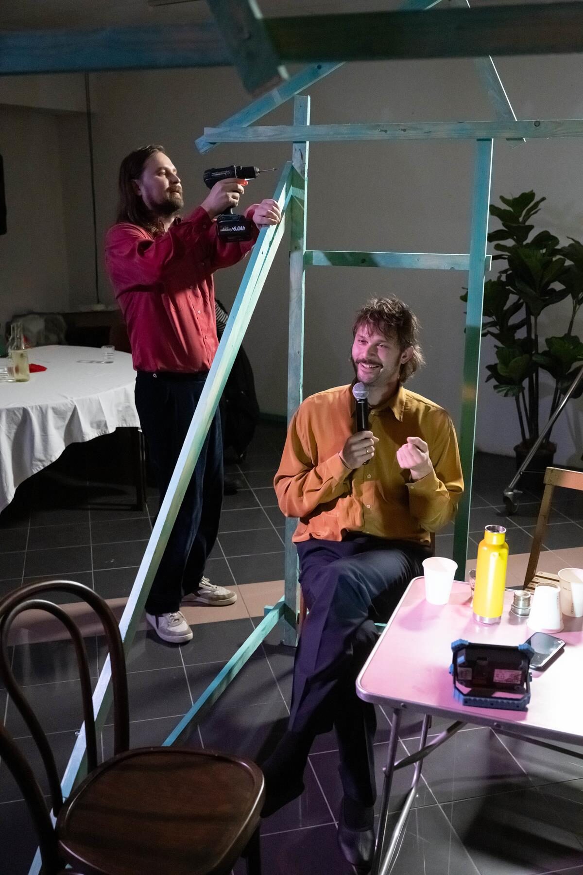 Auf diesen Begegnungen aufbauend, laden subbotnik im November 2023 in Teil 2 Das Fest zu einem utopischen Fest in ein leerstehendes Ladenlokal auf der Marktstraße 36* ein. Mitten in der Krefelder Innenstadt fragen wir: Wie zelebriert man ein Fest? Für wen öffnen wir die Tür? Darf Elefant Rhena aus dem Krefelder Zoo auch kommen? Und was trinkt der Gast, der eigentlich gar nicht da ist? Das Fest von subbotnik mit mit Jacqueline Ferreira Dourado, Nadja Duesterberg, Stefanie Elbers, Paula Emmrich, Cornelius Gebert und Bruno Winzen erkundet das Zuhausesein in der Stadt. Kommen Sie rein und wir schauen gemeinsam raus.