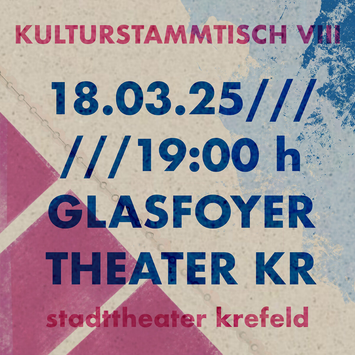 Der 8. Krefelder Kulturstammtisch findet am Dienstag, 18. März 2025 um 19 Uhr im Glasfoyer des Theaters Krefeld statt. Die Veranstaltung richtet sich an Krefelder Kunst- und Kulturschaffende und bietet Raum zum Kennenlernen, Vernetzen, Austauschen und Ideen entwickeln.