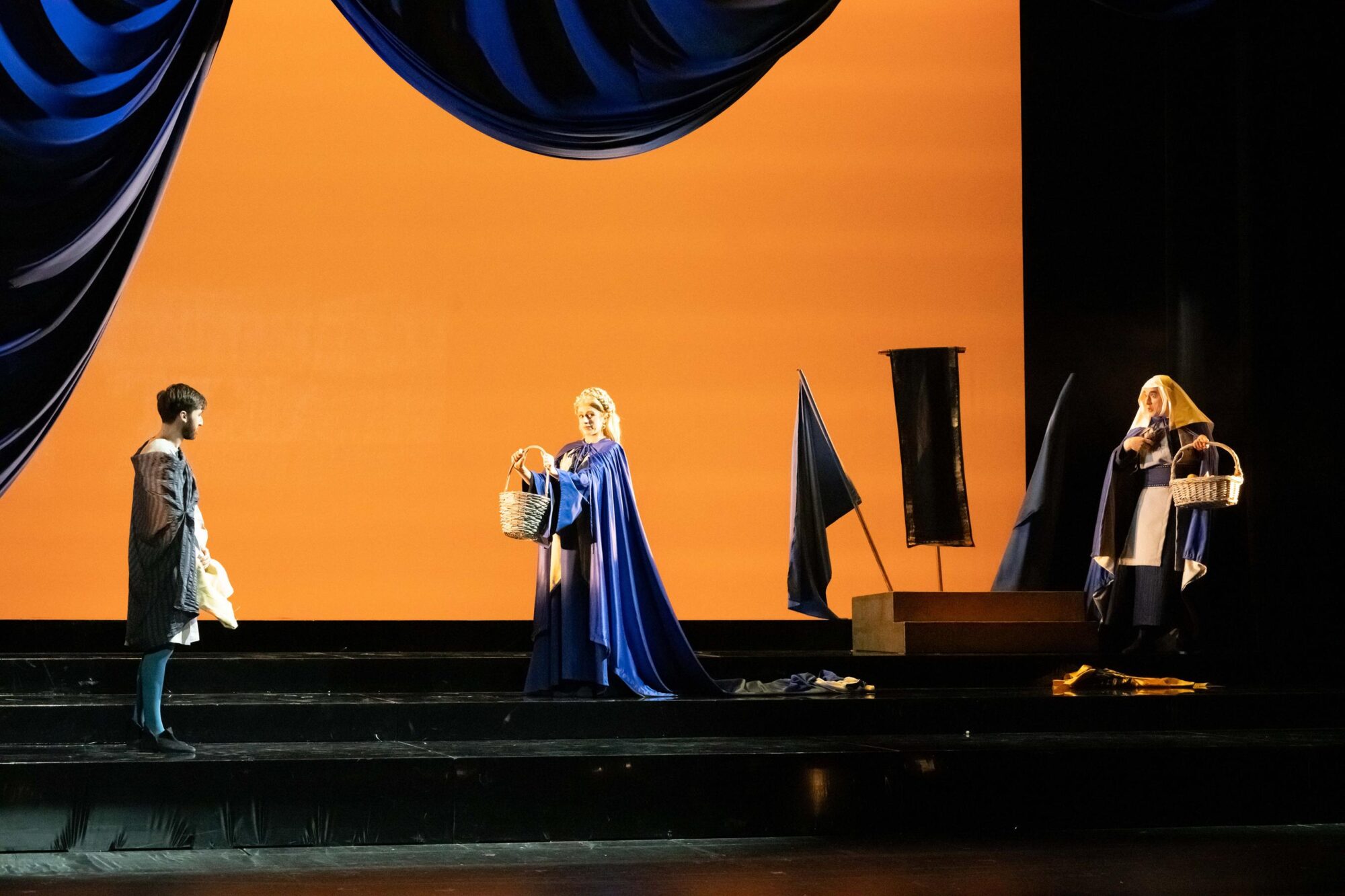 […] Mit vielen Anlehnungen an Opernaufführungen der damaligen Zeit trägt die Inszenierung von Emanuele Gamba ebenfalls zu diesem gelungenen Gastspiel bei. Die Sängerinnen und Sänger singen zwar oft zum Publikum gewandt, dennoch ist die Inszenierung nicht allzu statisch. Auch der gut eingesetzte Humor lockert den Abend auf.