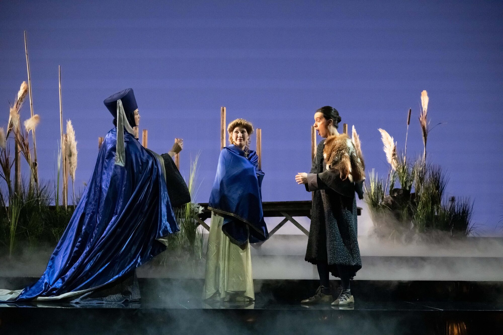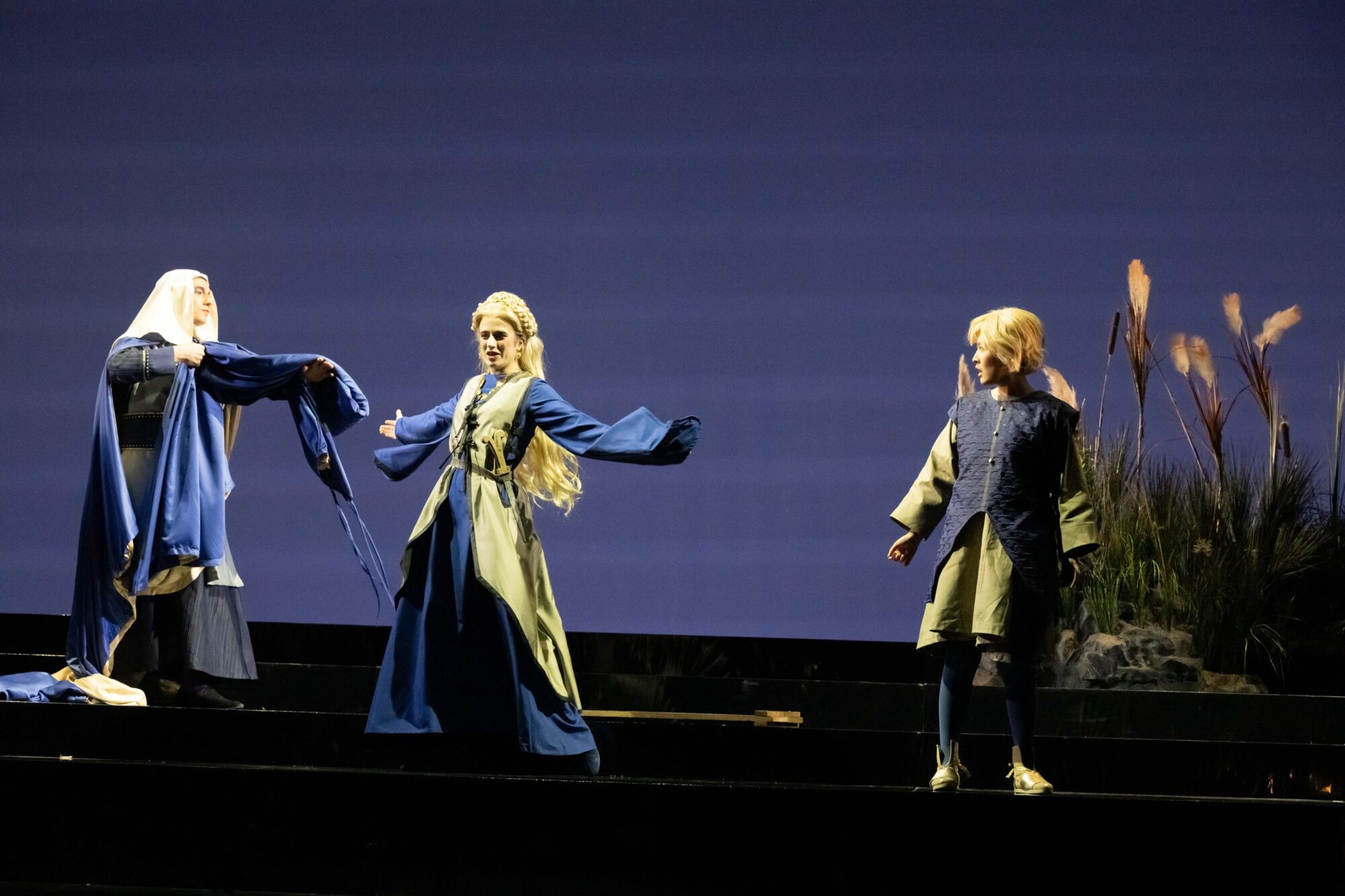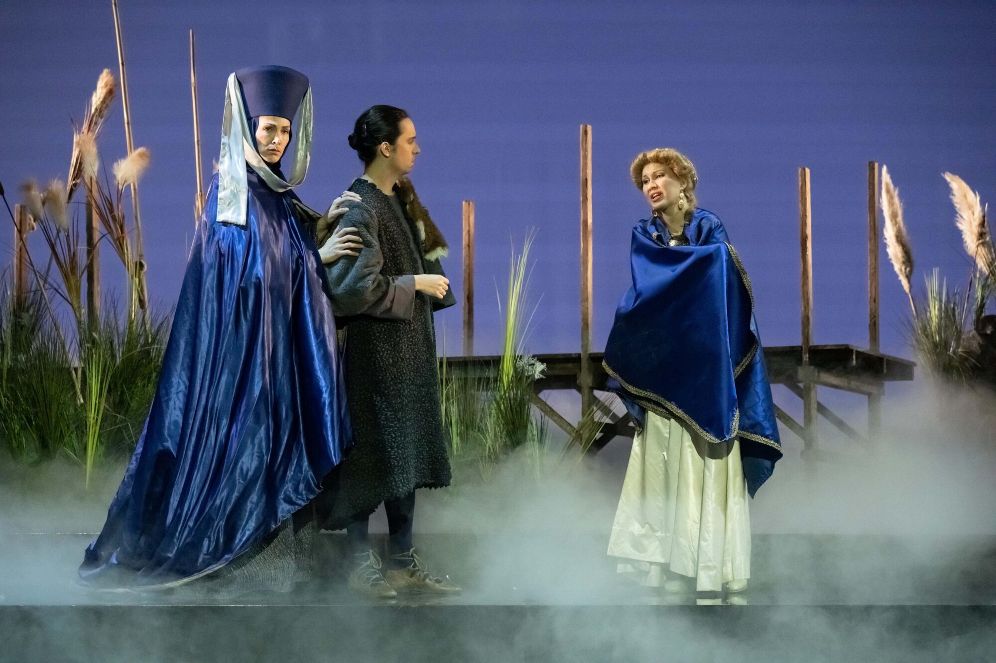 […] Das meist schlichte, dennoch aber durchaus stimmungsvolle Bühnenbild (Ausstattung: Matteo Corsi) weiß zu gefallen und sorgt mit Bühnennebel auf dem See und wechselnden farblichen Hintergründen für ausreichend Abwechslung.