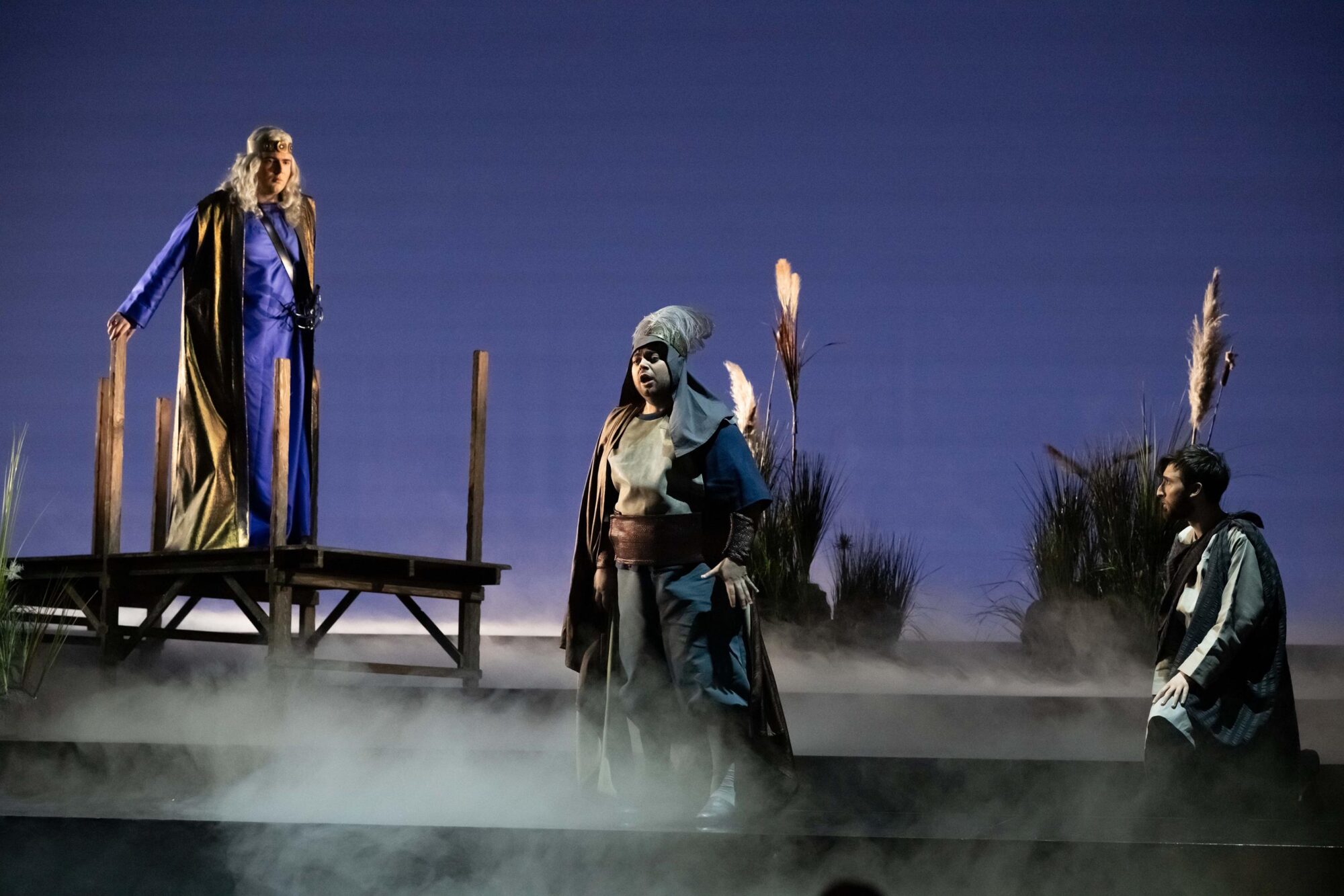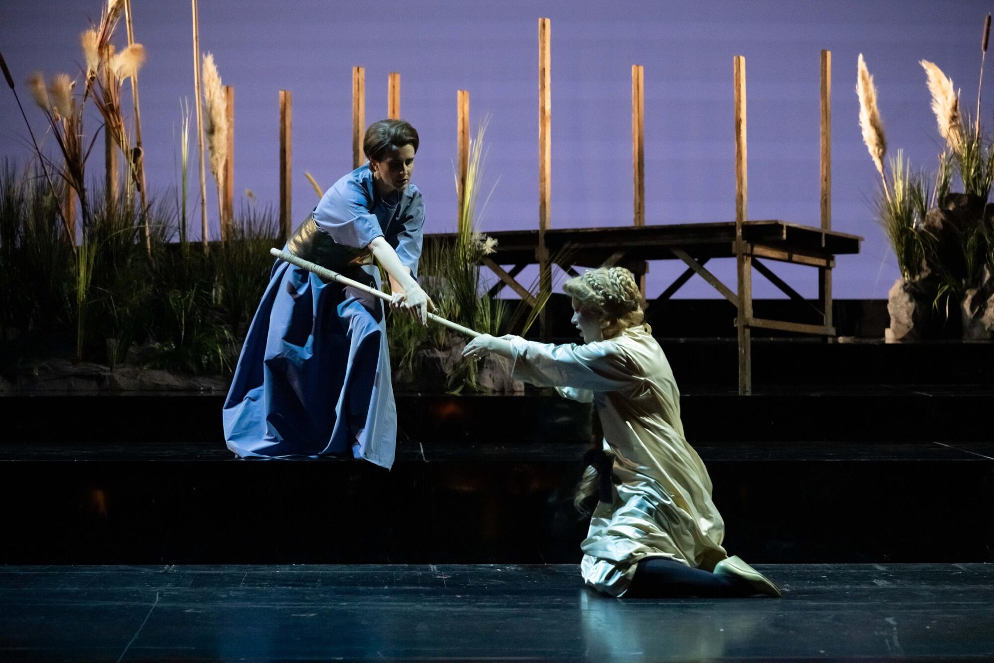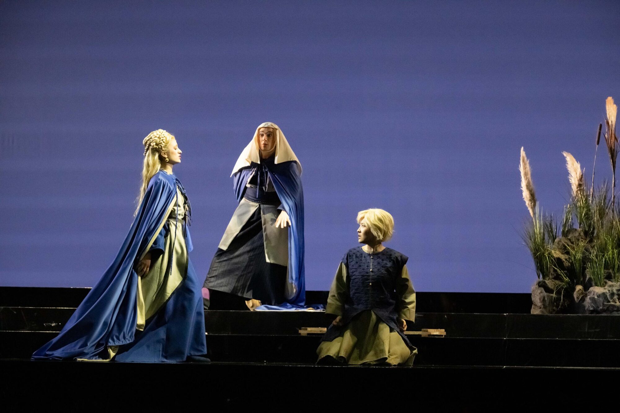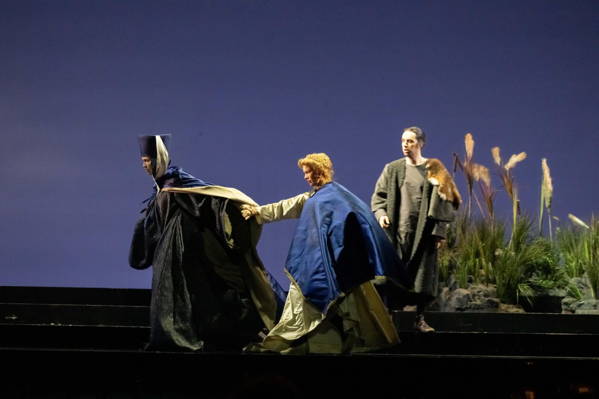 […] Das meist schlichte, dennoch aber durchaus stimmungsvolle Bühnenbild (Ausstattung: Matteo Corsi) weiß zu gefallen und sorgt mit Bühnennebel auf dem See und wechselnden farblichen Hintergründen für ausreichend Abwechslung.