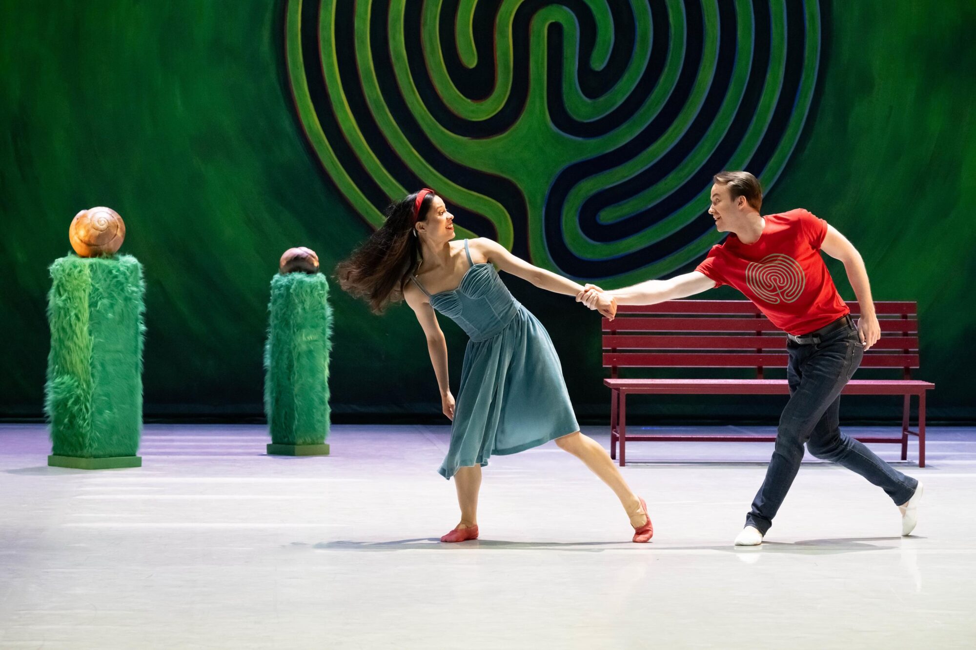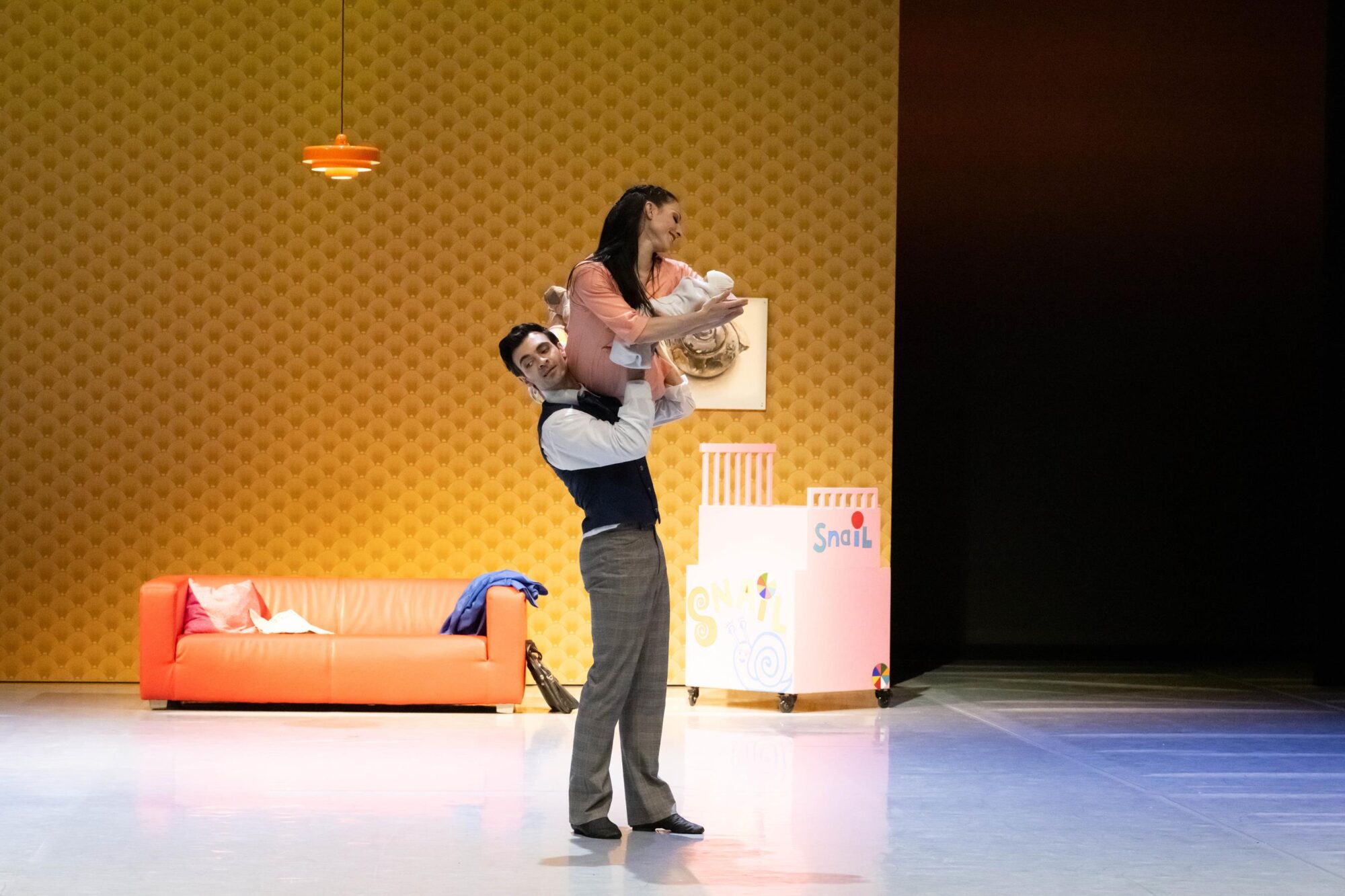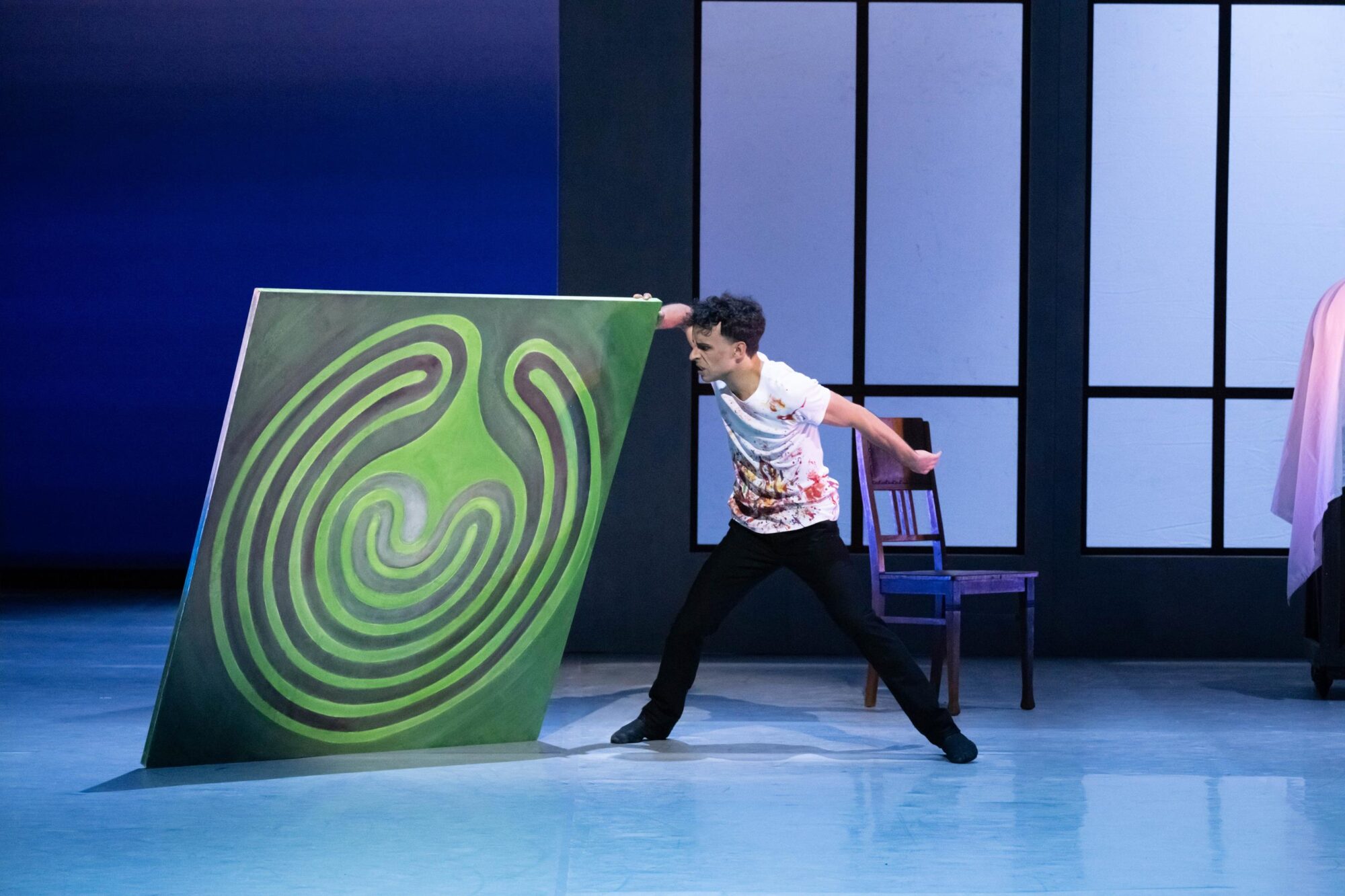 Die Mitte bildete Norths Arbeit „Der Tod und das Mädchen“ aus 1980. Die beeindruckenden Solisten Alessandro Borghesani als „Der Tod“ und Irene van Dijk als das „Mädchen“ tanzten, umrankt und ihre Bewegungen mit und ausdeutend durch das Ensemble, zum famosen, Schuberts Tonfall sehr gut treffenden, Spiel des Ardemus-Streichquartetts bestehend aus Mitgliedern der Niederrheinischen Sinfoniker (Emir Imerov, Jovana Logiewa, Natascha Krumik und Silke Frantz). (…) Davor erlebte das Krefelder Publikum eine Uraufführung, bei der sich North von Klaviermusik von Brahms zu insgesamt vier „Facetten der Liebe“ hatte inspirieren lassen. Szenen, eingebettet in eine eher postmodern wirkende szenische Anlage, deren Kern sowohl das Motiv der Schnecke als auch das Labyrinth ist (Ausstattung: Udo Hesse), zeigen mit viel Freude am Klischee verschiedene „Stationen“ des Mensch-Seins, bei denen es um „Liebe“ geht. Sei es das junge frisch verliebte Paar zwischen Euphorie und ersten Wolken am Horizont (spritzig: Flávia Harada und Andrii Gavryshkiv), das Ehepaar zwischen Kinderglück und Alltagsstress samt Emanzipationsversuchen (mit Spielfreude: Teresa Levrini und Illya Gorobets). Oder das „alte Paar“, im sanften Sonnenuntergang des Lebensabends, sehr berührend verkörpert von Victoria Hay und dem glänzenden „alten Ehemann“, bei dem selbst die kleinste Geste (…) liebevolle Achtsamkeit in sich trug (Giuseppe Lazzara). Eine andere Art von „Liebe“ – die über, mit und durch Kunst – stellten eindrucksvoll sorgenvoll-eifriger „Kunst-Student“ Francesco Rovea und weiser „Lehrer“ Marco A. Carlucci dar. (…)