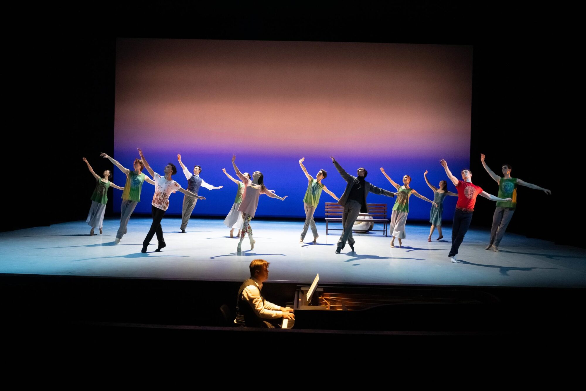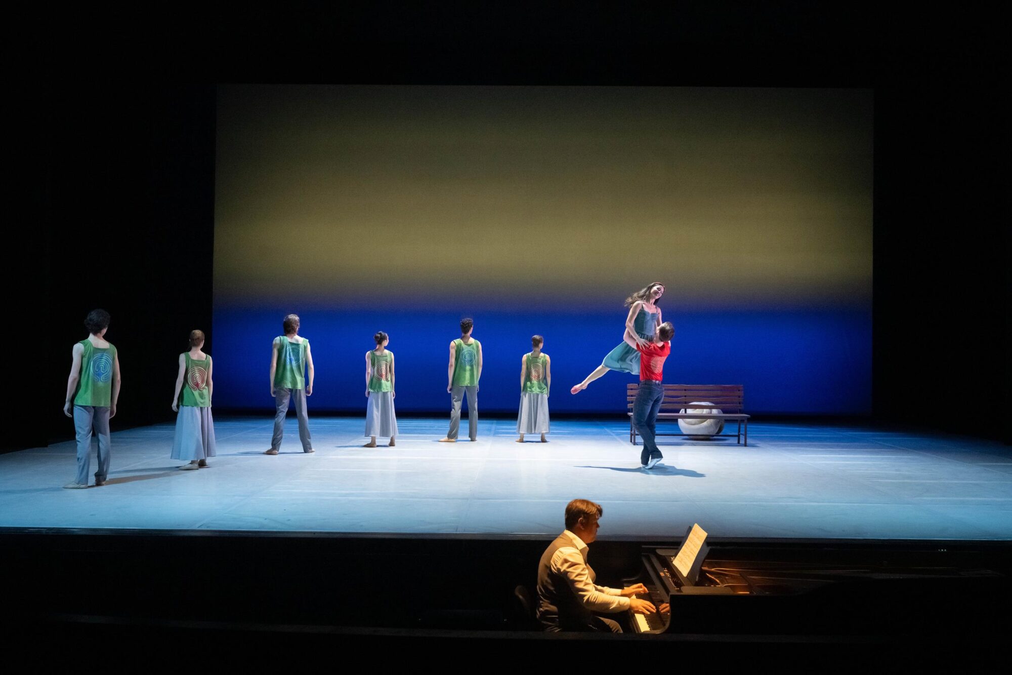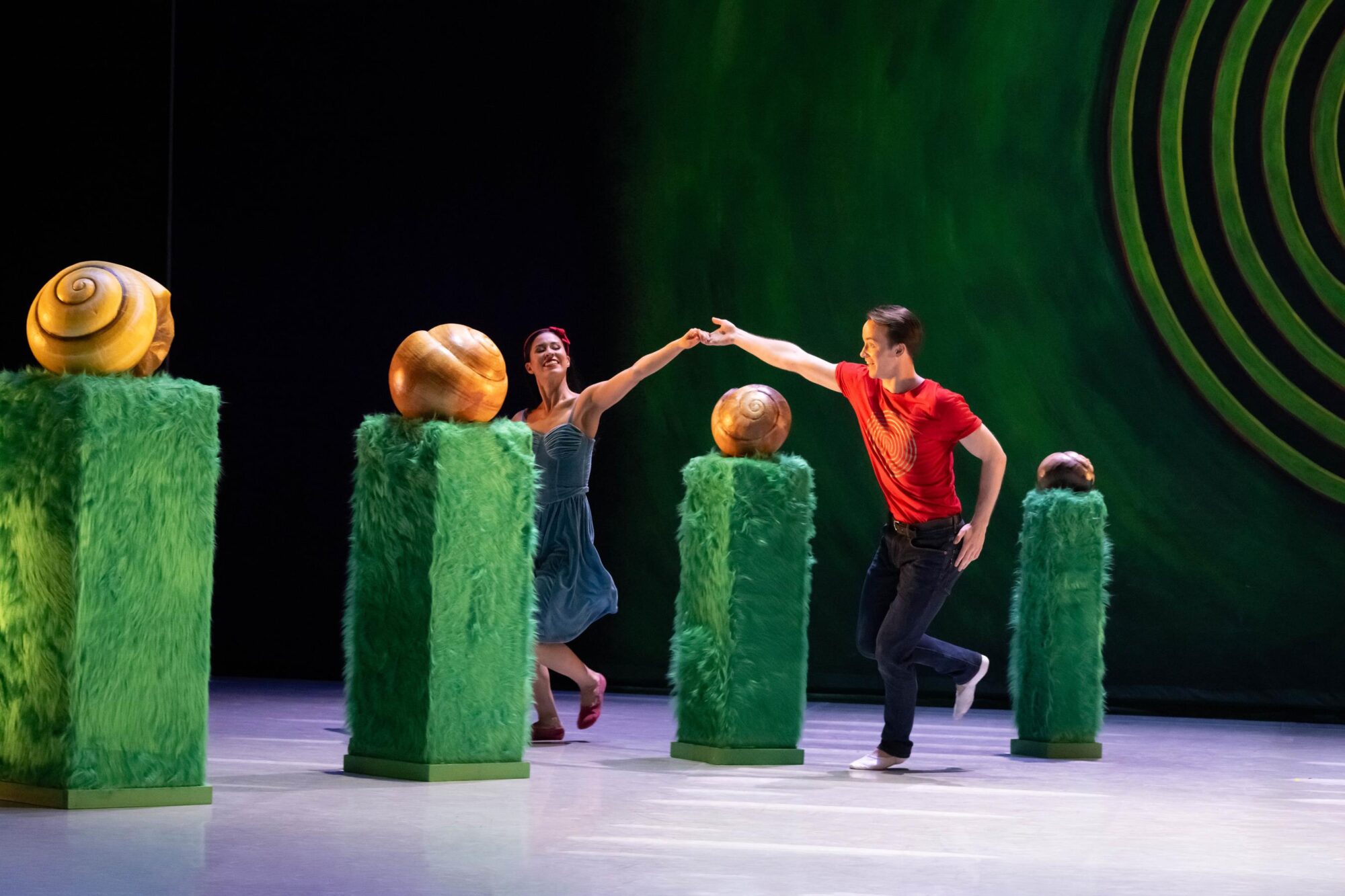 Eine Uraufführung steht am Anfang. „Facetten der Liebe“ dekliniert Phasen und Formen intensiver Zuneigung durch (…) Herausragend sind Francesco Rovea als von Selbstzweifeln geplagter Student und Marco A. Carlucci als sein Lehrer, Mentor Lebensweg-Weiser. Die tiefe geistige Verbundenheit verkörpern sie in bildstarken Pas de deux‘. André Parfenov ist mit Klaviermusik von Brahms mal wieder ein virtuoser Partner, der das Bühnengeschehen nicht untermalt, sondern mitinterpretiert. Er wurde zurecht vom Publikum besonders gefeiert. Udo Hesse hat für die „Facetten“ eine bunte Bühne und Kostüme entworfen, in denen die Schnecke (Sinnbild des Lebenskreislaufs) als Leitmotiv wirkt. (…)