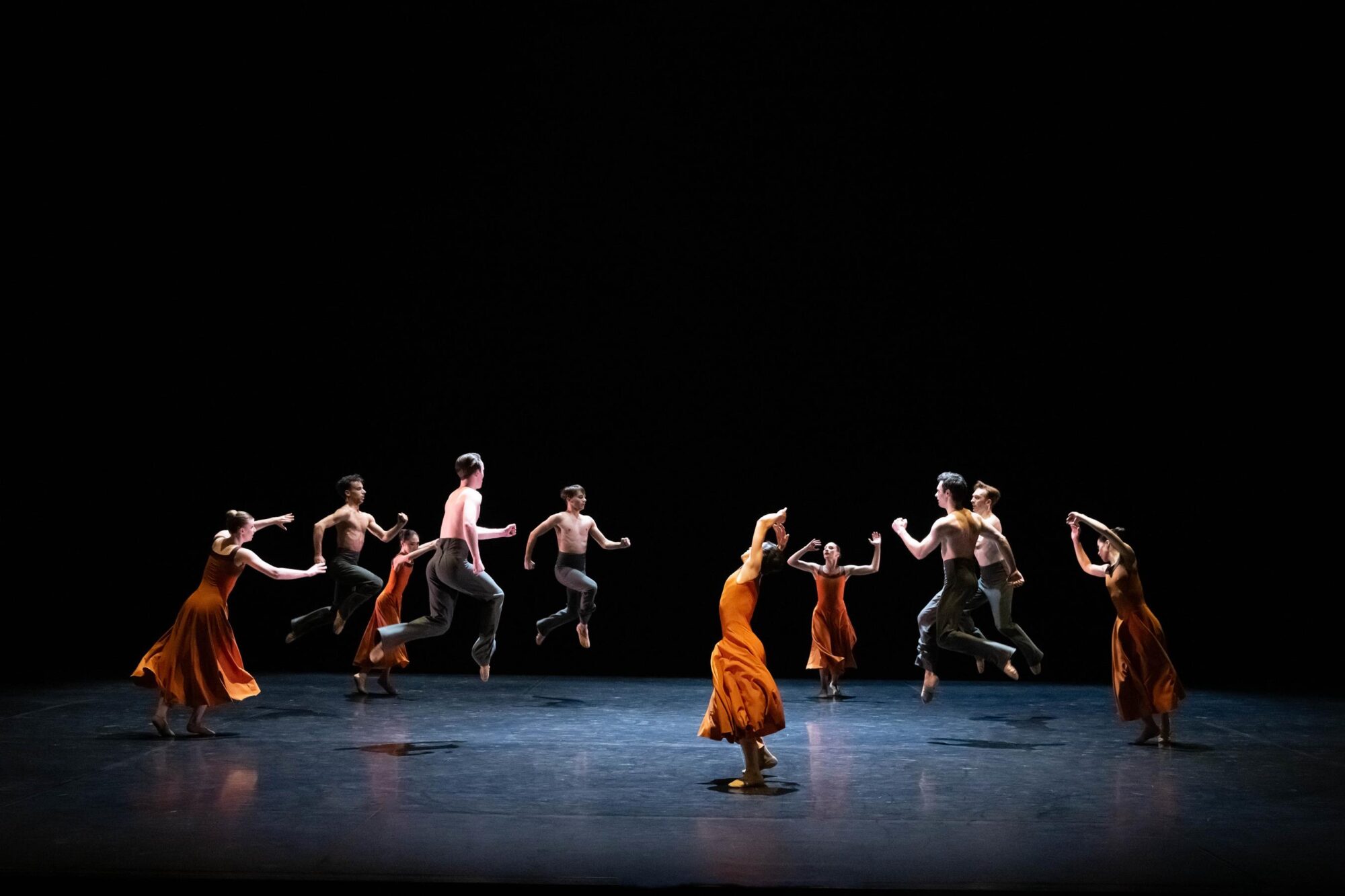 Mit der Choreografie Boléro nach Maurice Ravels bekanntester Komposition, die gewissermaßen das Prinzip des Minimalismus vorwegnimmt, klingt der Abend aus – eine furiose Steigerung in Musik und Tanz, ein Fest des Lebens.