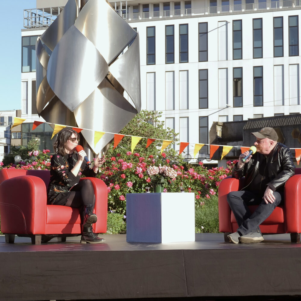 Bei „Lisas Theater-Talk“ zum Theaterjubiläum auf dem Theaterplatz in Krefeld war Generalintendant Michael Grosse zu Gast.