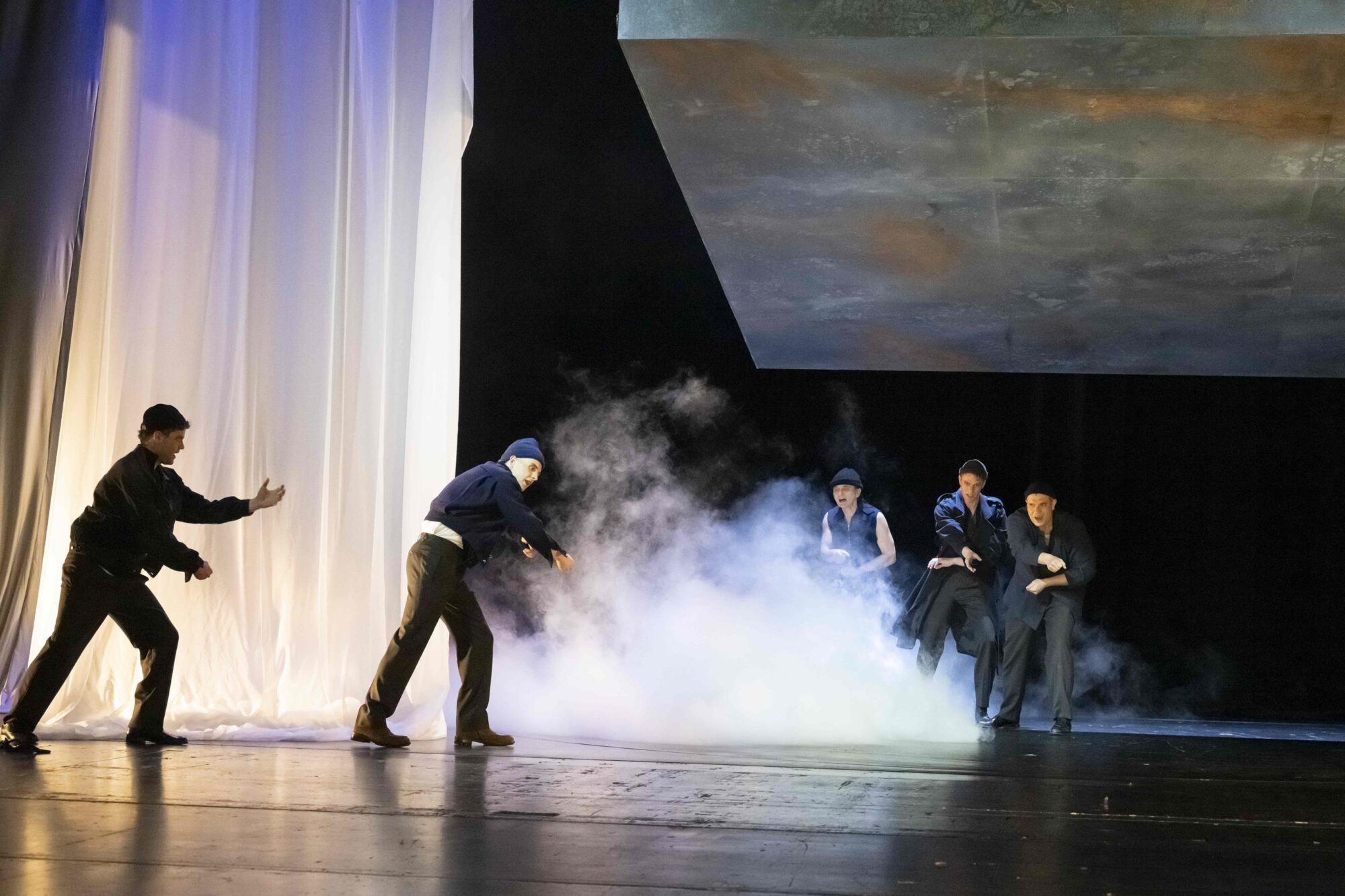 “Aus einem 900-seitigen Weltliteraturwälzer knapp zwei Stunden Theater zu machen, dazu braucht es Mumm. Trotz der nicht immer überzeugenden Textfassung, ist die Inszenierung spannend – und das hat mehrere Gründe. […] Delinic hat keinen Solo-Helden. Sie lässt ihre Crew in der Textfassung, die sie gemeinsam mit Verena Meis verfasst hat, in wechselnde Rollen schlüpfen – und alle sind der Erzähler Ishmael, aber auch mal Maat, Steuermann, Koch oder Kannibale. Das gelingt den Schauspielern mit Bravour. Sie finden immer den richtigen Ton und die richtige Haltung, um die Charaktere zu beleuchten. […] Das Quintett auf der Bühne gestaltet das Abenteuer packend. Sie legen sich in den Wind, schwanken mit dem Seegang, sie pullen um ihr Leben – absolut synchron. […] Das Bühnenbild von Ria Papadopoulou ist kongenial. Zwei riesige Wände, die wie zentnerschwerer Marmor wirken, bilden mal Wände oder Decks des Schiffs. […] Der Musiker Clemens Gutjahr hat eine filmartige Musik dazu komponiert, die drohendes Unheil und Naturgewalten erahnen lässt und in einem Seemannslied den ewigen Überlebenskampf ausdrückt.”