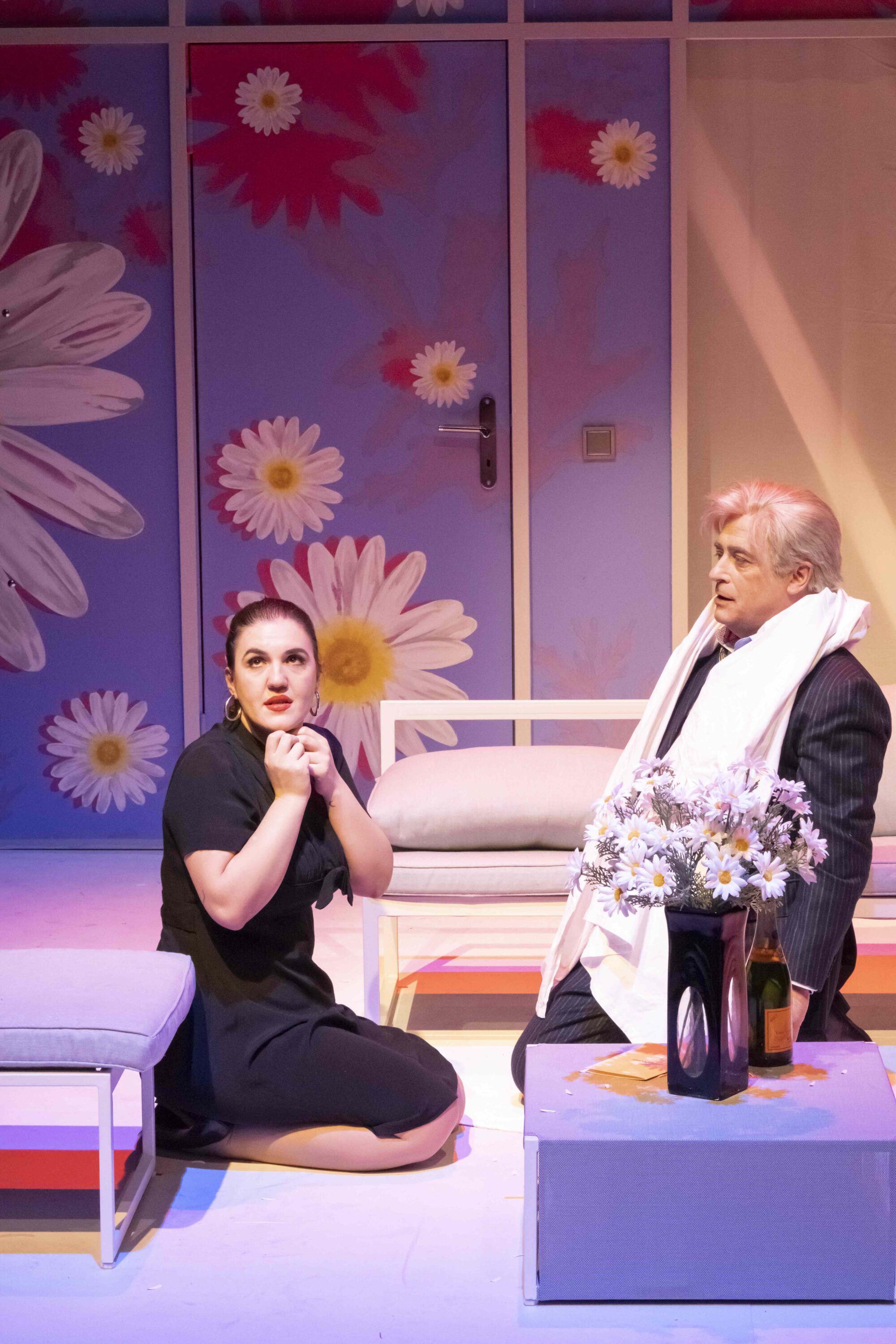 Es gibt natürlich regelrechte schauspielerische Höhepunkte. So im zweiten Akt, als der von hohen Spielschulden bedrückte Liebhaber Robert Perceval sein ganzes Haus mit Margariten schmückt, um zugleich das Liebesorakel Blatt für Blatt zu befragen. „Sie liebt mich“, sie liebt mich nicht.“ Er ist es, der passionnément – leidenschaftlich – liebt, denn schließlich ist er ein Franzose. Und soviel Inbrunst lässt „Margarete“ alias Ketty nicht unbeeindruckt. Und schon ist es um sie geschehen. Auch das Buffo-Paar Hélene le Barrois und Adolphe Le Barrois hat seine auffallenden Glanzauftritte. Beispielsweise kugelt Adolphe (Hayk Deinyan) bei seinen unzähligen Gelegenheiten, Erstaunen zu zeigen, sehr gekonnt die Augen.
