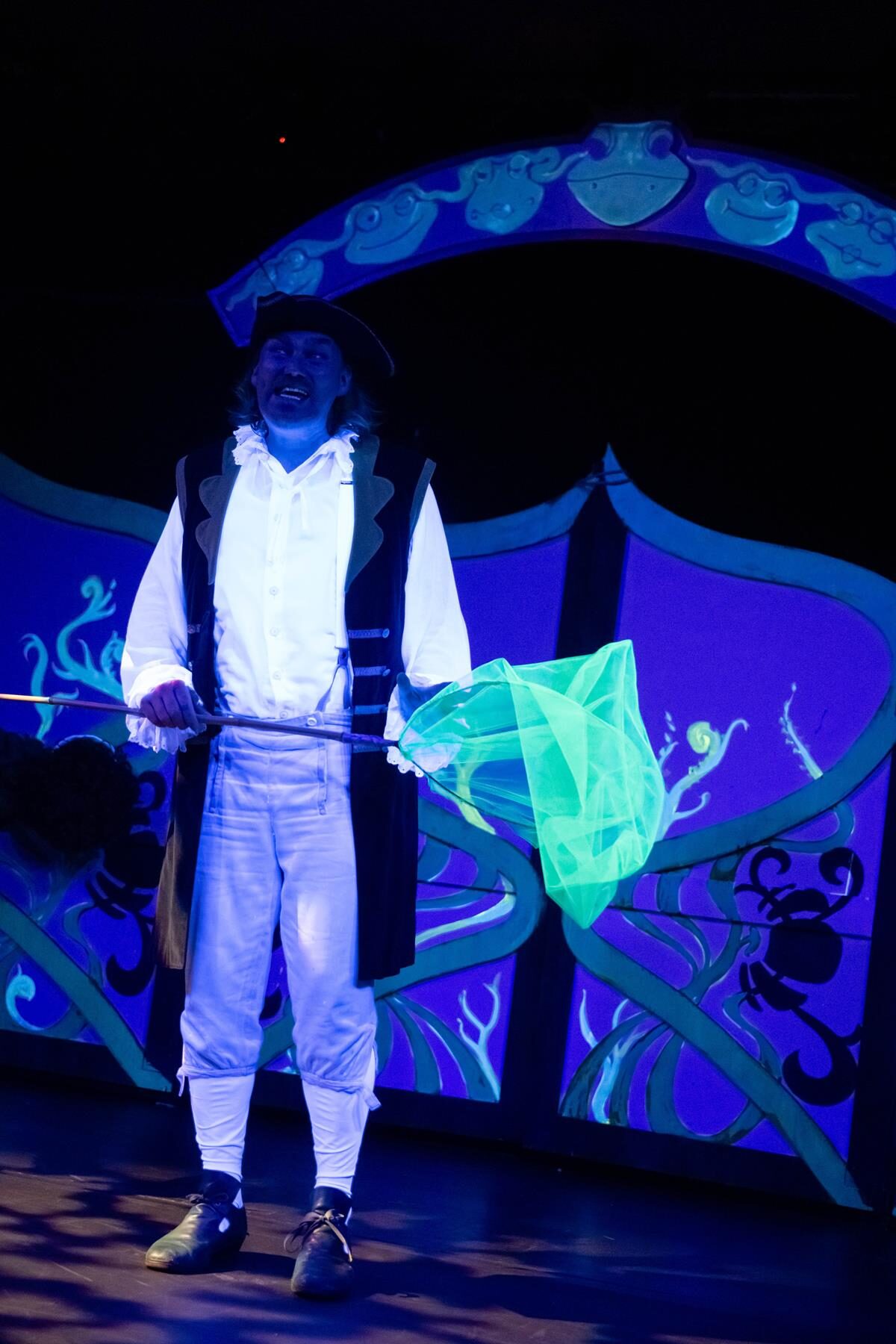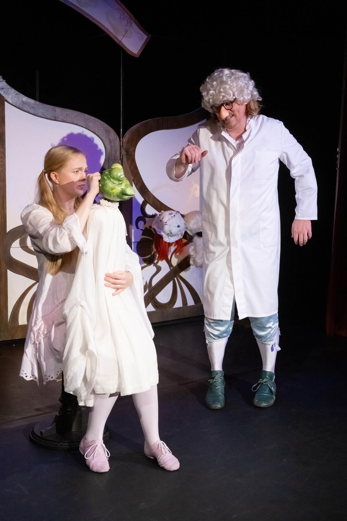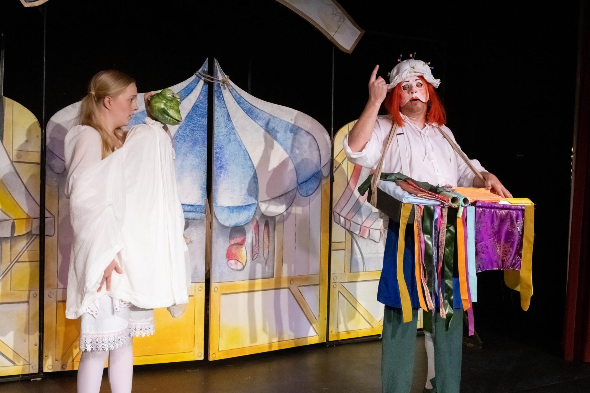 Das will der König nicht länger dulden! Er befiehlt seiner Tochter, an der frischen Luft spazieren zu gehen – und vor Schreck gehorcht die Prinzessin. Als sie am Froschteich die vielen grünen Frösche sieht, hat sie eine Idee: Aus der Froschhaut ließe sich bestimmt ein grünes Hütchen machen. Sogleich schickt sie den Reitknecht aus, um Frösche zu fangen – doch der Froschkönig zaubert der Prinzessin zur Strafe einen Froschkopf.