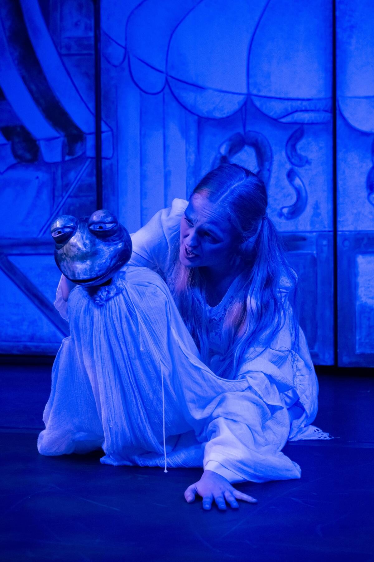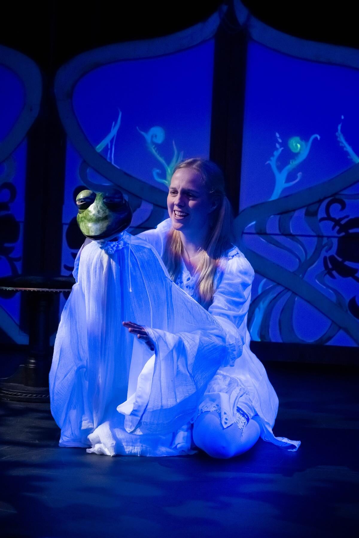 Weil niemand ihr helfen kann, läuft die verzweifelte Froschprinzessin davon und kommt nach einigen Abenteuern schließlich zu einem blinden Königssohn, dem sie Geschichten vorliest. Dabei erwacht ihr Mitgefühl – sie möchte so gern, dass der Prinz wieder sehen kann! Deshalb macht sie sich auf den Weg zum Froschkönig und bittet ihn um Hilfe. Der Froschkönig aber stellt sie vor eine schwere Entscheidung: Wenn er dem Prinzen durch Zauberkraft das Augenlicht zurückgibt, wird sie für immer ihren Froschkopf behalten…