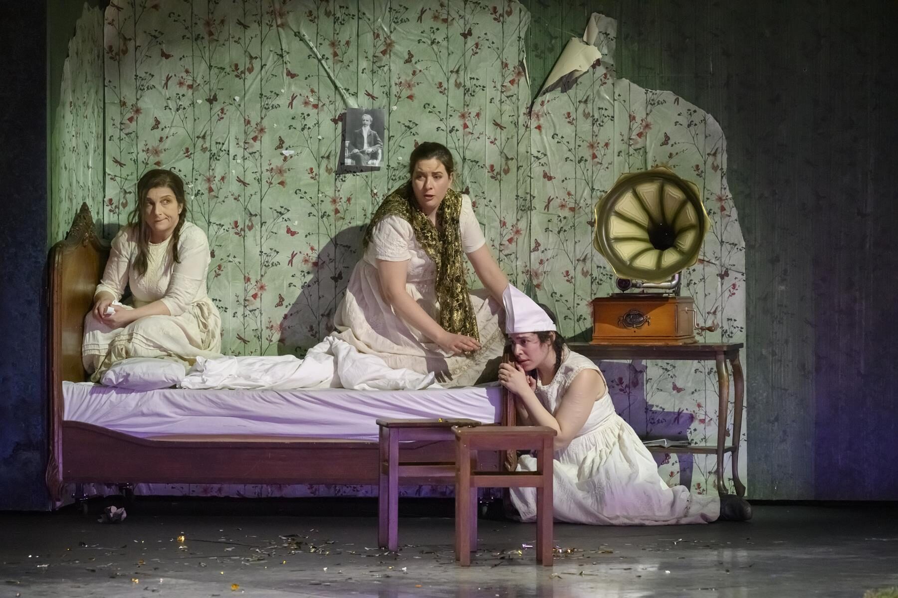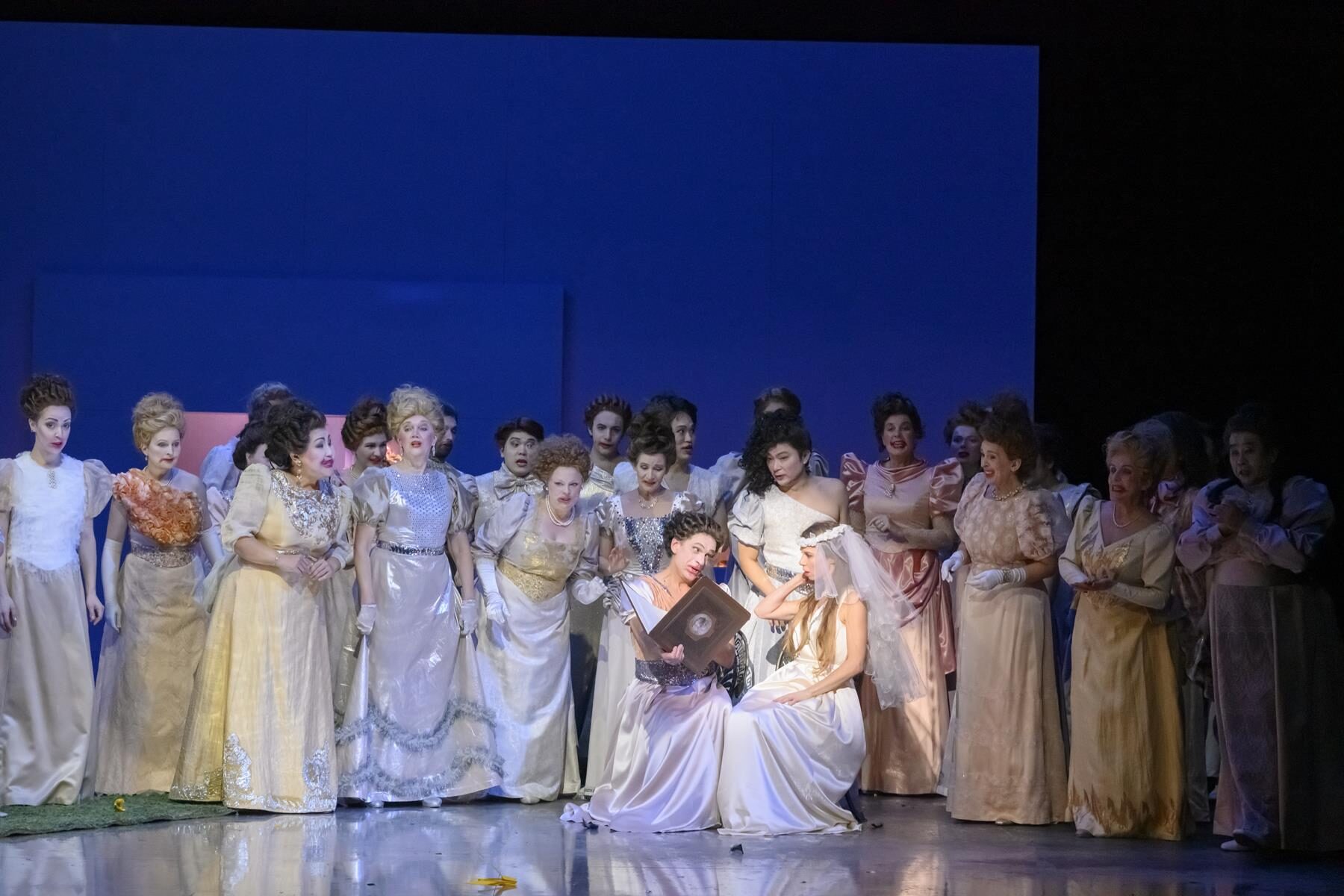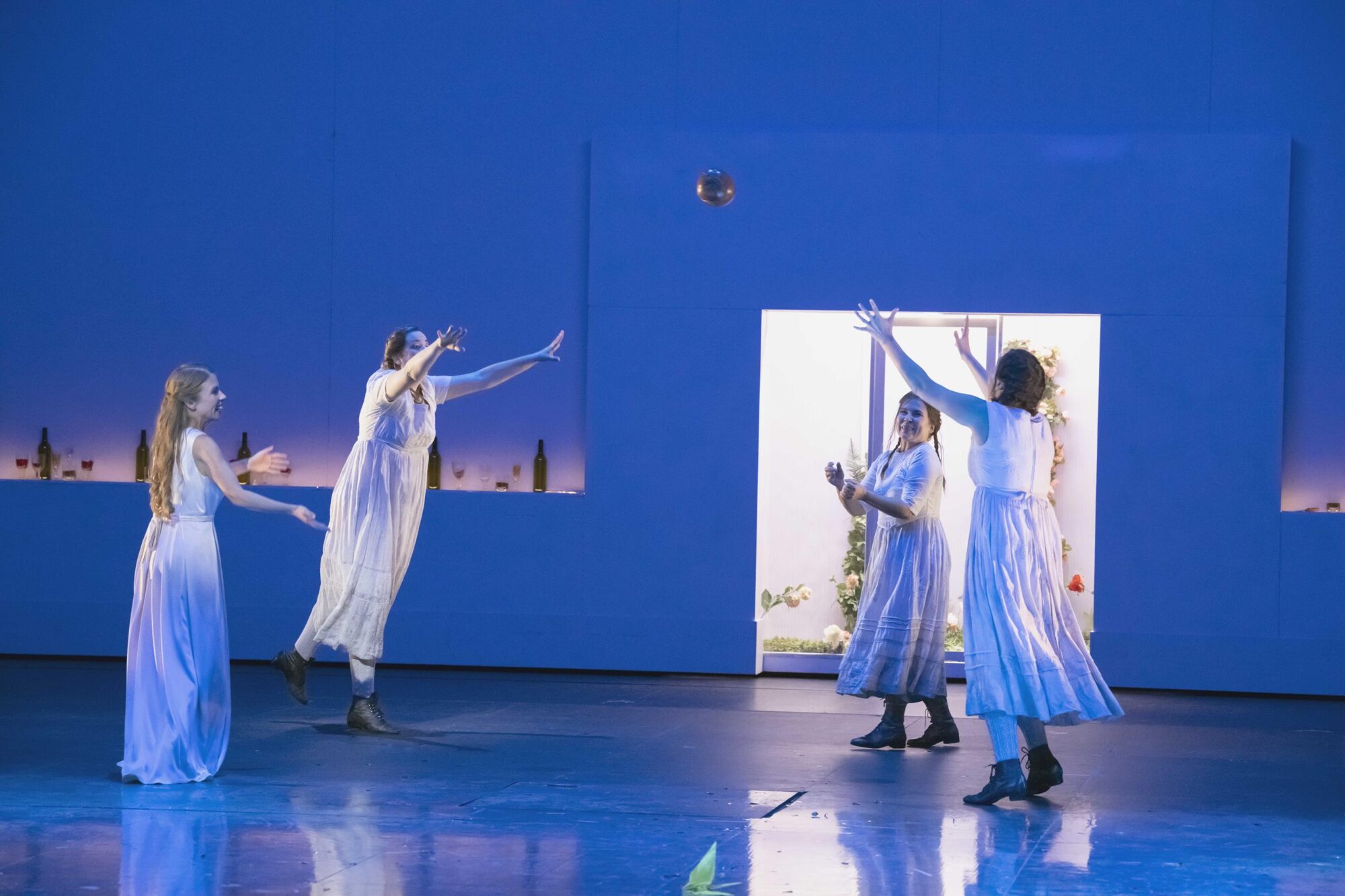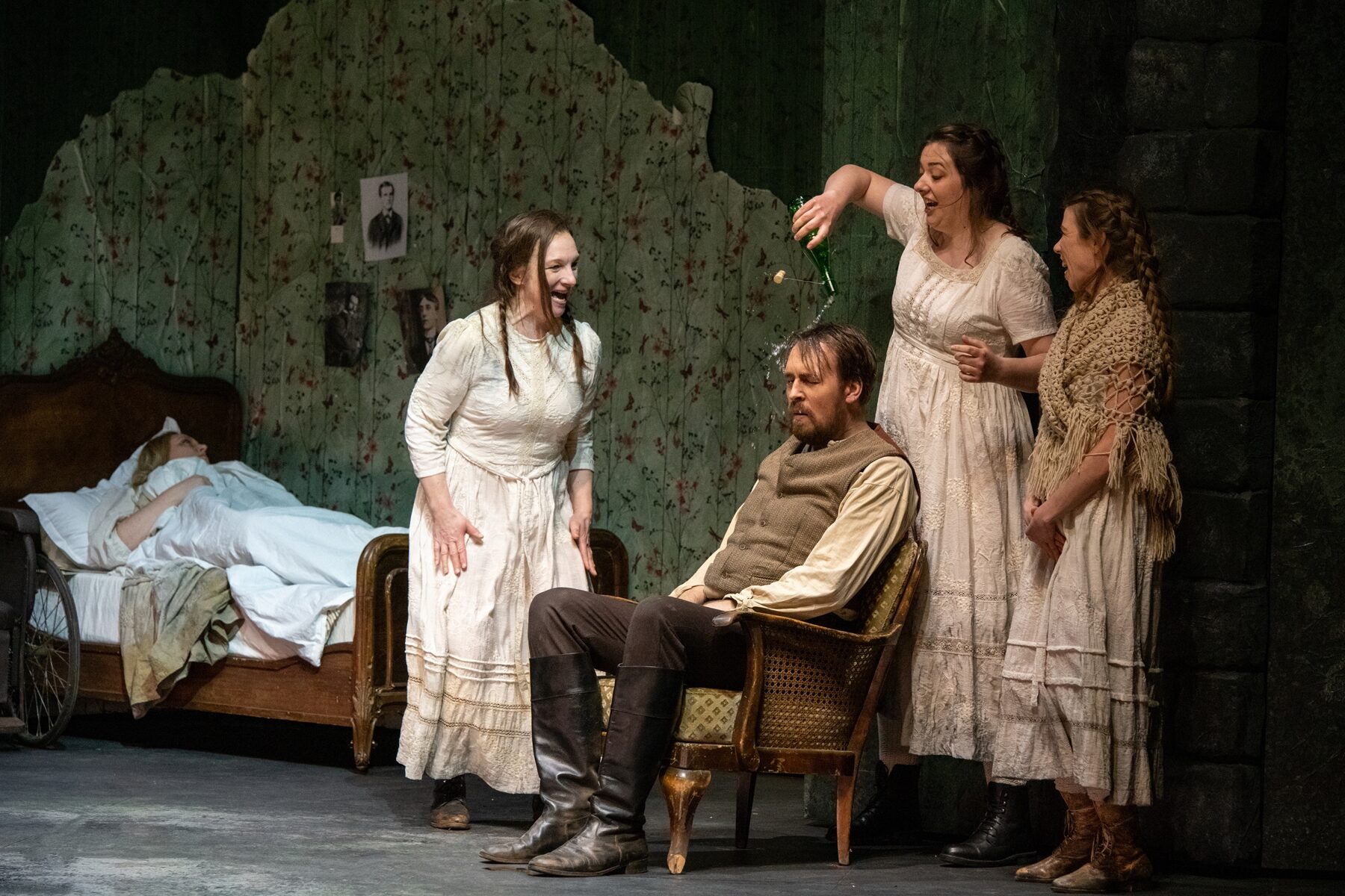 Der große Applaus gilt auch dem gut aufgestellten Chor, Chelsea Kolic, Gabriela Kuhn und Anne Heßling (die drei Schwestern) sowie Kairschan Scholdybajew (Heger) und Susanne Seefing (Küchenjunge).