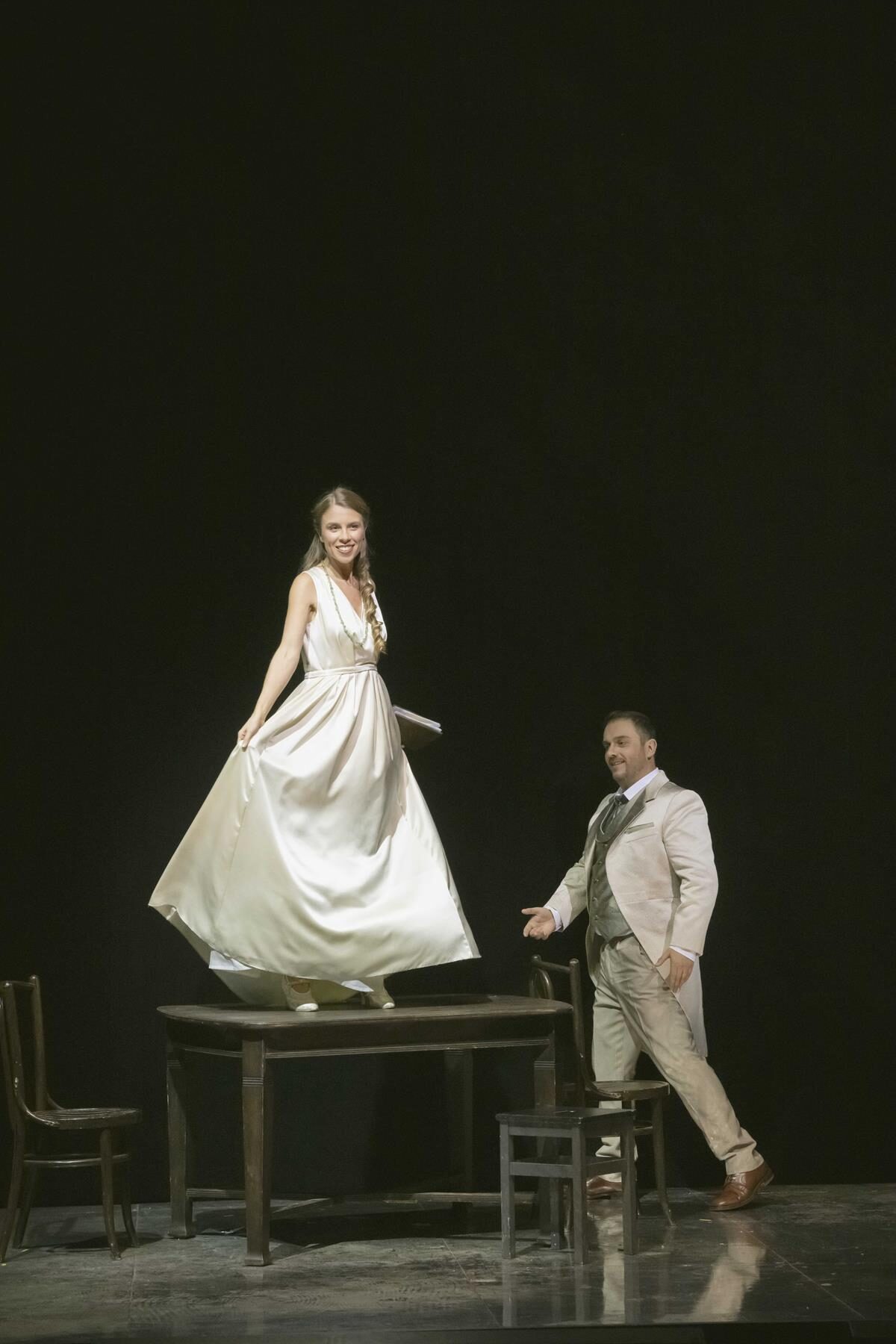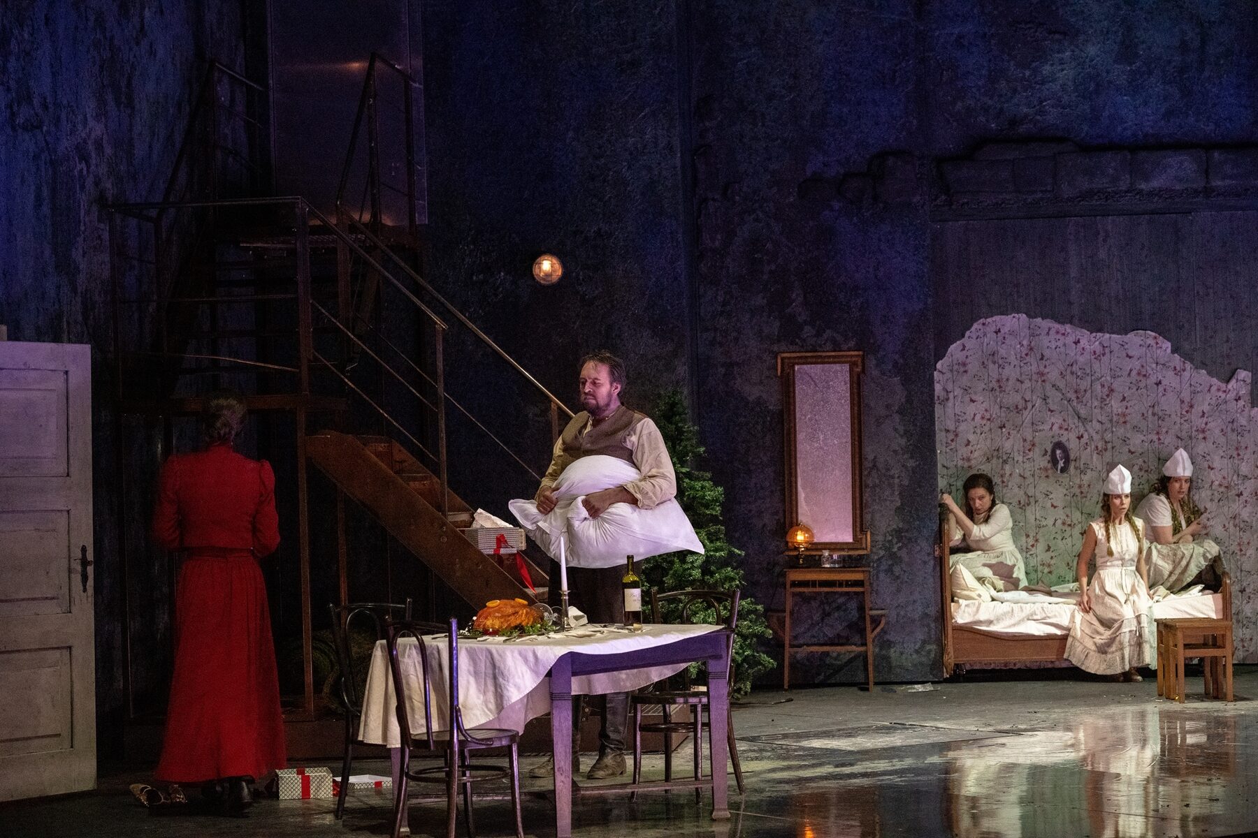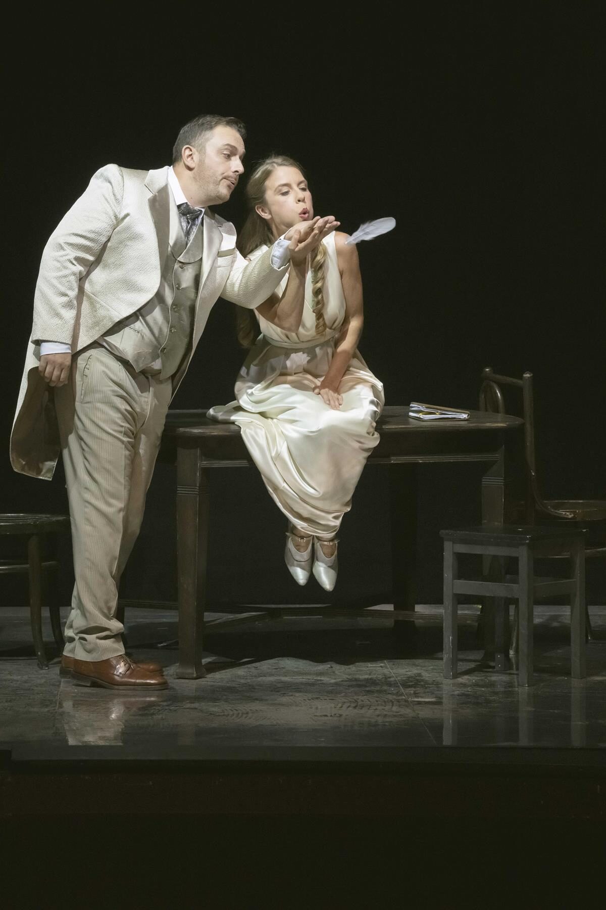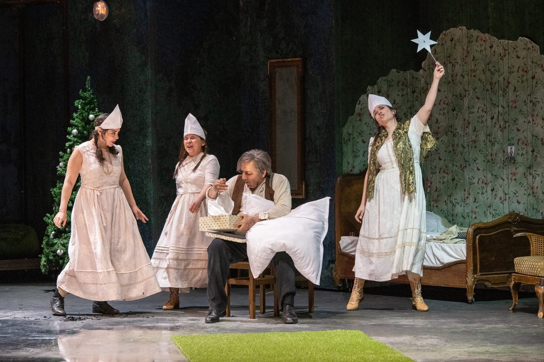 Tatjana Ivschinas Ausstattung changiert auf schöne Weise zwischen einem Realismus, der dennoch die Lücke offenlässt für eine fantasievolle Aufladung und einer gewissen – fast ein bisschen surrealistischen – Ambiguität. Der Clou der Inszenierung von Weigner ist in der Tat die Geschichte zu psychologisieren.