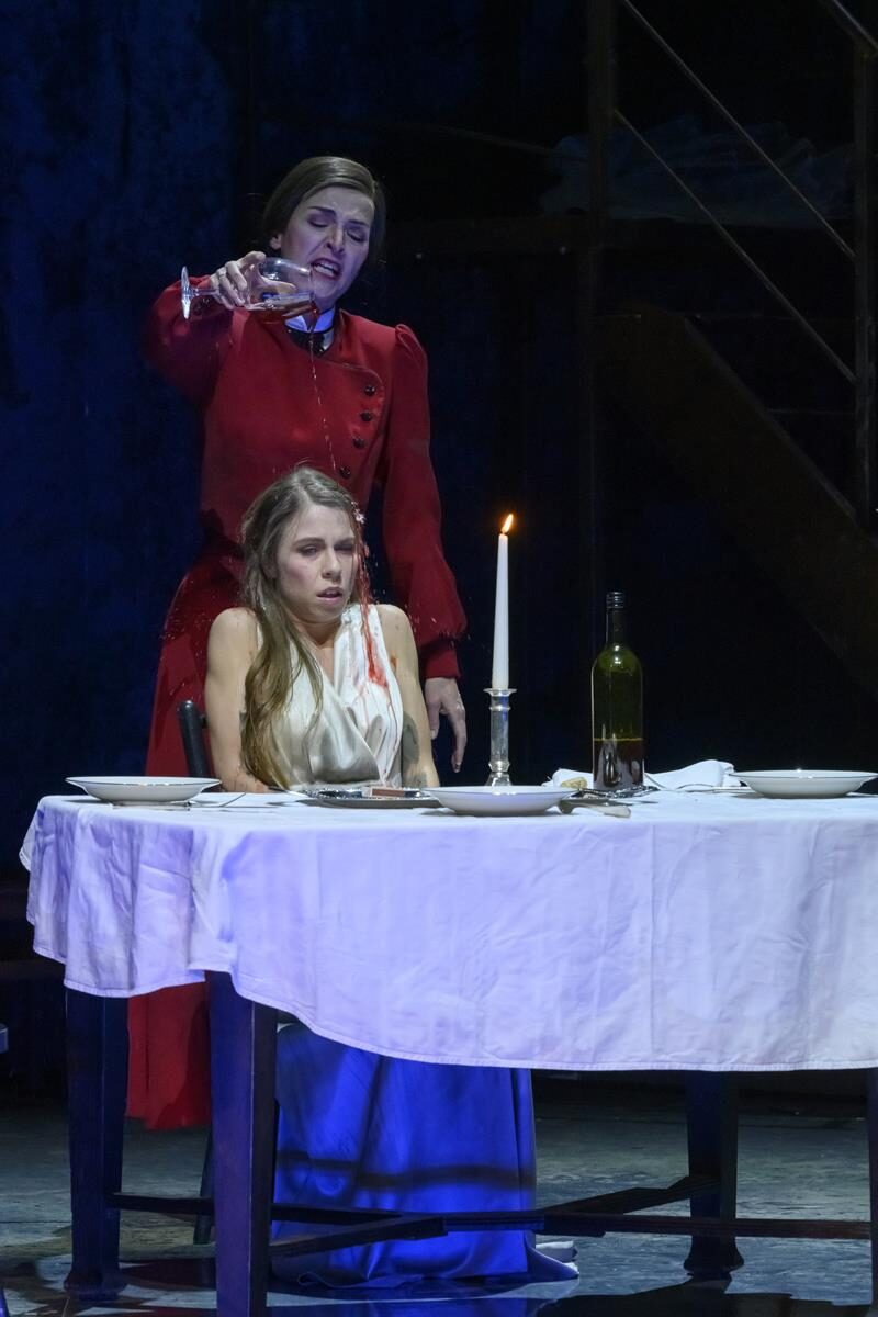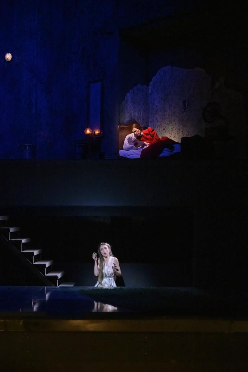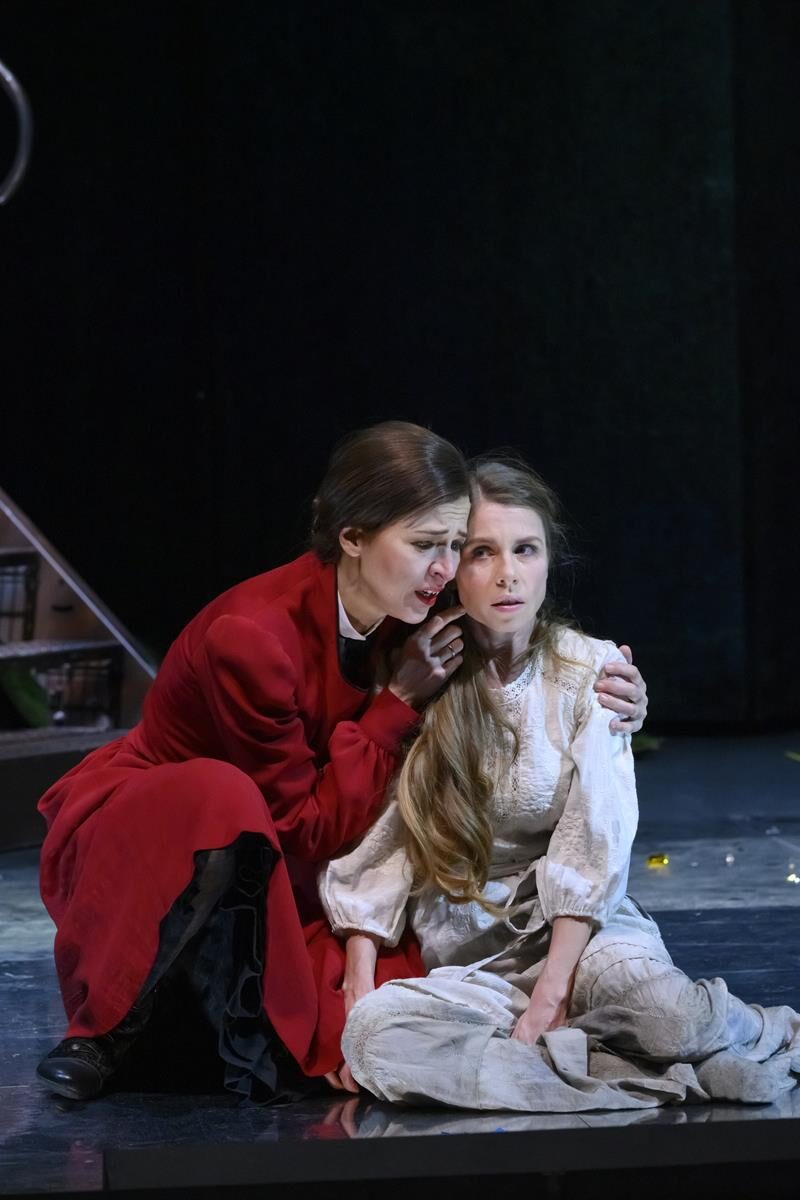 […] Anders als in der Oper, wo am Ende Rusalkas Kuss dem Prinzen zum Verhängnis wird, wird sie aktiv und von der Mutter angeleitet zur Mörderin. Danach fügt sie sich ganz in ihr Schicksal, ist wieder die schwache Tochter, die sich in die Arme der Mutter flüchtet. Eine Beziehung, die einen schaudern lässt, Sigmund Freud und Alfred Hitchcock grüßen. Auch wenn es vom Text her nicht an allen Stellen logisch erscheint, wird hier konsequent eine Geschichte erzählt.