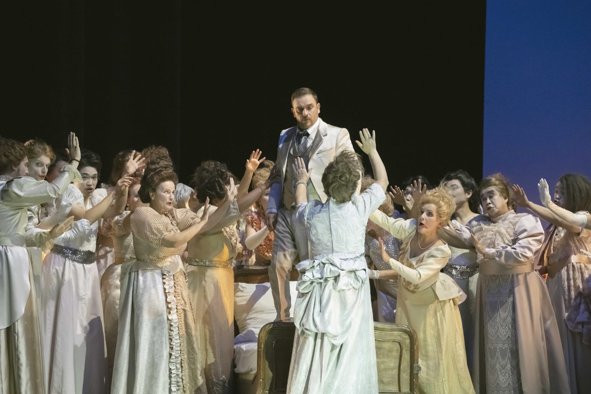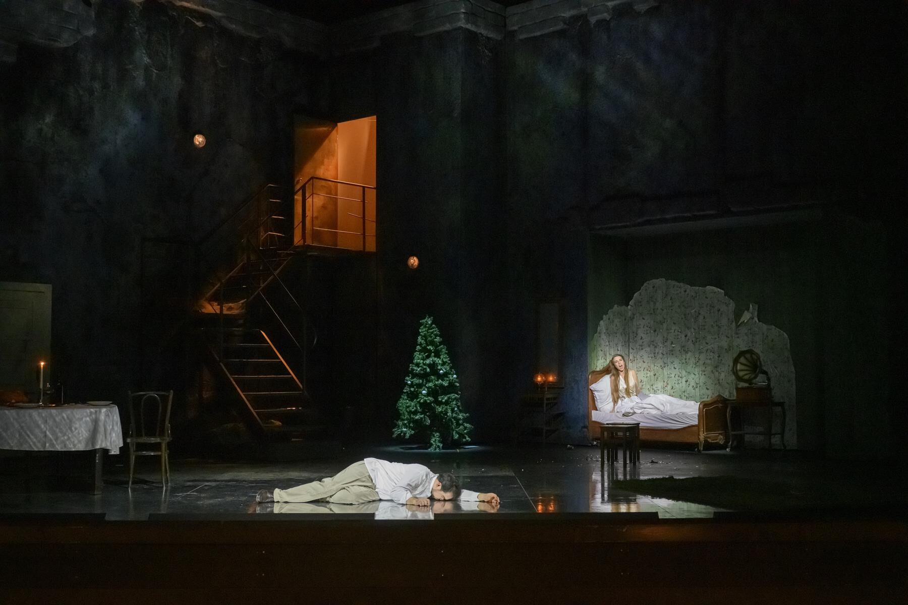 In Milen Bozhkov hat das Ensemble einen starken neuen Tenor. Mit heroischem Strahlen wirbt er um die Nixe – ein Prinz, der sich seiner Wirkung bewusst ist. Ganz wunderbar harmoniert er mit Witte. Beide setzen dem Abend die hellsten Glanzlichter auf – harmonisch bis in den Bühnentod, wenn Rusalka dem Prinzen das Messer in den Leib sticht.