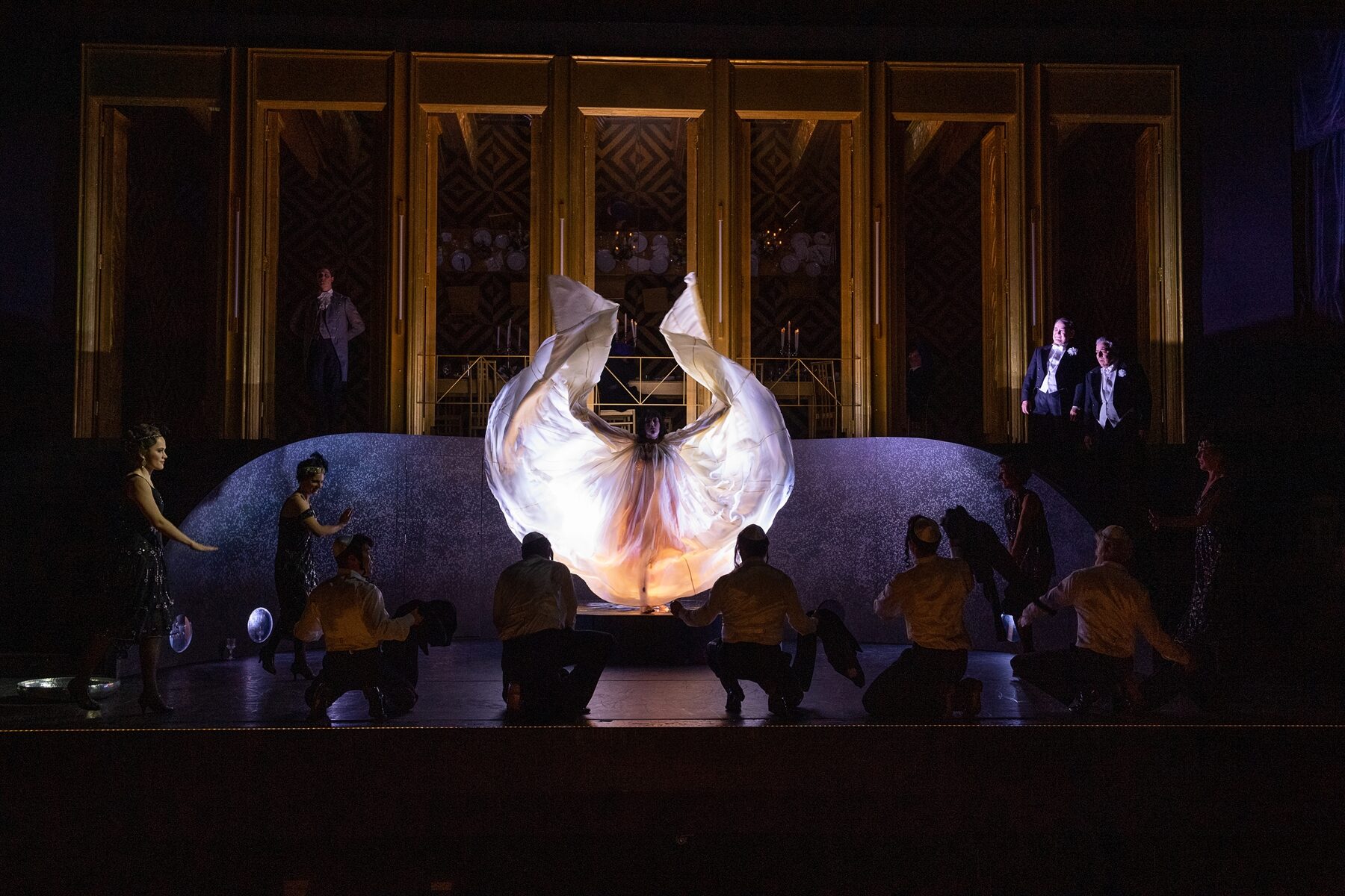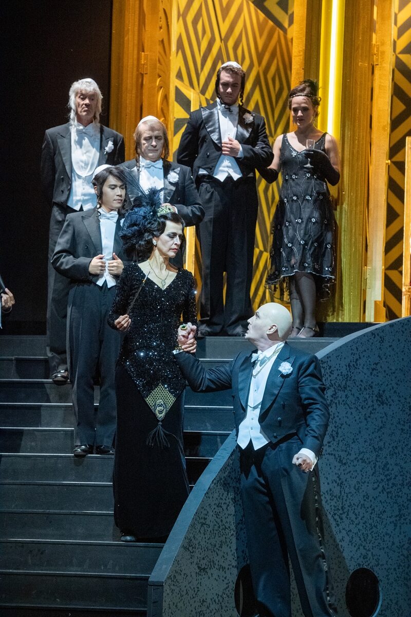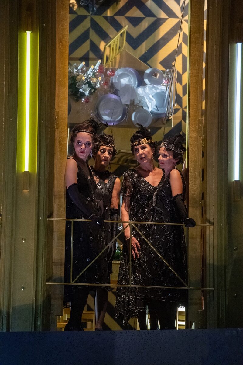 Anthony Pilavachi (Dramaturgie: Ulrike Aistleitner) verfrachtet den biblischen Stoff in eine Zeit und Atmosphäre, die fast schon paradigmatisch für “Dekadenz” steht: 20er-Jahre, Art-déco-Anklänge (Bühne und Kostüme Markus Meyer).