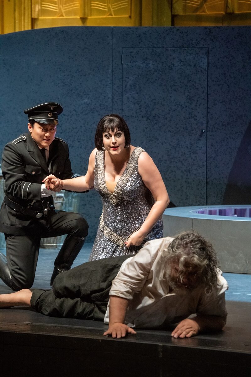 Roswitha Christina Müller war die bis in die höchsten Sopranregionen giftende Herodias. Mit edlem Tenorglanz stattete Woongyi Lee den unglücklich liebenden Narraboth aus. Die kleinen Rollen waren allesamt zuverlässig besetzt – vor allem die der fünf Juden, die ihre schwierigen Ensembles überlegen meisterten.