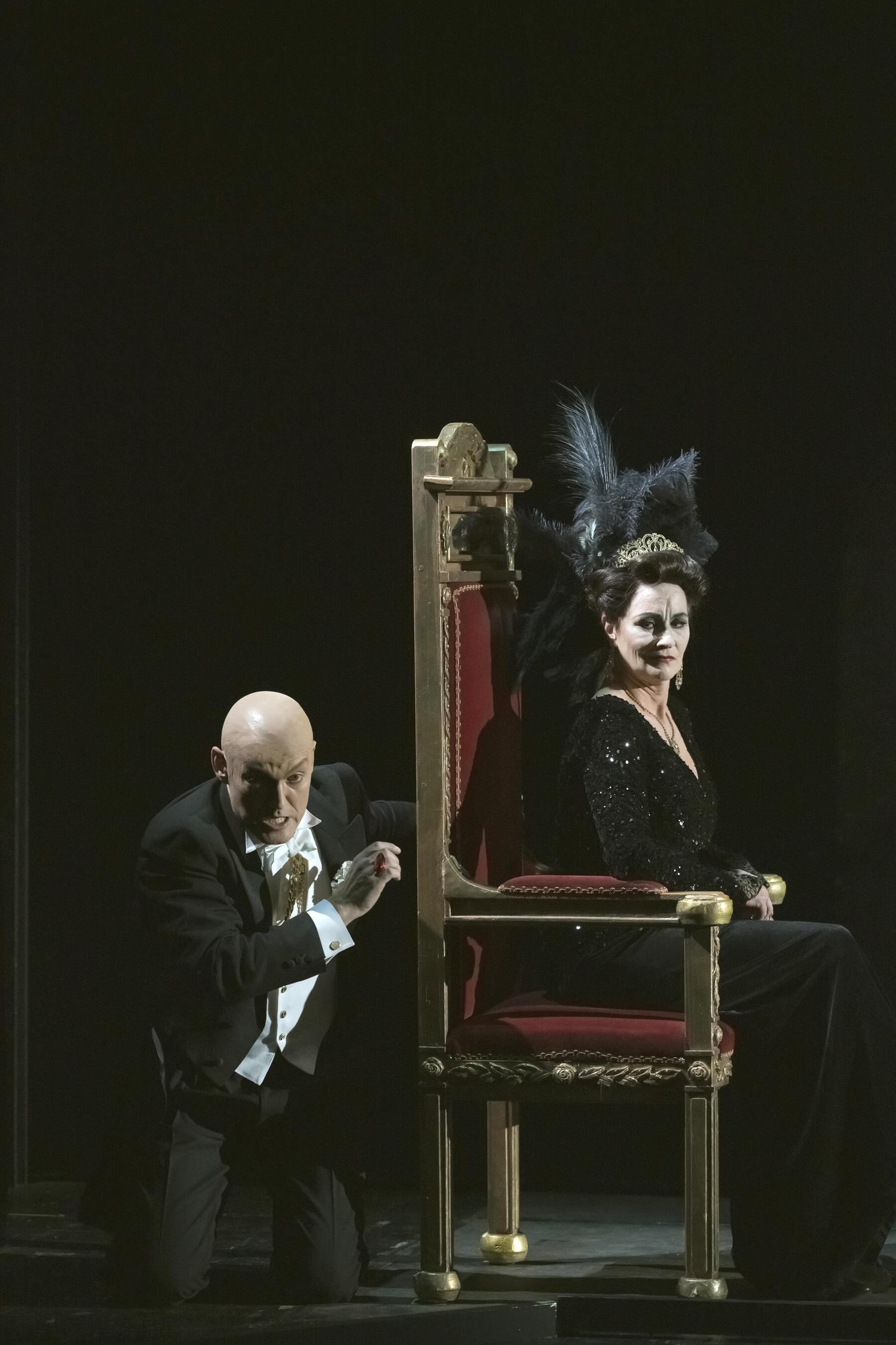 Mihkel Kütson am Pult hatte mit seinen groß besetzten Niederrheinischen Sinfonikern die Klangpracht und die Besonderheiten der Strauss‘schen Musik, die die Schwelle von der Spätromantik zum Impressionismus markiert, sorgfältig herausgearbeitet – Bühne und Orchester waren sich stets einig. Nur hätte der GMD zuweilen die Klangmassen etwas zurücknehmen müssen, da etwa die volumenreiche Stimme Schwärskys phasenweise nicht zu hören war. Insgesamt erlebte das spürbar gebannte Publikum einen umjubelten Premierenabend, der auch einer großen Bühne zur Ehre gereicht hätte.