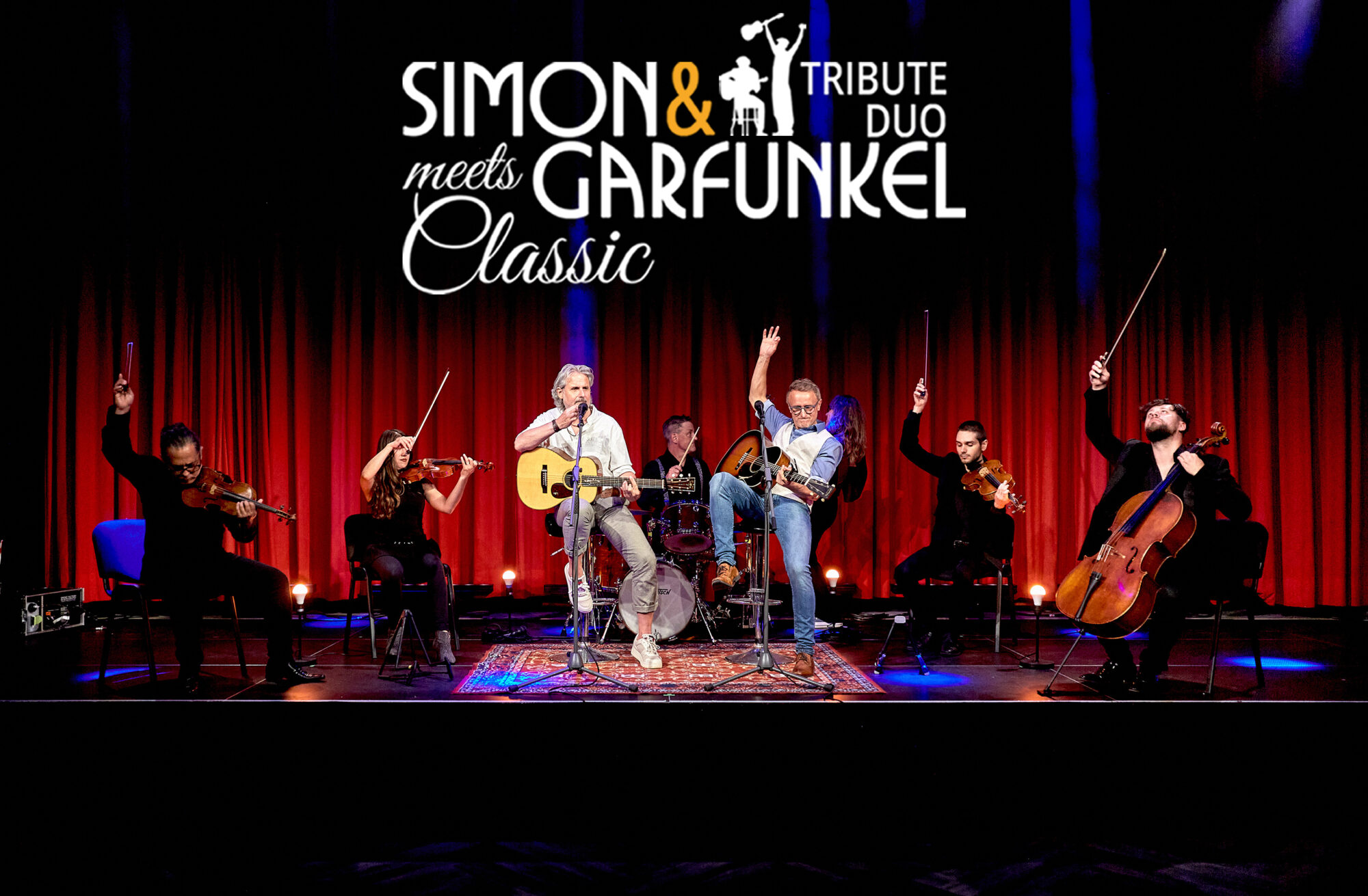 Und so beweisen Thomas Wacker (Paul Simon) und Thorsten Gary (Art Garfunkel) mit ihrem aktuellen Projekt “Simon & Garfunkel Tribute meets Classic” eindrücklich: Die Klassiker des wohl erfolgreichsten Folkrock-Duos der Welt harmonieren perfekt mit dem Klag eines Streichensembles, Schlagzeug und Bass. Vor allem das Zusammenspiel der beiden Stimmen und zweier Gitarren mit den klassischen Instrumenten lässt die Songs von Simon & Garfunkel zu einem außergewöhnlichen Musikerlebnis werden. Zusätzlich sorgen Bass und Schlagzeug für den richtigen “Drive” bei den schnelleren Stücken.