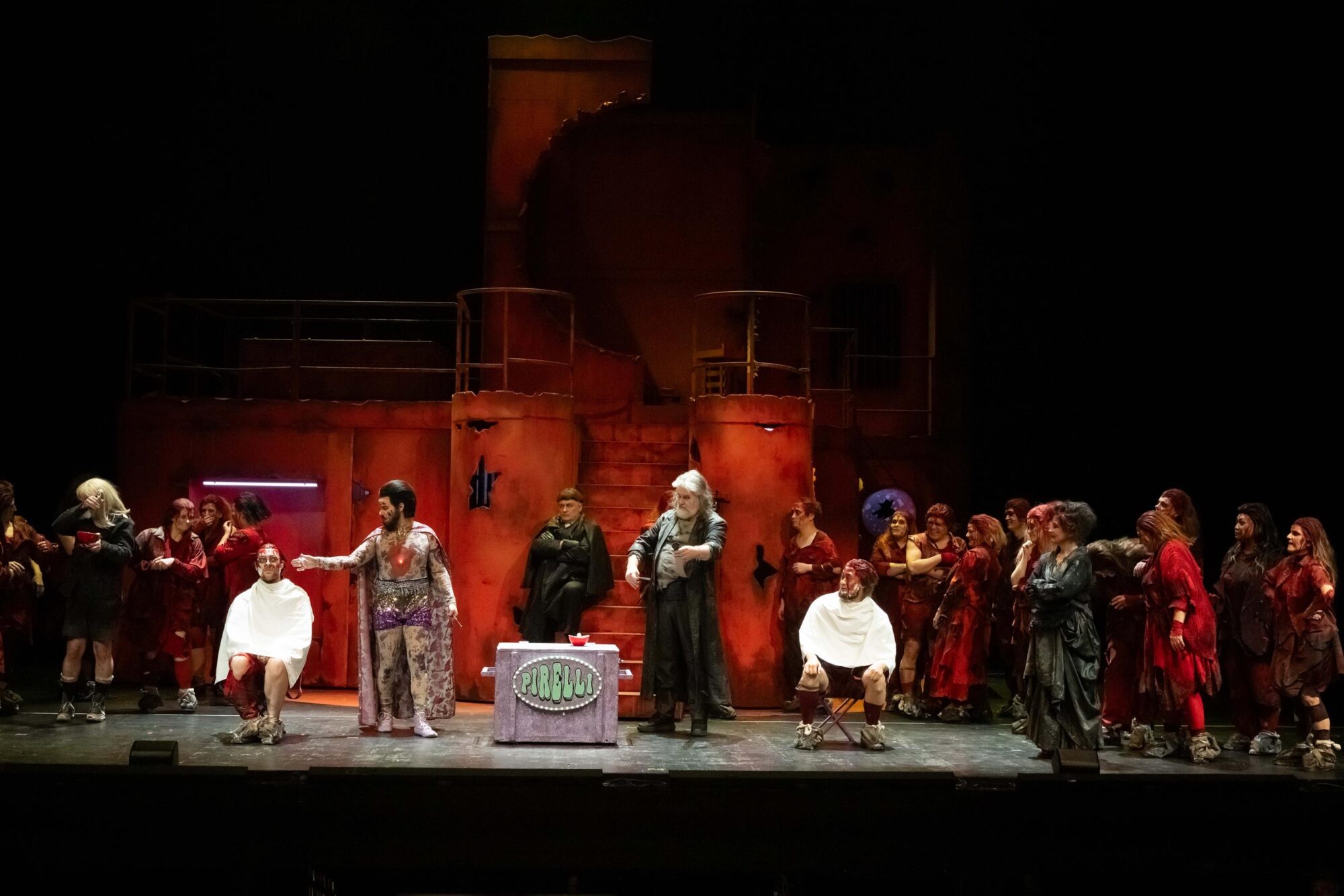 Am Theater Mönchengladbach kam eine schwungvolle Interpretation der gruseligen Geschichte des Barbiers Sweeney Todd zur Aufführung.