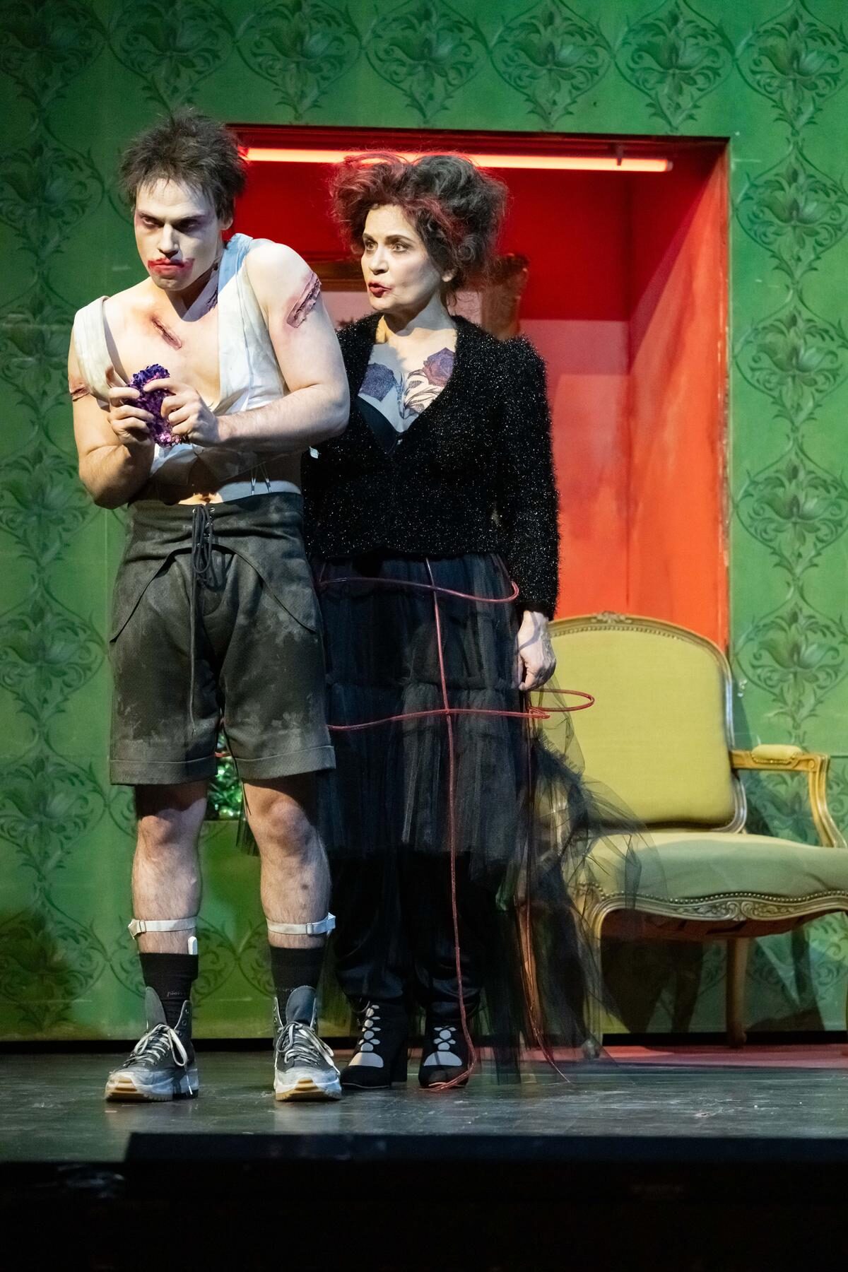 Die Protagonisten stechen jedoch nicht nur durch ihre Kostümierung hervor: Johannes Schwärsky gestaltet einen Sweeney Todd, der zunächst wenig Charisma ausstrahlt, seiner Figur aber große emotionale Tiefe verleiht – vor allem in seinen Soli. Besonders berührend ist die Szene, in der er einen Familienvater bedient, sich selbst in ihm erkennt und ihn schließlich verschont.