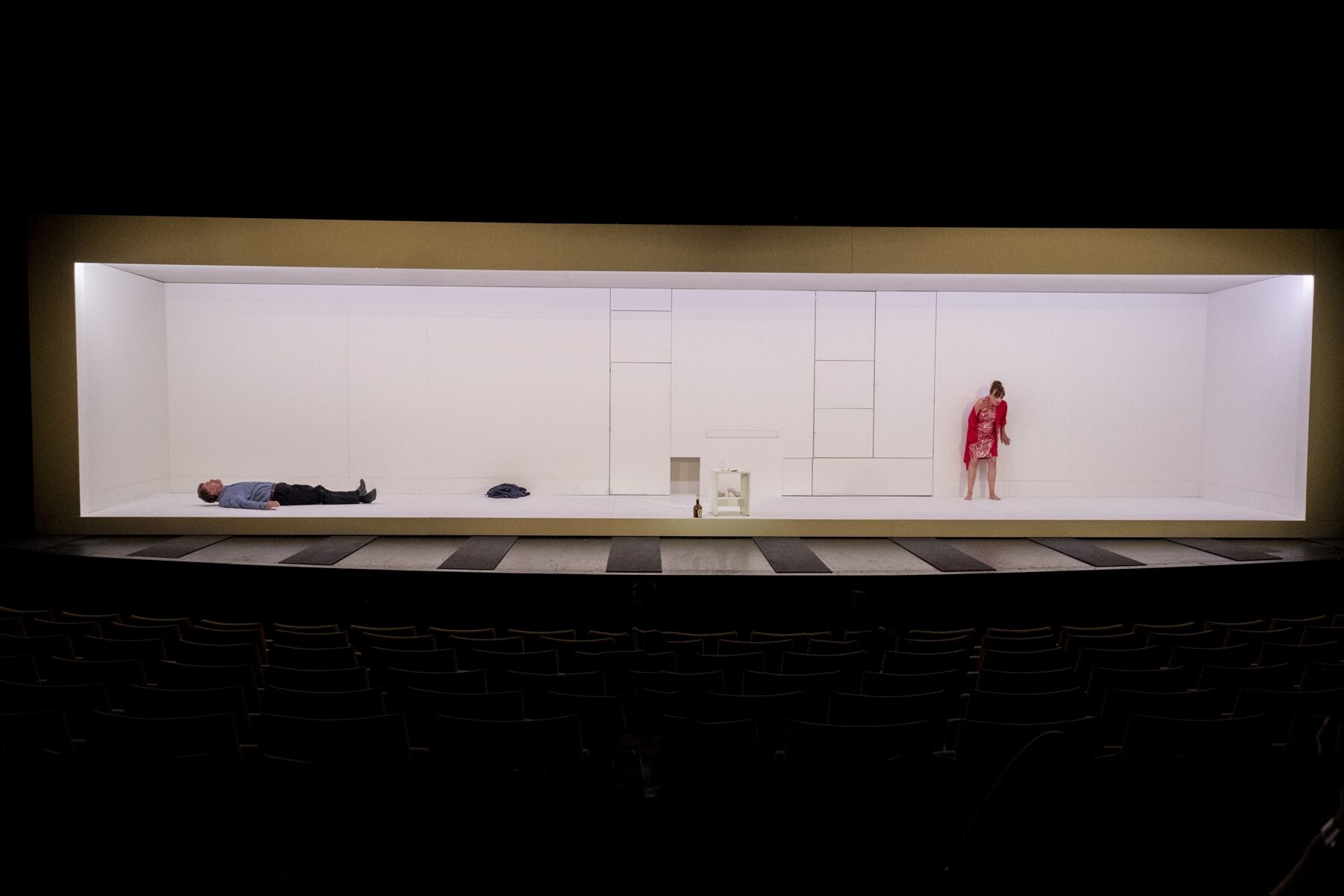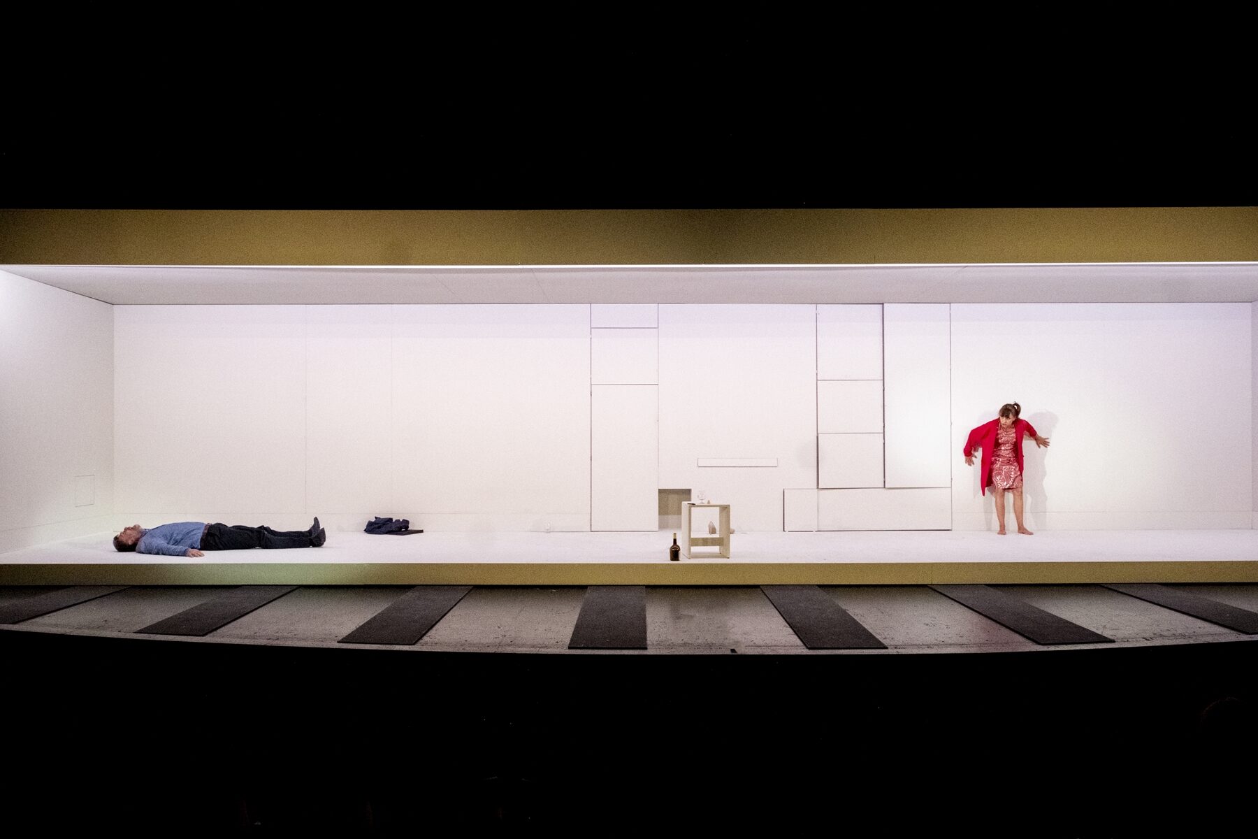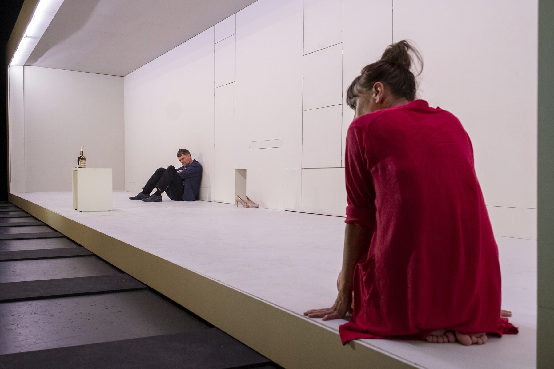 Das Paar hat sich eingerichtet mit weißen Einbaumöbeln, in denen alles verschwindet, was zum Leben gerade nicht gebraucht wird. Marianne (Esther Keil) und Johan (Bruno Winzen) sind Leute von nebenan, die im gehobenen Allerwelts-Chic gekleidet sind (Kostüme: Petra Wilke). Beide sind geübt in der Kunst des Untern-Teppich-Kehrens. Beim gemütlichen Kaminabend lässt er eine Tirade seiner Vorzüge los, während ihr zur eigenen Beschreibung nur einfällt, dass sie mit ihm verheiratet ist und sich nach nichts sehnt außer nach dem Sommer. Kurz darauf sagt sie zum ersten Mal, dass sie gar nicht genau weiß, wer sie ist. Gabriele Trinczeks Bühnenbild ist für das komplexe Gefühlschaos maßgeschneidert: Alles, was stört, lässt sich wegsperren und wird unsichtbar. Es ist ein minimalistisch designter, geräumiger weißer Kasten auf der großen Bühne – ohne Tür und ohne Fluchtöffnung für die Akteure. Regisseur Matthias Gehrt lässt den Schauspielern Raum, den sie in jedem Moment füllen. Unpathetisch und doch leidenschaftlich, wütend, verzweifelnd und kämpferisch demonstrieren sie die Zerbrechlichkeit ihrer Welt. Sie können nicht mehr mit und noch nicht ohne einander. Johans Liebe zu einer anderen Frau ist der Wendepunkt. Esther Keil zeigt alle Windungen der verratenen Frau, die sich erniedrigt, um am Mann festzuhalten und dabei gleichzeitig einen letzten Funken Würde wahren will. Das ist so untheatralisch traurig, dass man auf ihrer Seite sein muss. Doch auch Winzen zieht alle Gefühlsregister, wütet, um sich aus zu lang ausgehaltener Starre zu befreien, biegt und windet sich zwischen dem Reiz des Neuen und der Angst, das Vertraute zu verlieren. Die andere Frau bringt kein Glück. Nach einem Jahr ist Johan privat und beruflich gestrandet, aber Marianne hat inzwischen den Geschmack von Freiheit erfahren. Die Gewichtung in der Beziehung kippt. Fast unmerklich hat derweil die angestaute Aggression den letzten Rest gegenseitigen Respekts gefressen. Jetzt wird es auch physisch brutal. Erst nach Jahren der Trennung reden beide wieder miteinander und erlangen ein fragiles Gleichgewicht. Vielleicht eine vorsichtige Annäherung. Der Abend ist Schauspielertheater von höchster Qualität und macht deutlich, warum Bergmans Verfilmung ein Straßenfeger war. Auch nach 47 Jahren zieht der Stoff noch.