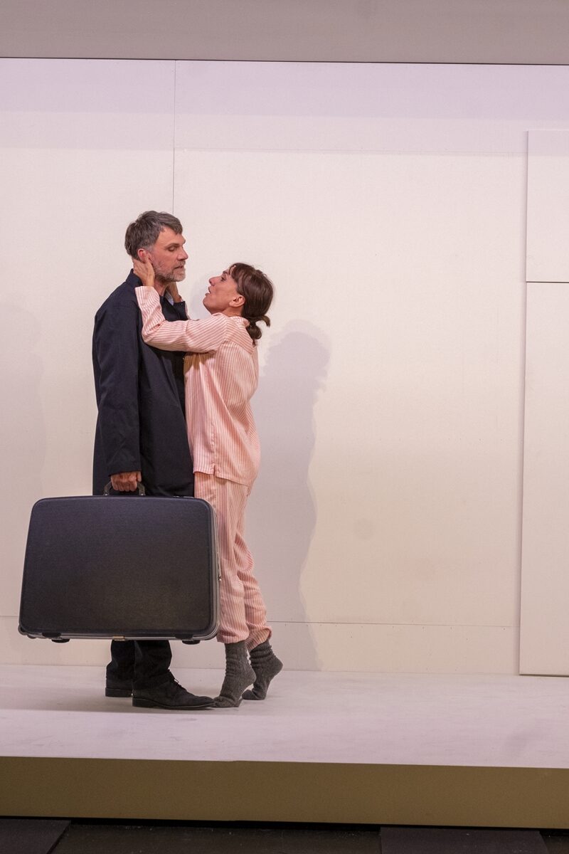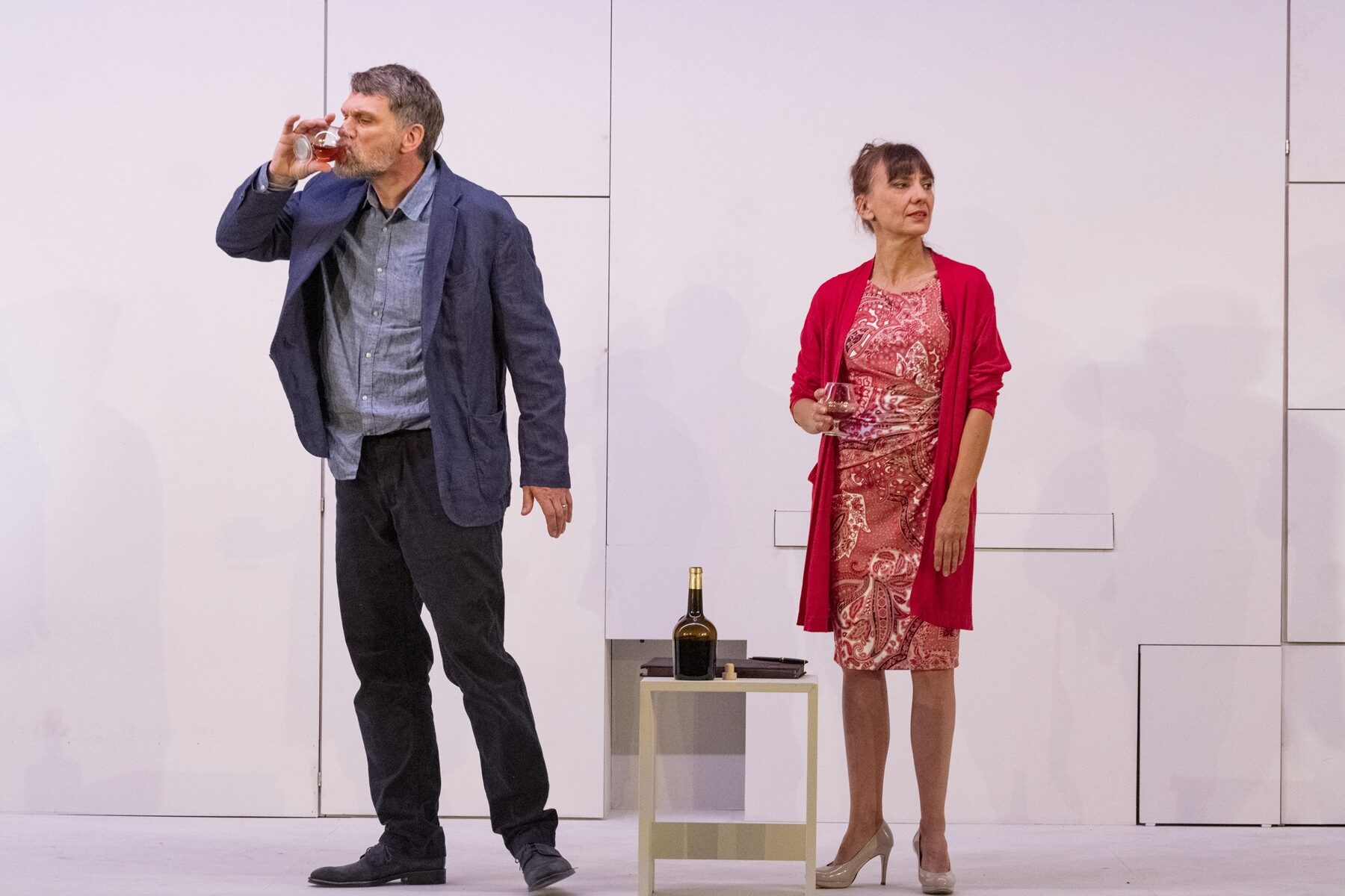 […] Schauspieldirektor Matthias Gehrt hat das Stück als packendes Kammerstück mit zwei wunderbaren Darstellern inszeniert. Esther Keil und Bruno Winzen brillieren als Ehepaar Marianne und Johan.