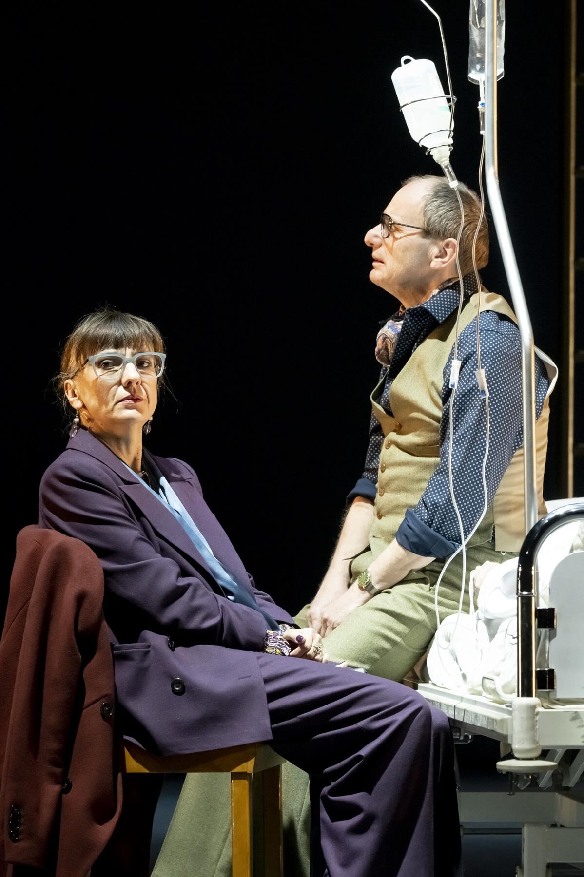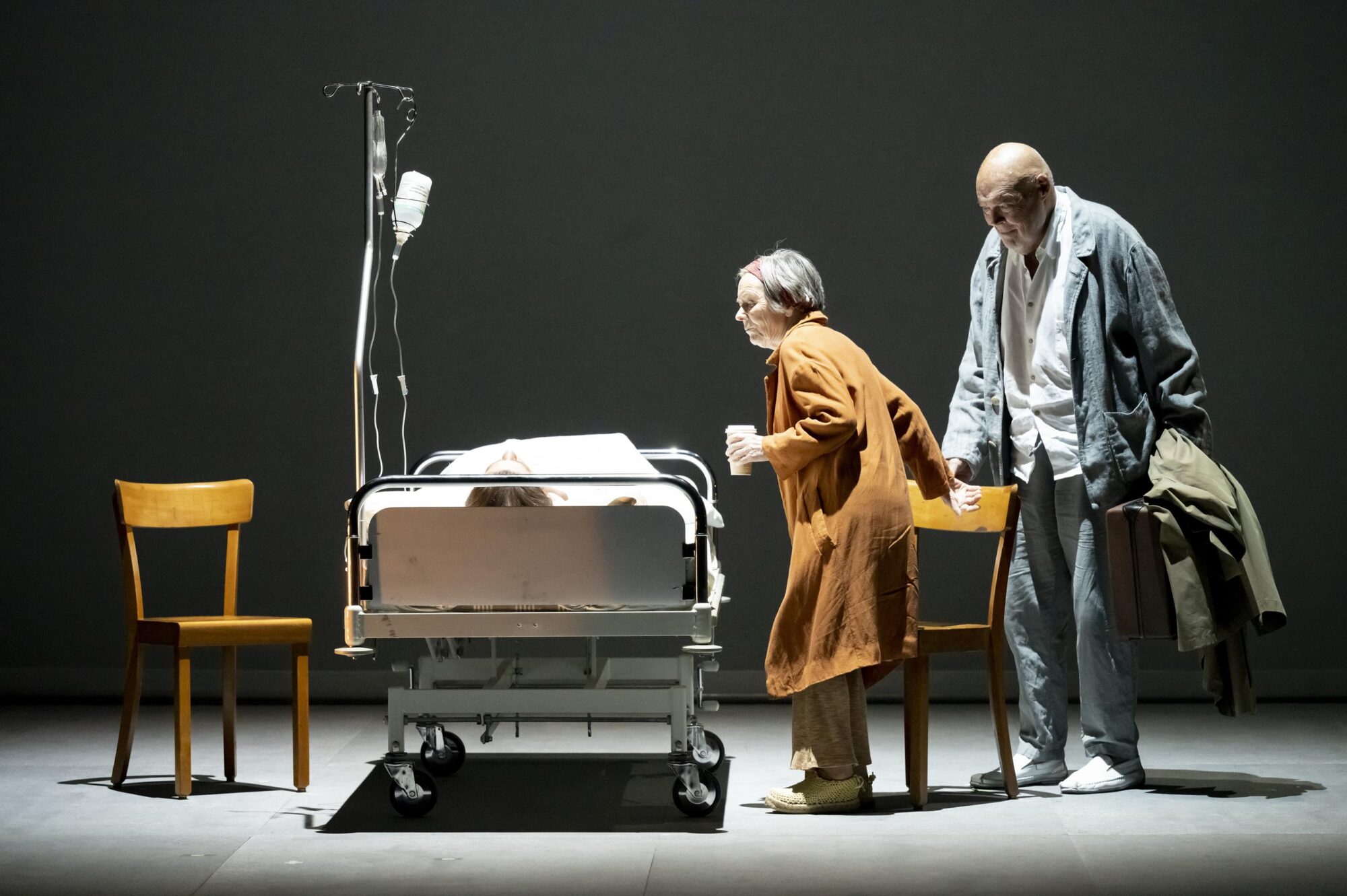 46 Chromosomen – das ist die Antwort des Biogenetikers Eitan auf die wesentlichen Fragen: Was ist die Seele? Was ist das Leben? […] Dass dies nur Theorie ist, wird der junge Mann bald spüren. In der Uni-Bibliothek verliebt er sich in Wahida. Sie ist jung, kess, hat blaue Haare und trägt Netzstrümpfe – und sie ist Araberin. Für den jungen Juden ist das zunächst kein Problem. […]Als Eitan seine Familie – aus Deutschland – zum Pessachfest einlädt, um ihnen seine Freundin vorzustellen, zeigt sich eine Katastrophe, die sich über Jahrzehnte angebahnt hat[…] In seinem Stück „Vögel“ zeigt Wajdi Mouawad den Zerfall einer Familie, die ein schreckliches Geheimnis schon längst zerfressen hat. Es geht um den Nahost-Konflikt, um Juden und Muslime, um Israelis und Palästinenser — es geht um Krieg. Matthias Gehrt hat die erschütternde Geschichte nicht auf aktuelle Entwicklungen gedreht, sondern das Psychodrama einer Familie inszeniert: die Tragödie einer verbotenen Liebe und die Tragödie, wenn Menschlichkeit von Fanatismus und Hass überwuchert wird. […] Für seine letzte Regie als Schauspieldirektor am Gemeinschaftstheater wurde Gehrt mit standing ovations gefeiert – der lange Beifall galt auch dem gesamten Team und einem grandios differenziert spielenden Ensemble. […]Gabriele Trinczek hat die karg möblierte Bühne mit halbtransparenten Projektionsflächen zu einem Raum gemacht, der Schreckensbilder von Anschlägen widergibt, die Umgebung spiegelt und zeigt, wie viel hier verschleiert werden soll. Die geheimnisvolle Bühnenmusik von York Ostermayer betont die Spannungen, lässt Sirenenalarm anklingen. Man vermutet Schreckliches – wie feinnervig die Schauspielerinnen und Schauspieler Steinchen lostreten, die sich zu einer emotionalen Lawine auswachsen, ist grandios. Die Kostüme von Petra Wilke zeigen dezent, in welch unterschiedlichen Welten die Generationen leben […] assimilierte Lebenswelten. […] Eitan (David Kösters) ringt verzweifelt um Verständnis und Toleranz. […] Seine Mutter (Esther Keil) hat eine DDR-Vergangenheit und ist eine aalglatte Verfechterin ihrer Überzeugung […] Sein Vater David (Christoph Hohmann) glaubt an seine Grundsätze, […] er scheint unerschütterlich in seinen Glaubensfesten. […] Die Wahrheit tickt wie eine Bombe im Herzen der Großmutter Leah (Monika Lennartz). Das Leben hat sie bitter gemacht. […] Die Szenen mit Henschke haben die Wucht einer antiken Tragödie. Katharina Kurschat ist eine leidenschaftlich hadernde Wahida […].